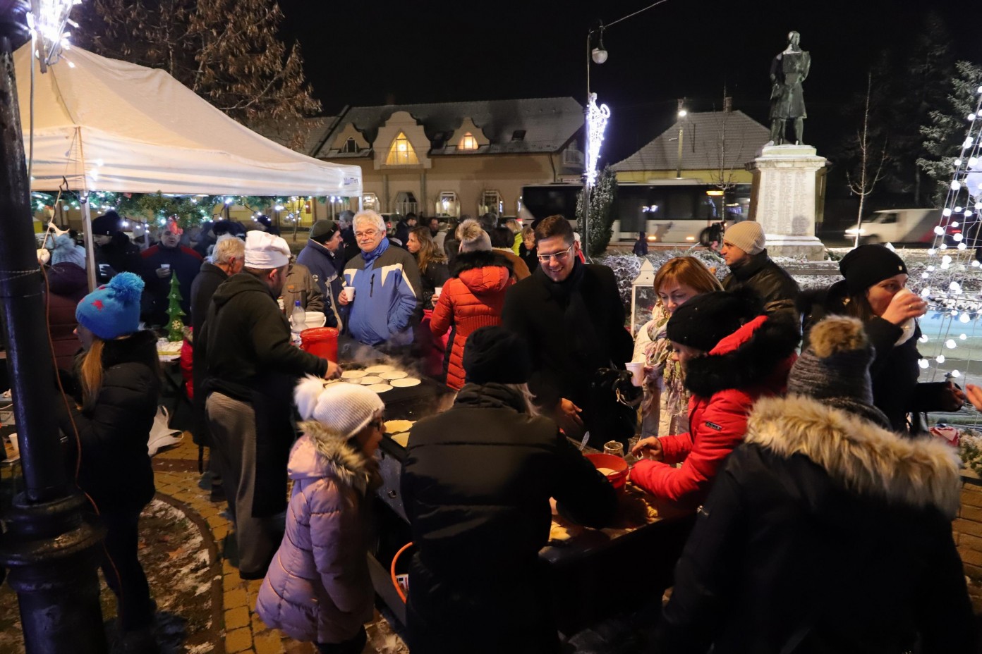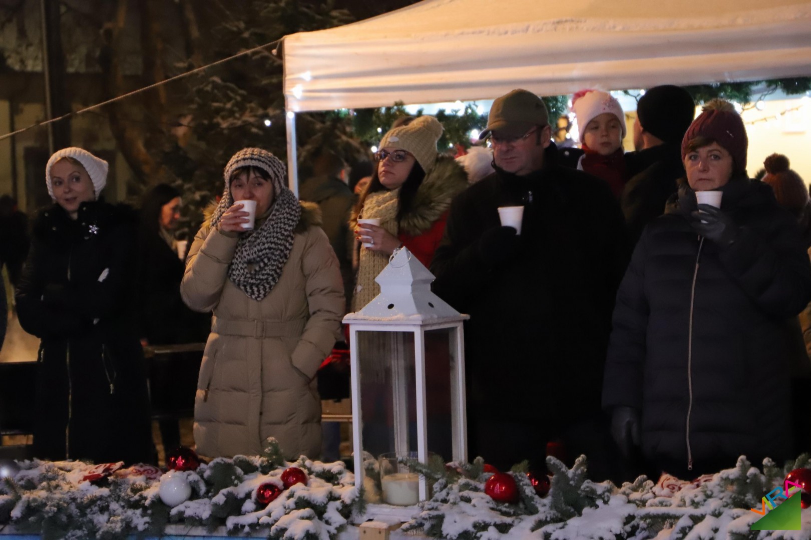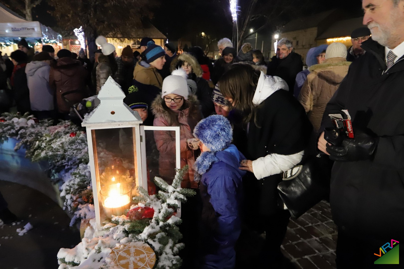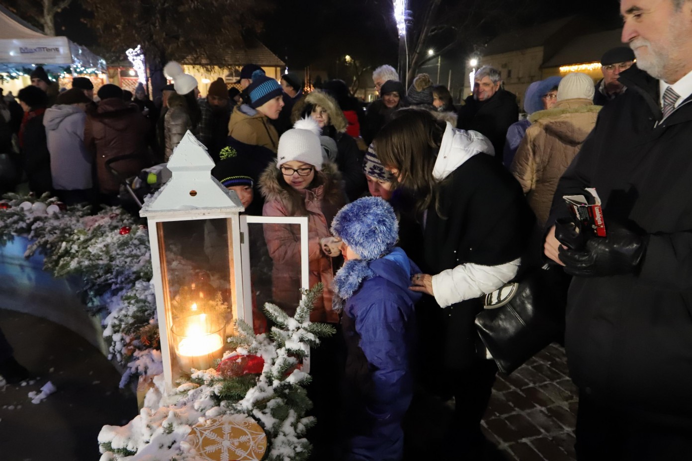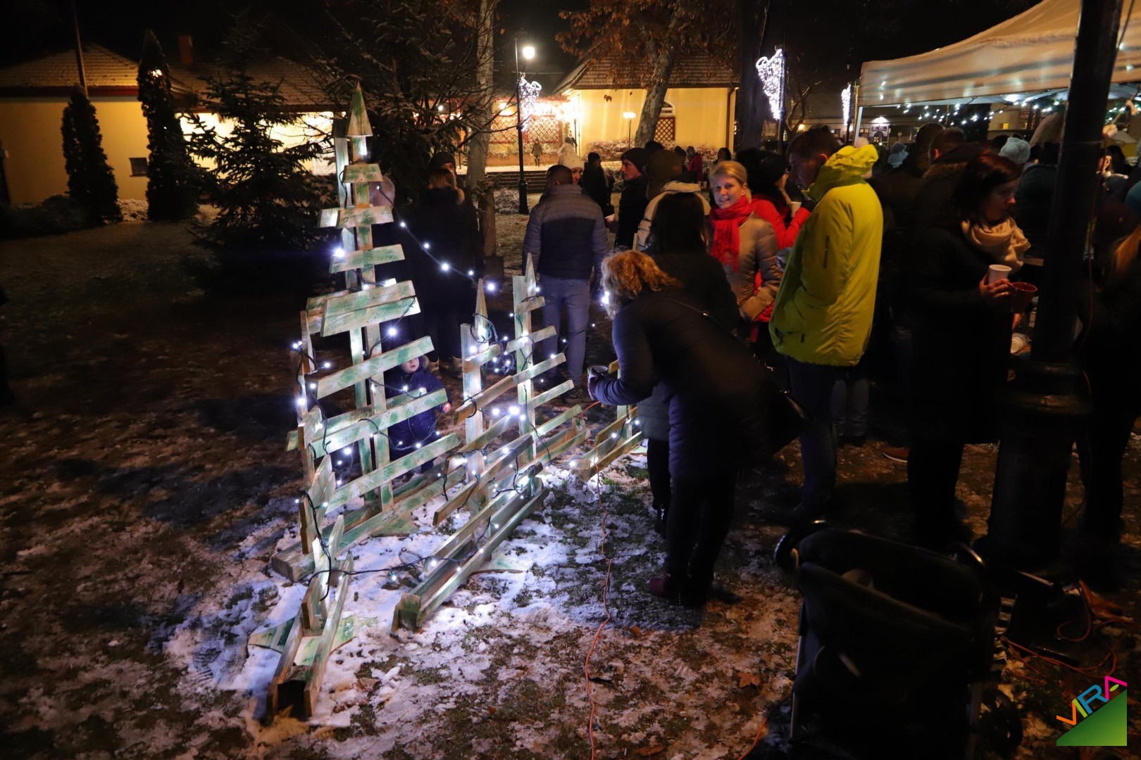 A színpadról lejövet az ovisok meggyújtották az óvodavezetővel együtt az első gyertyát az óriási – szökőkutat formázó – ádventi koszorún, mely beragyogta az estét, és hangulatot adott a felállított sátrakban a szeretetvendégséghez. A gyermekek kedvencének, Tóth István – CSITTA – palacsintáinak nehéz volt ellenállni; az igazi fahéjas, fűszeres illat odacsábította az apróságokat.