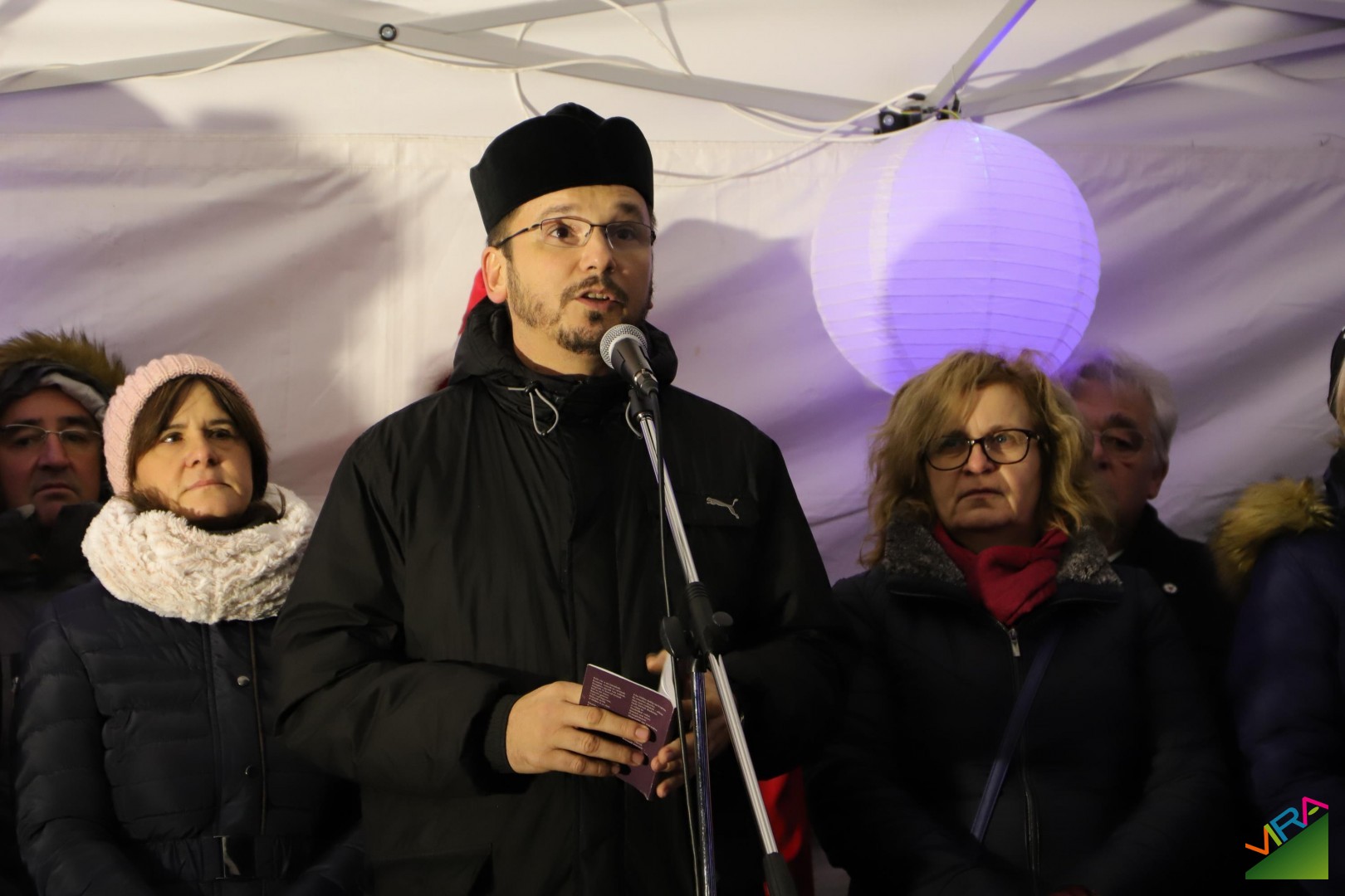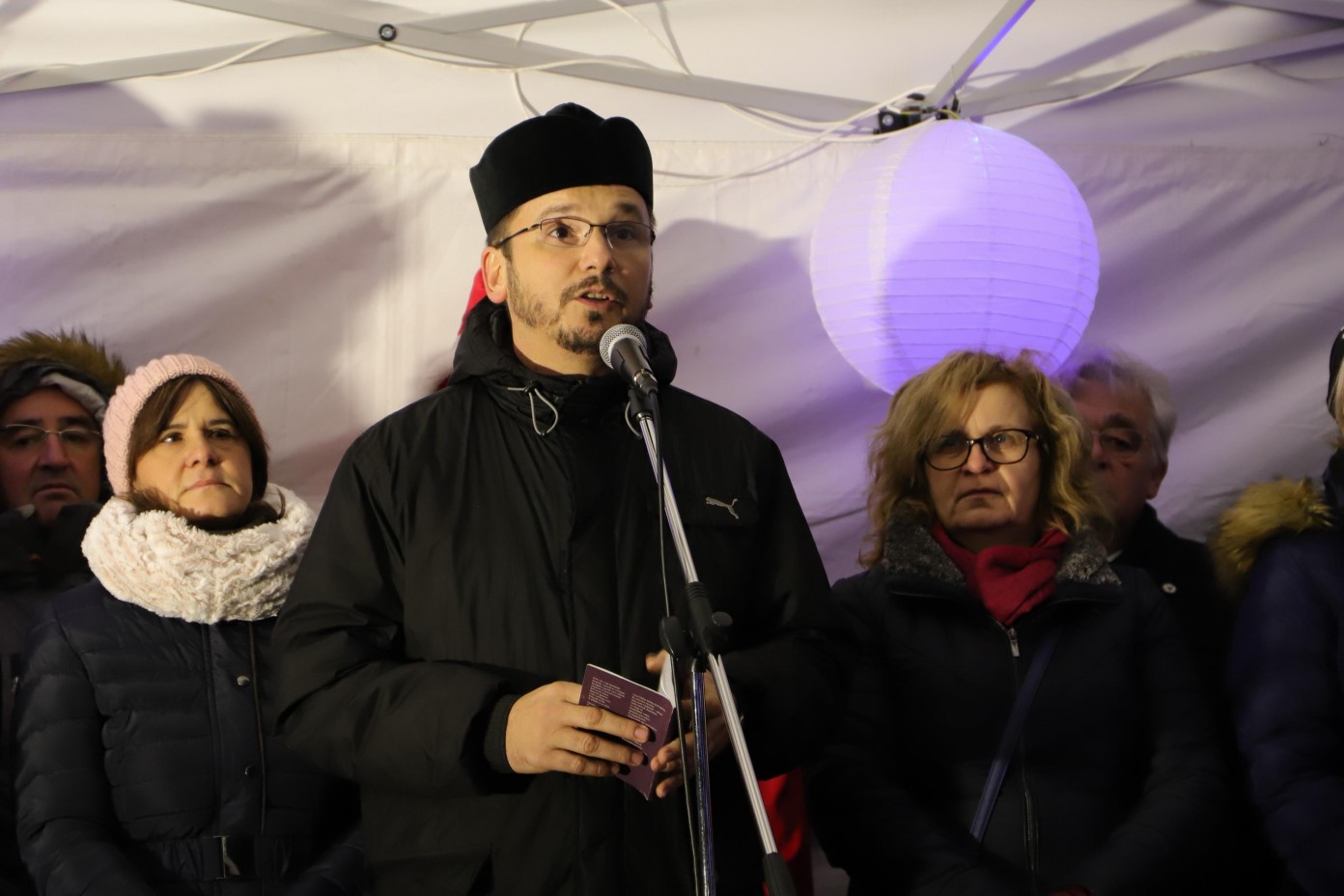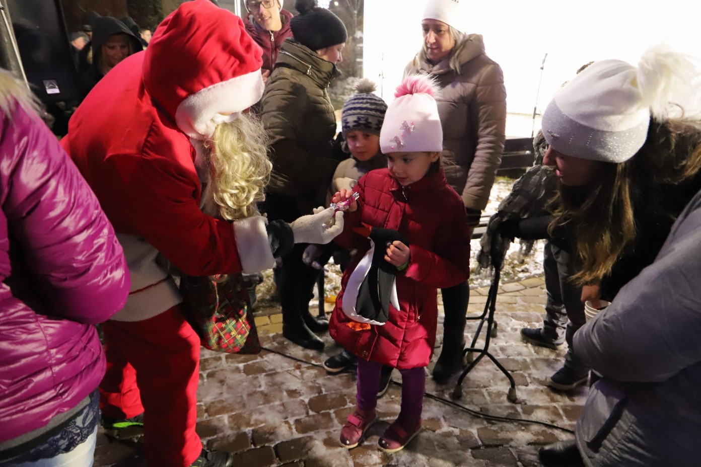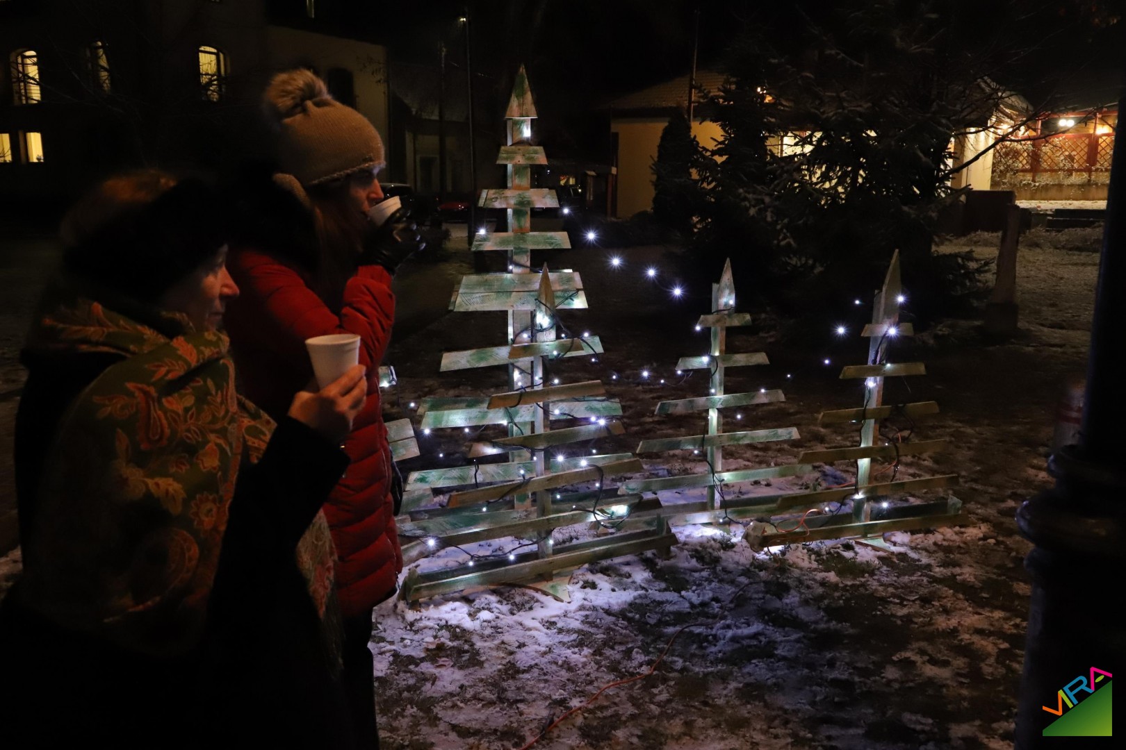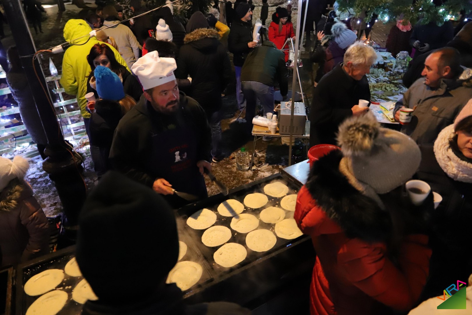 A színpadról lejövet az ovisok meggyújtották az óvodavezetővel együtt az első gyertyát az óriási – szökőkutat formázó – ádventi koszorún, mely beragyogta az estét, és hangulatot adott a felállított sátrakban a szeretetvendégséghez. A gyermekek kedvencének, Tóth István – CSITTA – palacsintáinak nehéz volt ellenállni; az igazi fahéjas, fűszeres illat odacsábította az apróságokat.