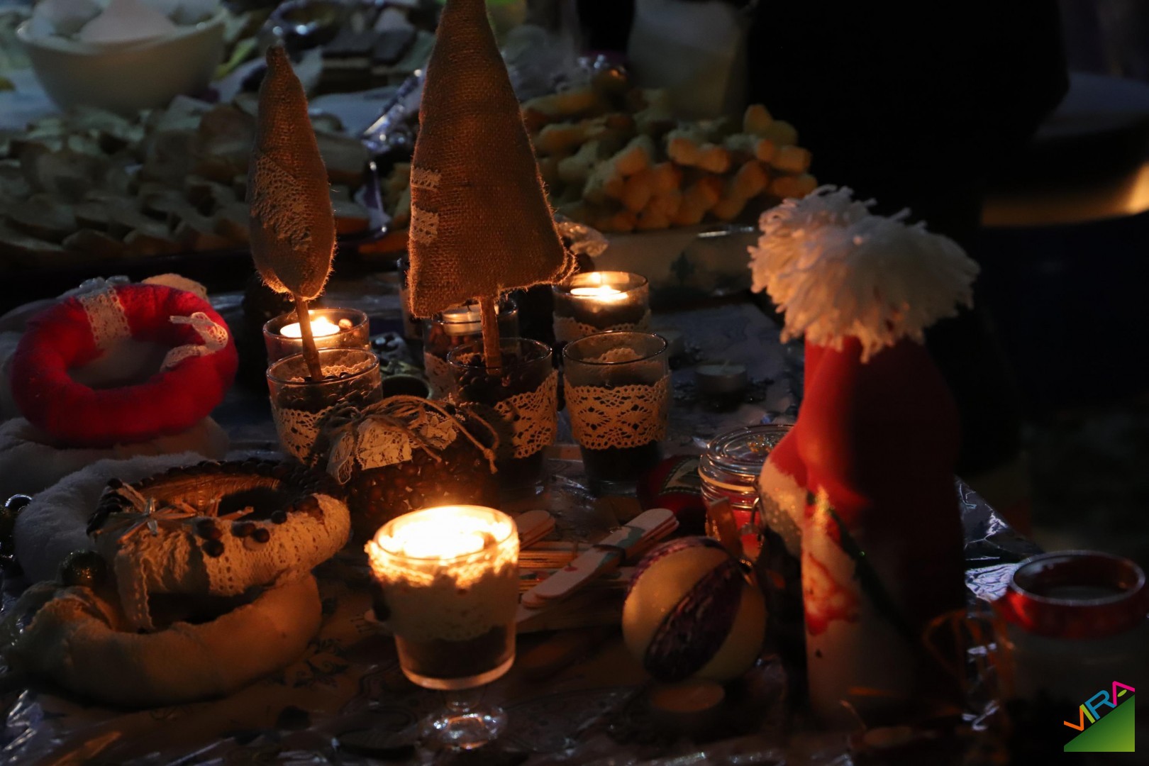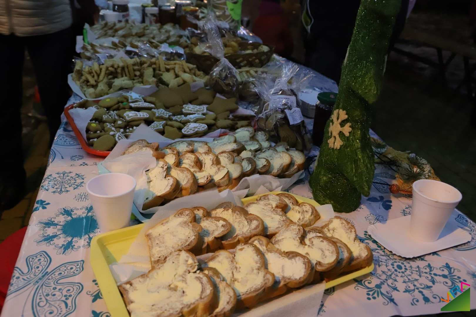A karácsonyi díszbe öltözött sátorban sok finom falat mellett forró tea, kakaó várta a gyermekeket, a felnőtteket pedig forralt borral kínálták a vacogó hidegben.