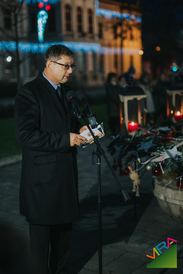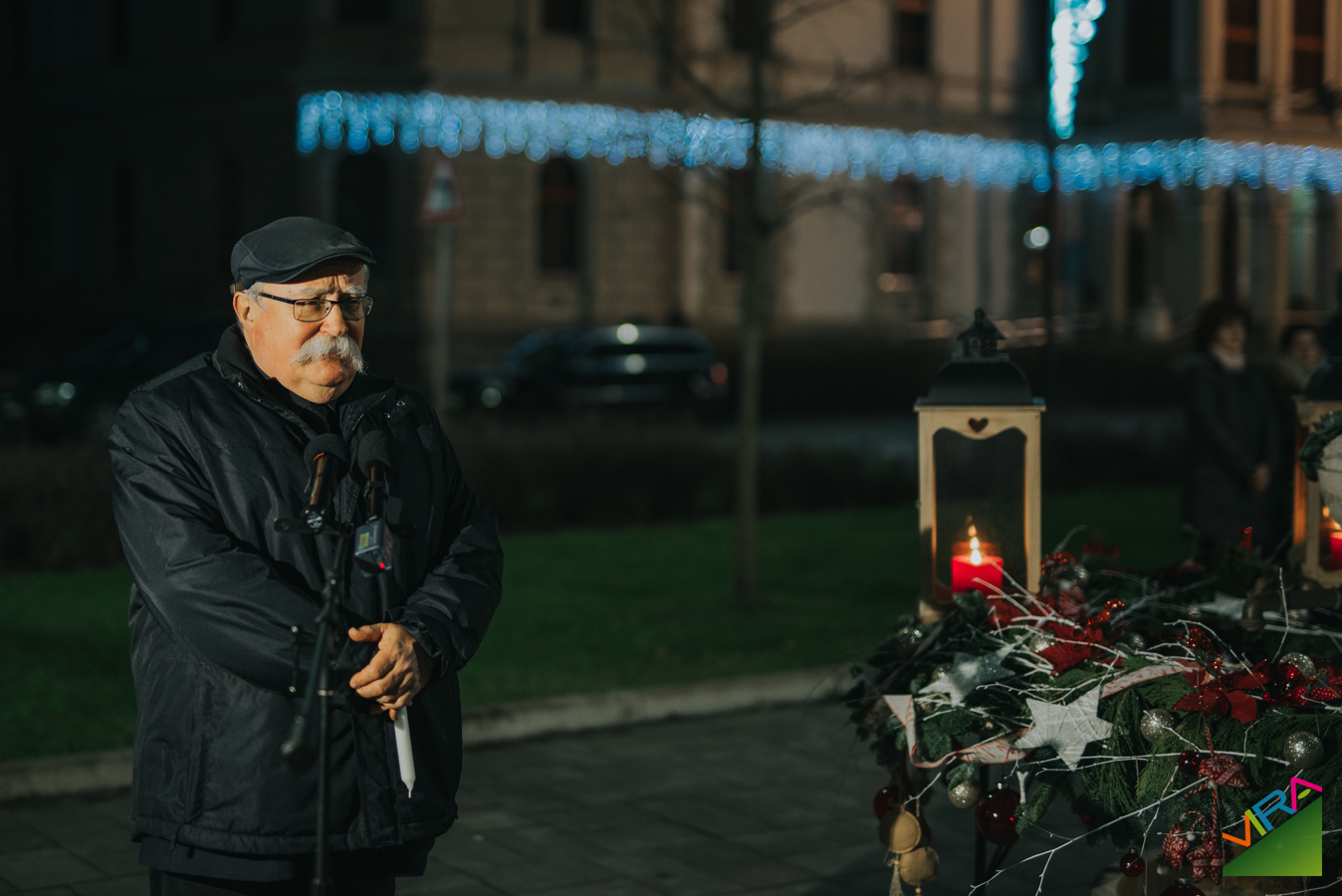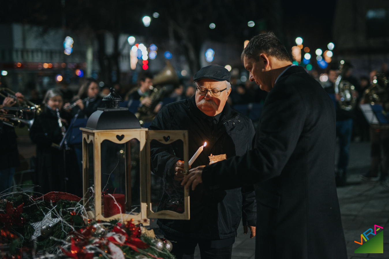 A téren a Kiskőrösi Evangélikus Fúvószenekar várta a látogatókat. Domonyi László polgármester beszédével nyitotta meg a gyertyagyújtási alkalmat, melyben hangsúlyozta a béke, a szeretet és a hit jelentőségét. Végül Supka Éva – Isten útján járva c. versével zárta gondolatait.