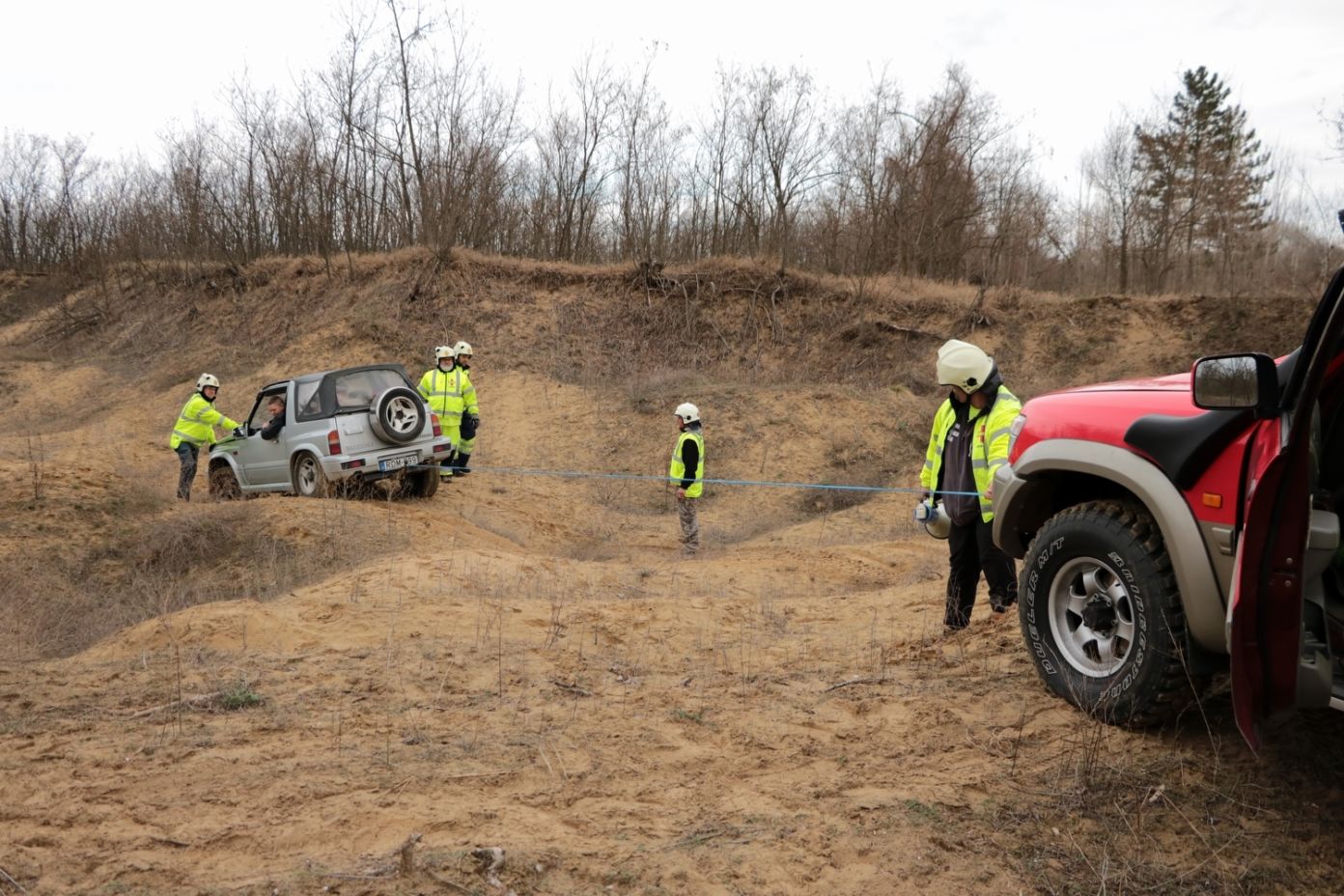 Végigkísértelek benneteket az útvonalon és a GPS koordináták alapján gyorsan odataláltunk a homokbányához, ahol egy terepjáró belesüllyedt a homokba két felnőtt és két gyermek került bajba a szimulációban. Szó mi szó… Egy terepjáró?