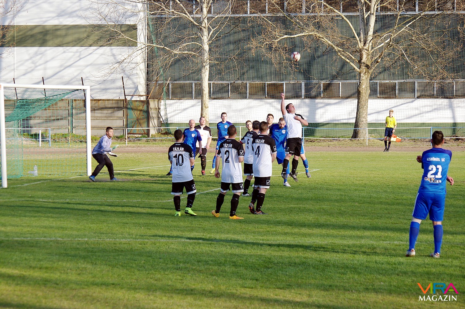 A március 30-án lejátszott találkozó első félidejében lelkes játékával jól tartotta magát a tázlári csapat, de a kiskőrösiek Szentgyörgyi Ákos két góljával már ekkor magabiztosan vezettek. A szünet után nem csak a játékban, hanem a gólok számában is megmutatkozott a két csapat közti tudásbeli különbség. A mérkőzés végére szétesően focizó vendégek ellen szinte tetszés szerint alakította ki a gólhelyzeteket a kiskőrösi gárda. A játék minden elemében jobb kiskőrösiek ilyen arányban is megérdemelten nyertek. A második félidőben a hazai gólokat Szentgyörgyi Ákos-2, Makó Zsolt, Sinkó Dorián, Polyák Gergely, Csermák Dávid (11-es) és Gombár Norbert szerezték.