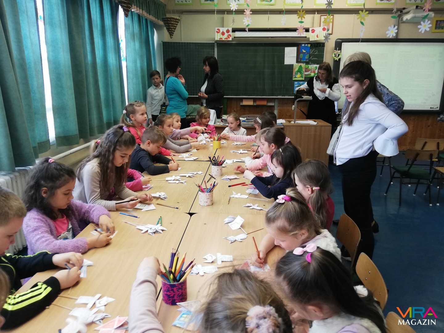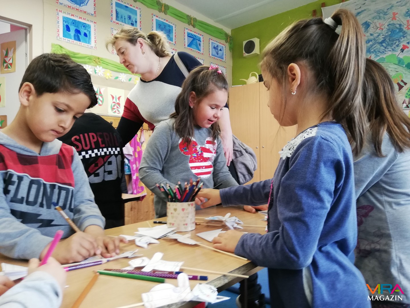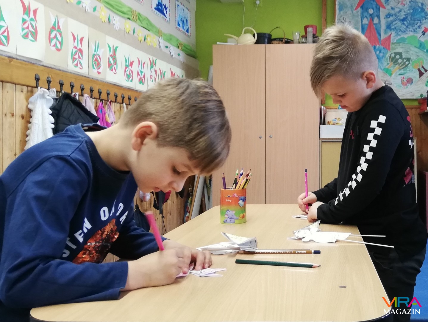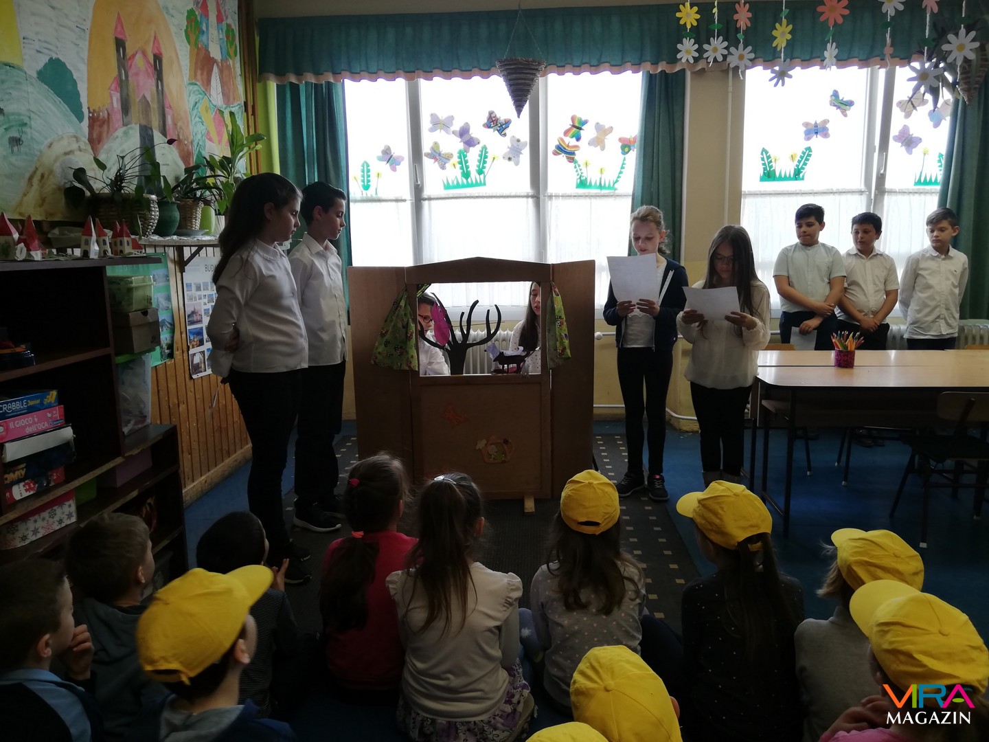 Rohoska Ferencné osztályában báb előadást és mesét nézhettek, majd előre elkészített bábokat színezhettek.