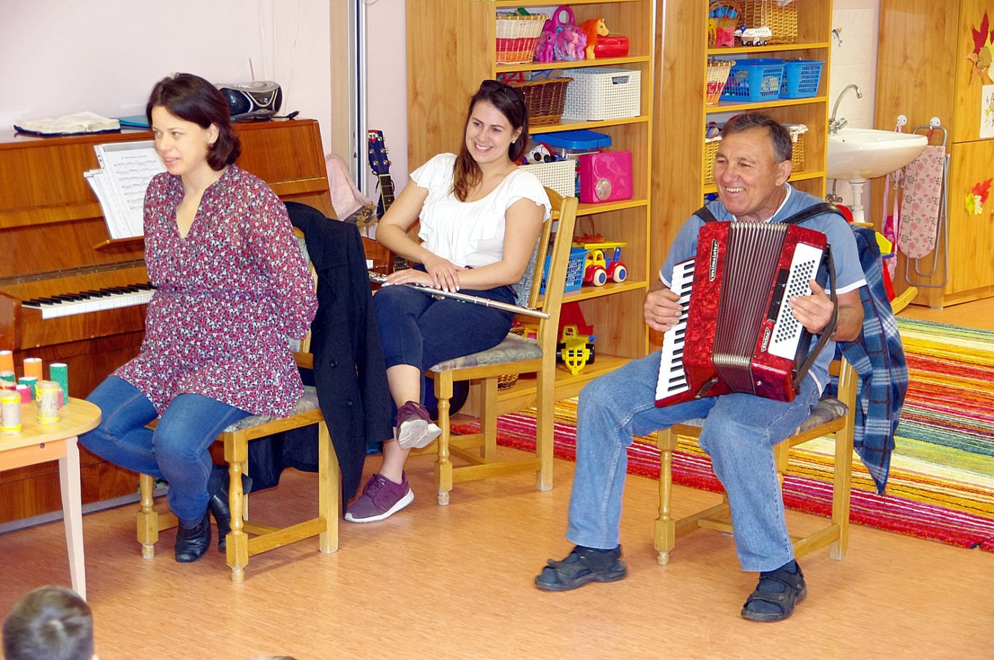 Projektzárónkat óvodánkban tartottuk. Németh Mihály interaktív népi hangszerbemutatóját Matusik papa harmonika játéka követte. Ezután minden csoport előadta – a gyerekek által készített ritmushangszerekkel kísérve – kedvenc dalát, mondókáját. Farkasné Gombár Ildikó és Endreffyné Sikter Panna vezetésével közös éneklés és keresztény áhítat zárta a Cini-cini muzsika projektet.