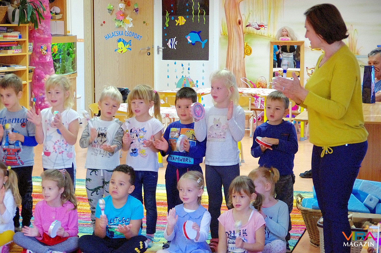 A kiskőrösi KEVI Harangvirág Óvodájában szeptember 30. és október 18. között három hetes zenei projektet szerveztünk. A célunk az óvodások zenei formában történő komplex készségfejlesztése, a gyerekek életkorának megfelelő zenei műveltség megalapozása és fejlesztése, valamint a zenei képességek alakítása, az együttműködés fejlesztése voltak. Az óvodások változatos tevékenységeken keresztül szerezhettek tapasztalatokat a hangok izgalmas világából.