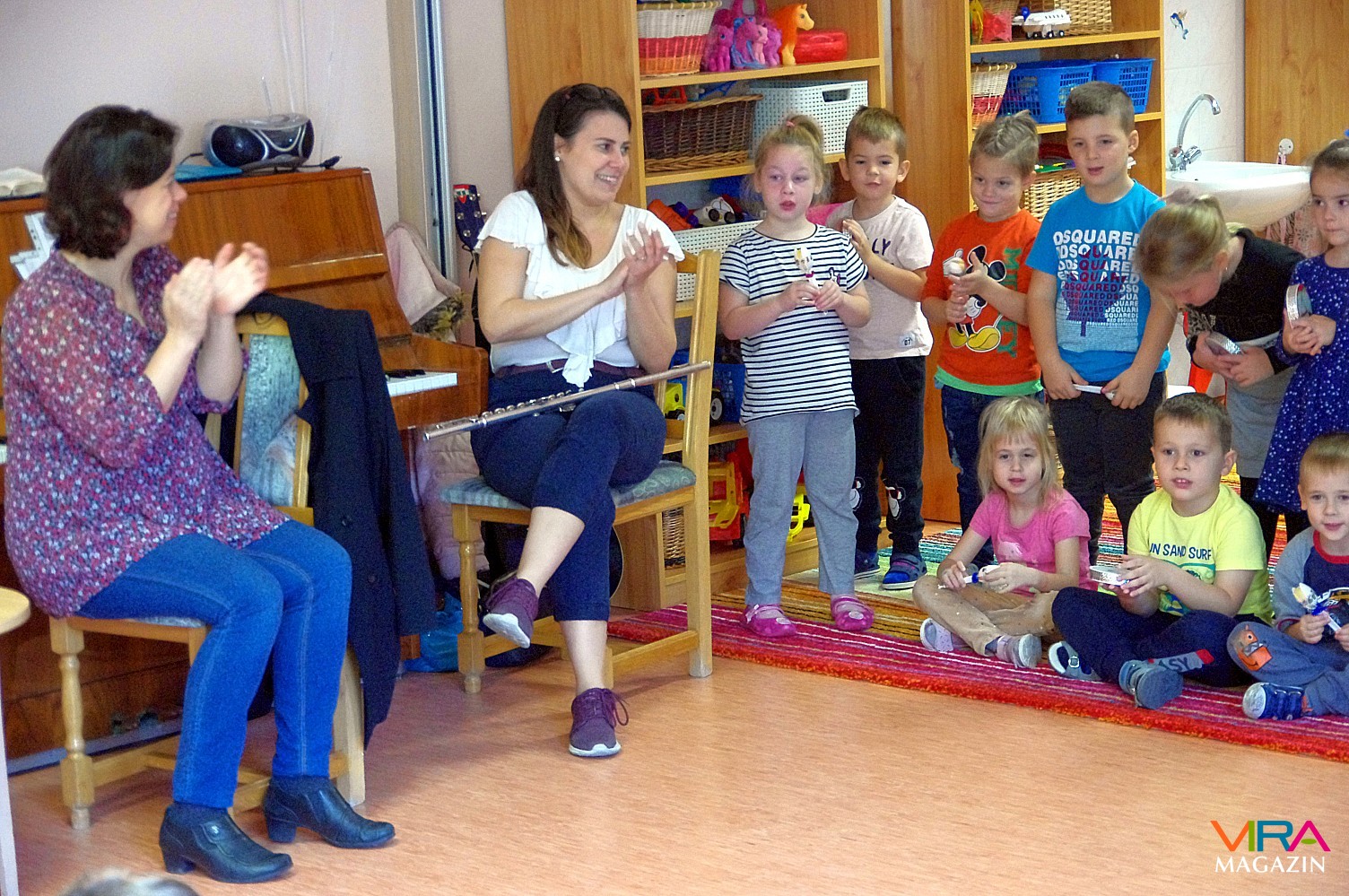 A második héten a hangszerekkel ismerkedtünk, csoportosítottunk, a gyerek ismeretanyagát bővítettük, nagy segítségünkre voltak az IKT eszközök, könyvek. A Halacska csoportban Kiss Tamás mutatta be a trombitát, a Katica csoportban gimnazista lányok varázsoltak elő csodálatos dallamokat fuvoláikból.