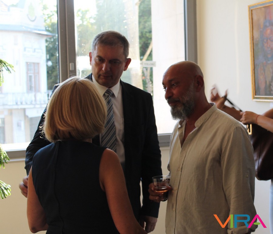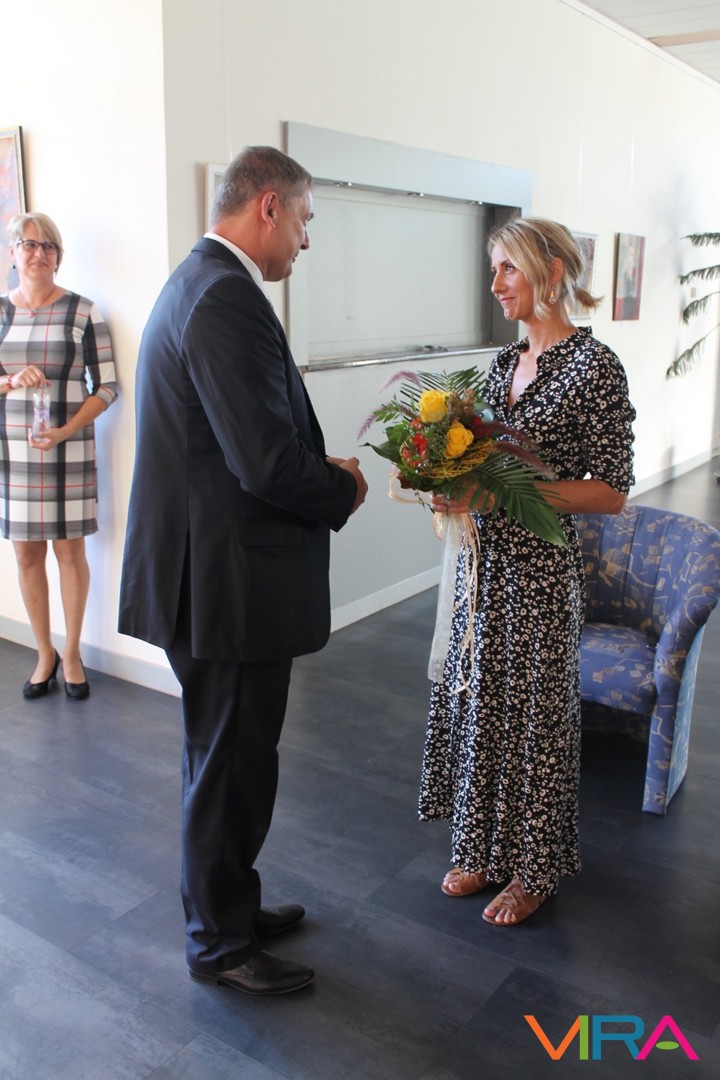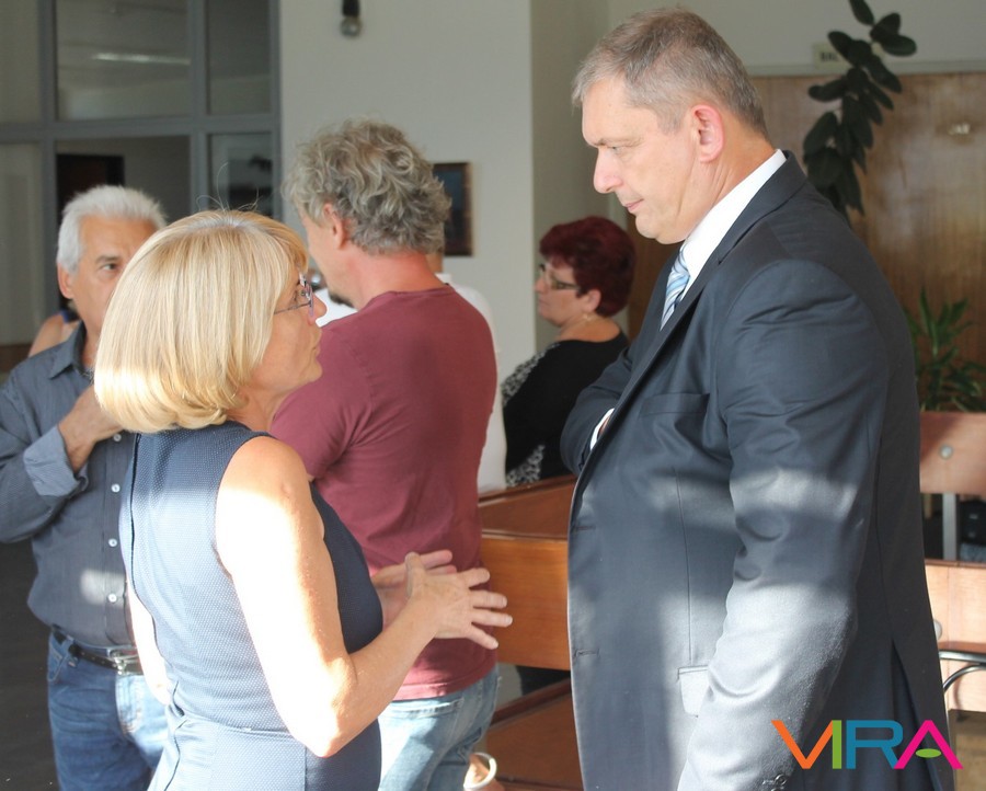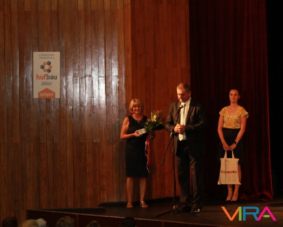 A kiállítás megtekintése után a színházterembe vonultak át a vendégek, ahol Domonyi László polgármester köszönte meg Áginak azt az évtizednyi fáradhatatlan munkát, amit Kiskőrös kultúrájáért, a művészek támogatásáért tett és reményét fejezte ki, hogy a Galéria továbbra is éltetője, támogatója lesz a kortárs alkotóknak.