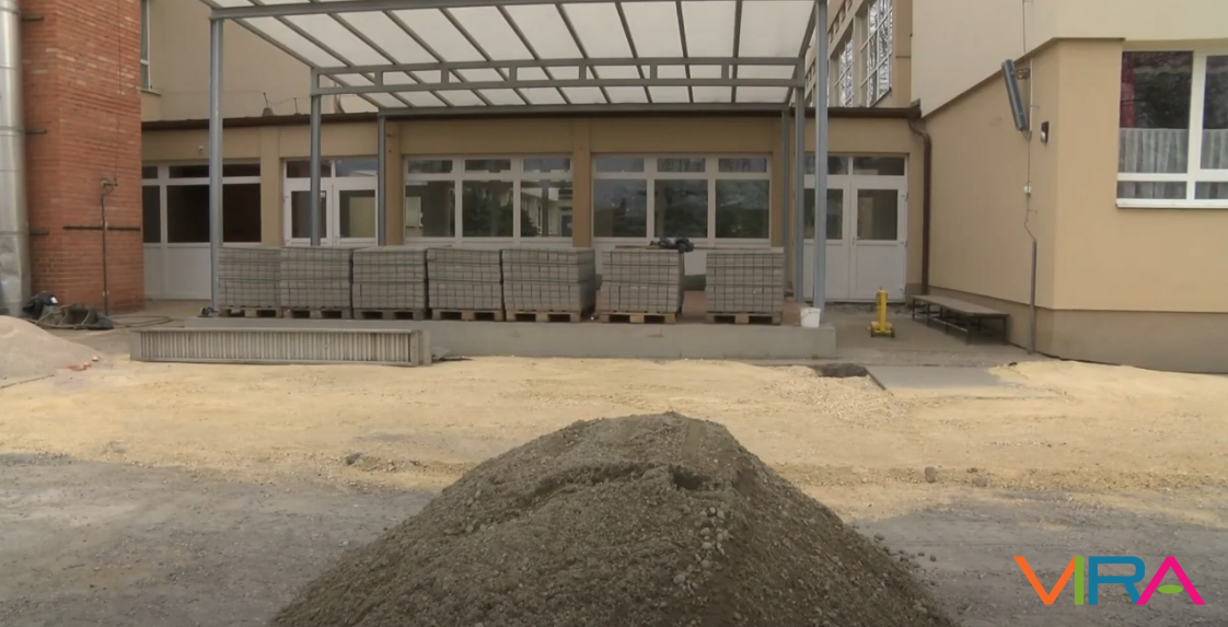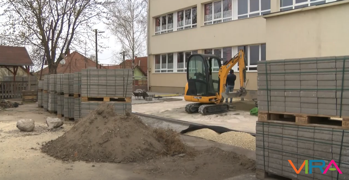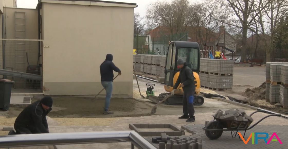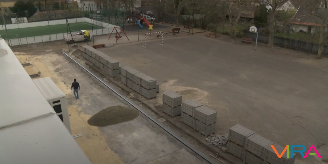 A munkálatokkal az ütemterveknek megfelelően haladnak. Az iskola mögötti területen az intézmény és a kézilabda pálya közötti területet térkövezik le a szakemberek, akik az alap elkészítése után már a térkő egy részét is letették. A beruházás során több mint 700 négyzetmétert térköveznek le. A burkolat alá beton került, hogy arra szükség esetén gépjárművel is rá tudjanak menni.