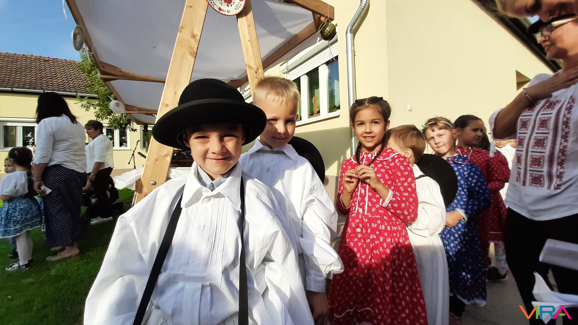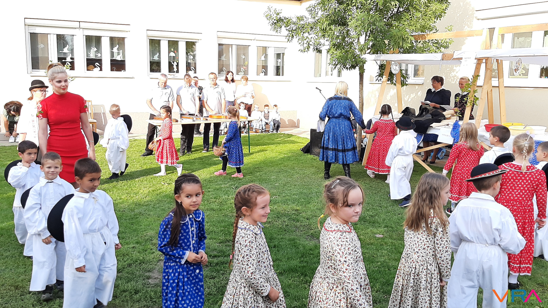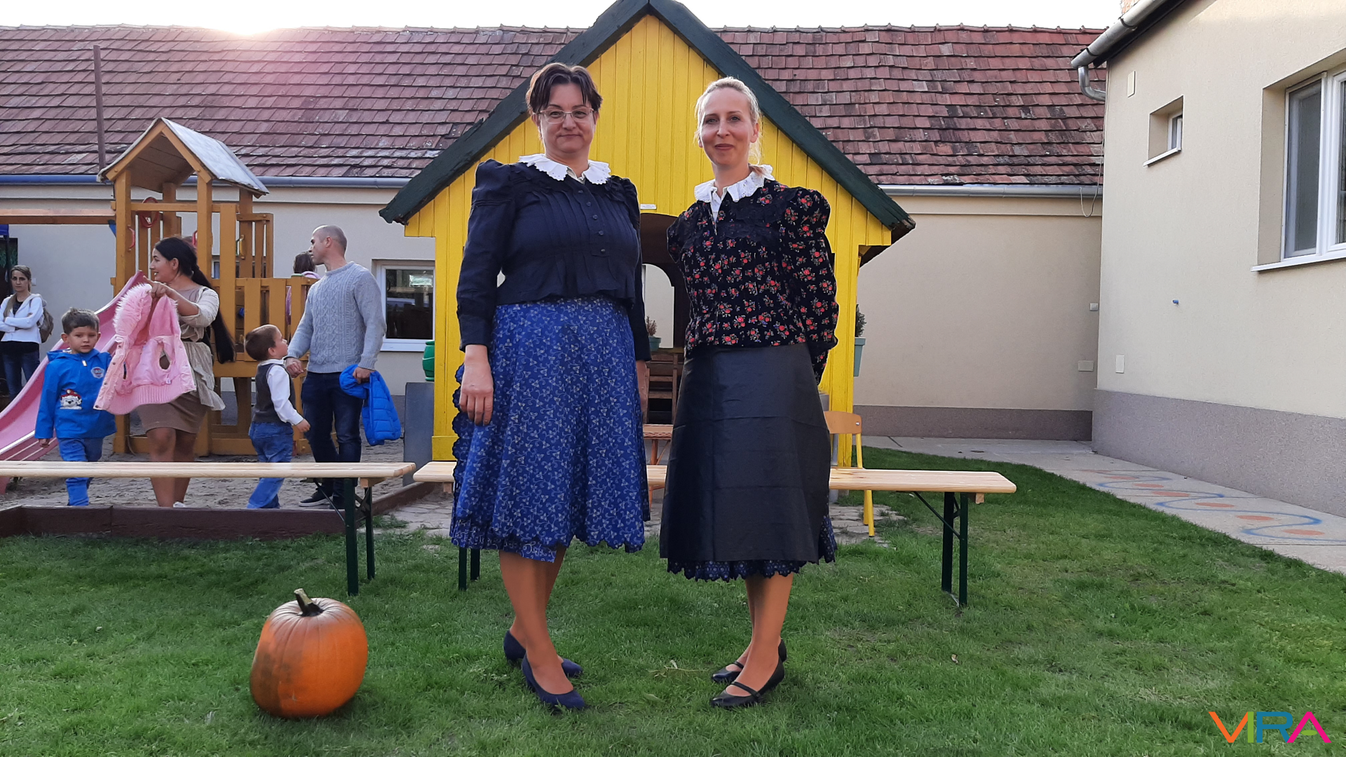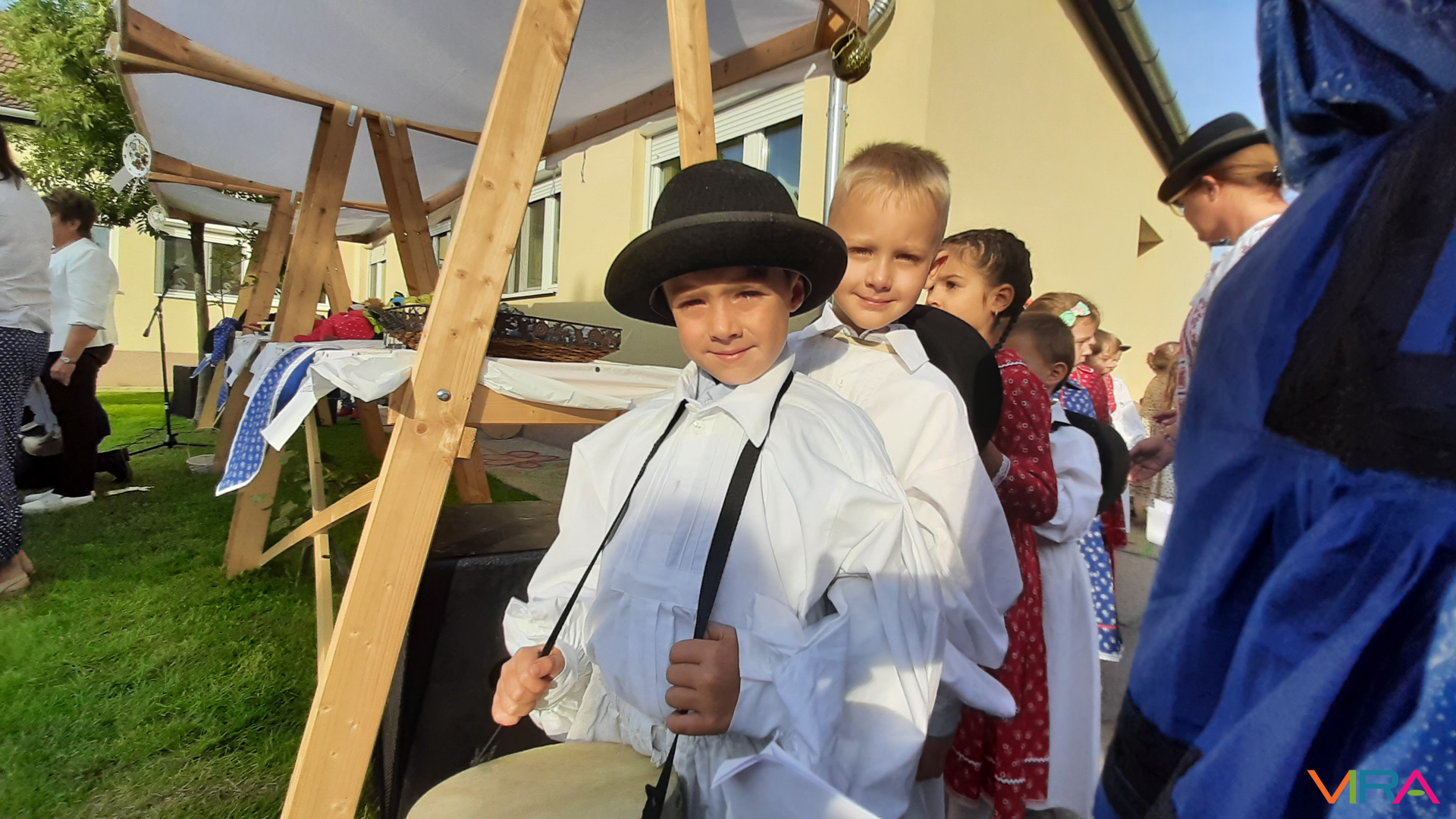 A Mihály-napnak hagyománya van az óvodánkban. A Mihály-napi vásár az első őszi óvodai ünnepünk, amelyre szeptember elejétől készülnek a gyerekek, a pedagógusok és persze a szülők is. Az idei Mihály-nap kicsit nehezebb volt a sok betegség miatt, de együttes erővel megoldottuk, hogy műsor, népi játszótér, portékák és sok-sok finomság legyen a vendégeknek. Három ovisunk édesanyja, Kőháziné Balázs Karolina és családja jóvoltából tudtunk a gyerekeknek pár órán át ugrálóvárat is biztosítani. Nemcsak a jelenlegi ovisok és családjaik jöttek el erre a különleges alkalomra, hanem évről-évre sokan járnak vissza ilyenkor a régi óvodások közül is nosztalgiázni. Az akasztói Vízkereszt Citerazenekar három tagja citerált népi zenéket a szerepléshez, volt népi játszótér is, ahol a gyerekek szőlőt darálhattak. Segítettek a néptáncos gyerekek is a műsort szebbé tenni, ahol kettő kislány régi ovisunk Suba Kíra, Szabó Csenge, illetve párjaik Őszi Balázs és Kecskeméti Máté. A Kiskőrösi Szlovák Önkormányzat elnöke és egykori pedagógustársunk Györk Ernőné megismertette a szlovák népviseletet velünk. Ezúton szeretnénk köszönetet mondani az Eatrend Kft.-nek, akik teát és limonádét ajánlottak fel az óvodának. Így telt el a mi kis Mihály-napunk, amit jövőre is nagyon szeretnénk megrendezni.