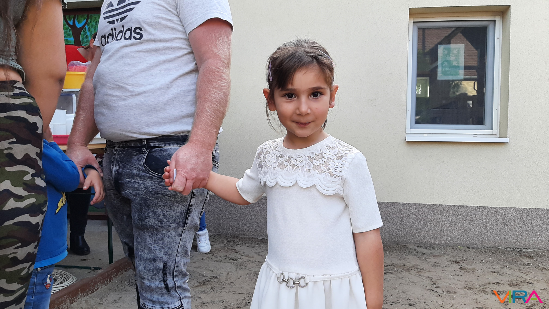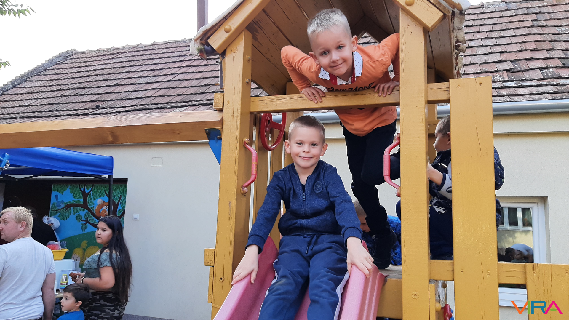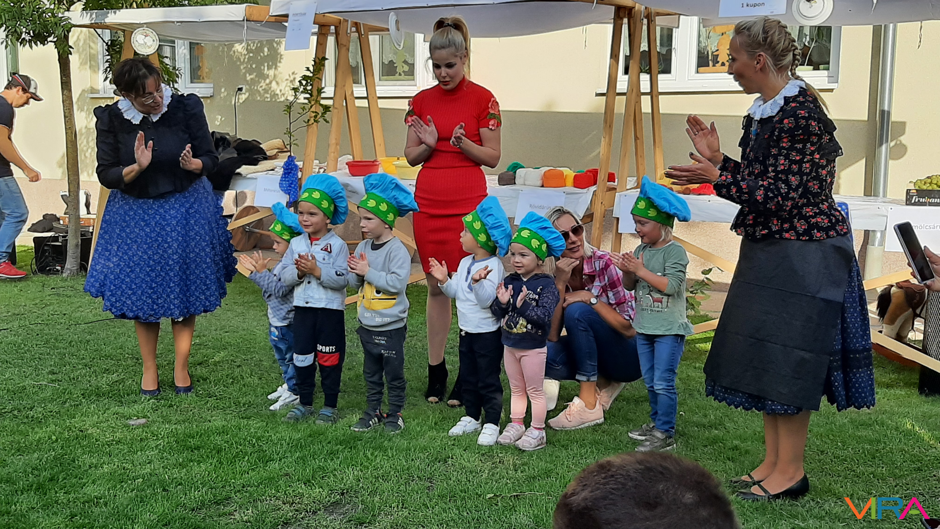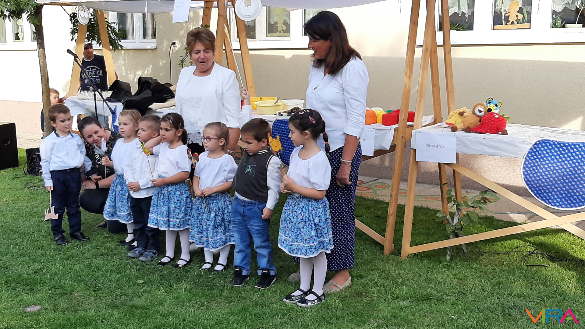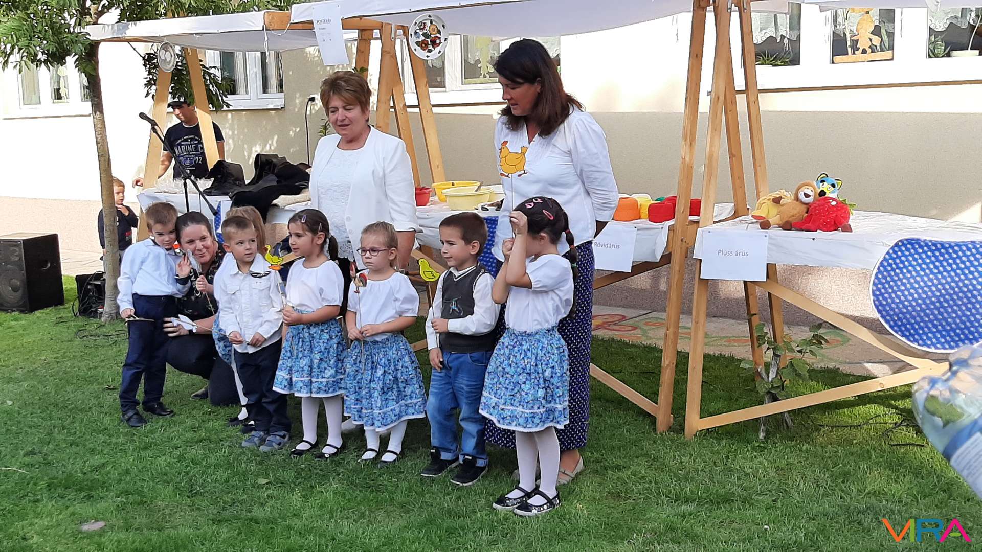 Az óvónők csodaszép szlovák viseletben várták a vendégeket. Régi és jelenlegi ovisok és családjaik töltötték meg az udvart, a szülők és nagymamák helyben sütötték a lángost, pattogtatták a kukoricát. A gyerekek pedig megismerték a vásárfia szót, kis kuponjaikkal álltak sorban zsákbamacskáért, lángosért, süteményért. Az ugrálóvár is folyamatosan gyerekkacajtól volt hangos, aki pedig tehette, sorban állt a szintén óvó nénik által készített arcfestésért is.