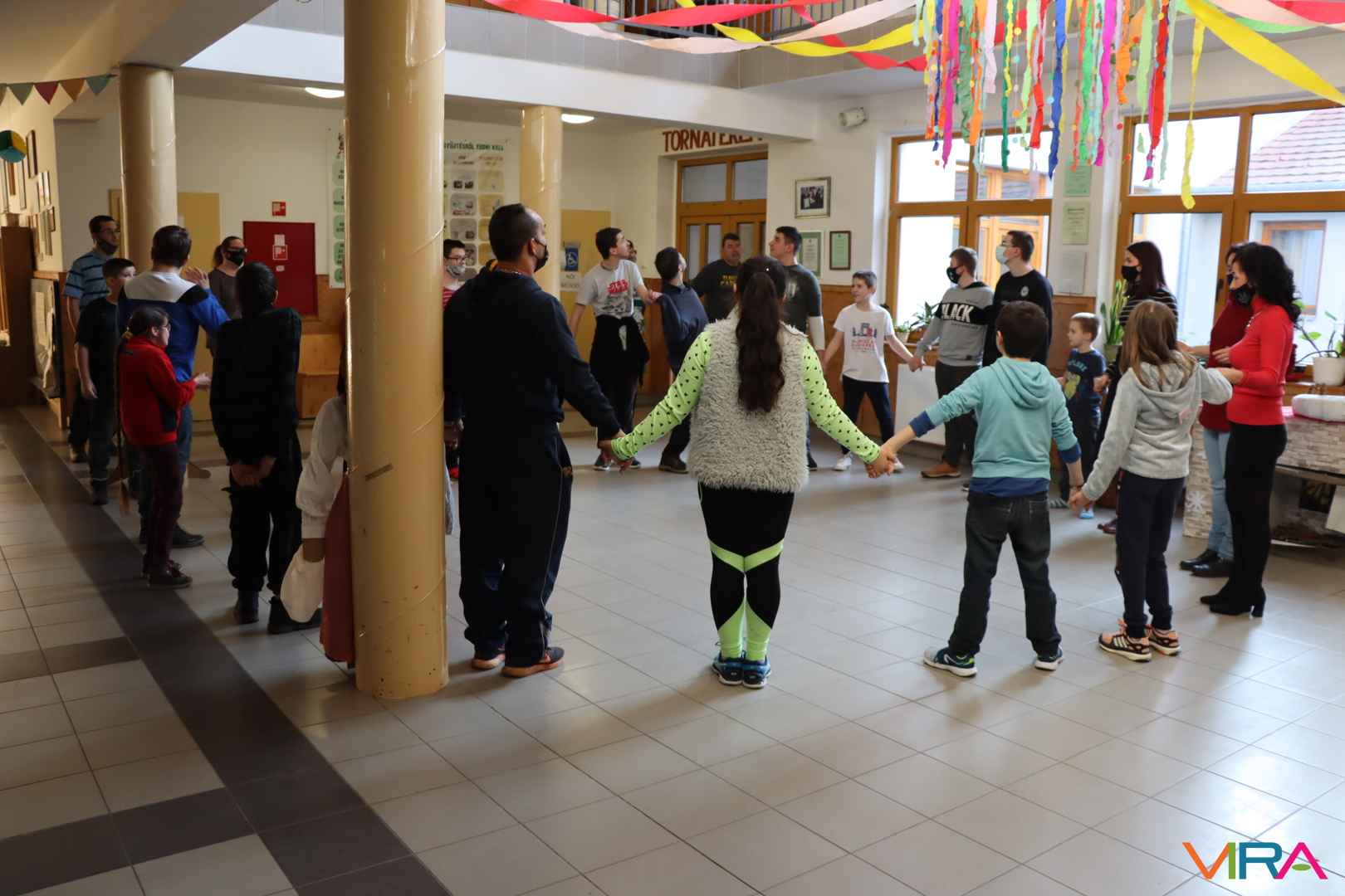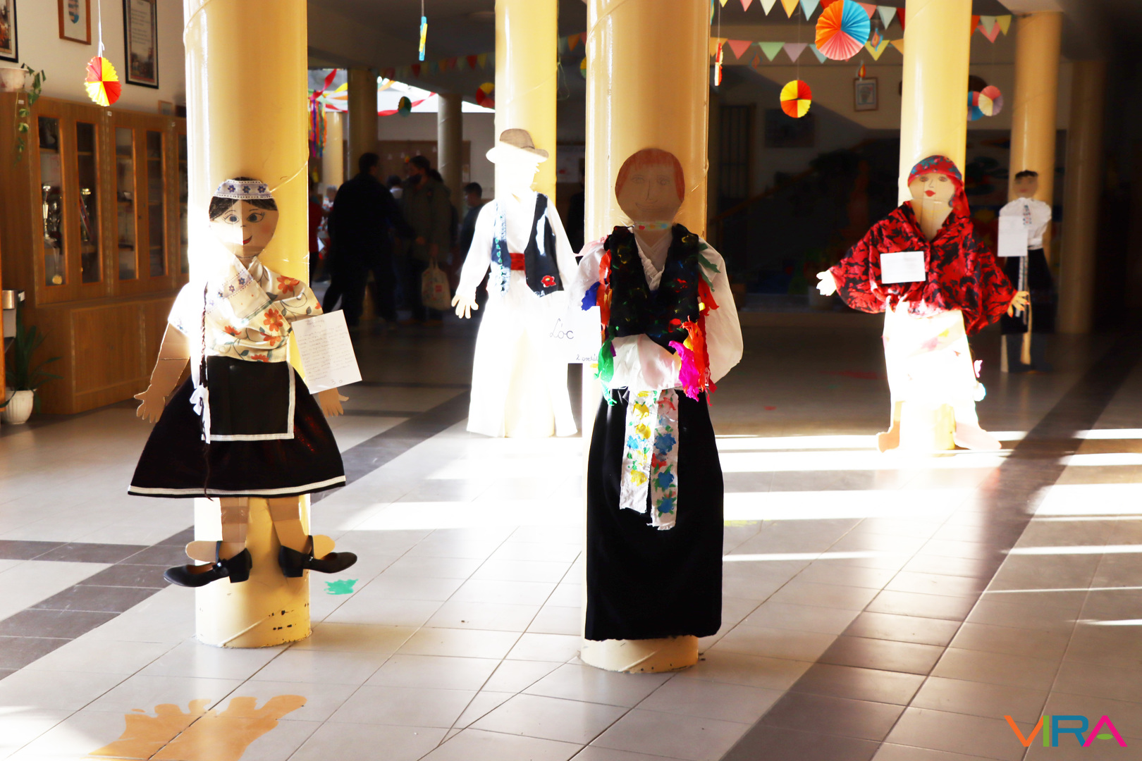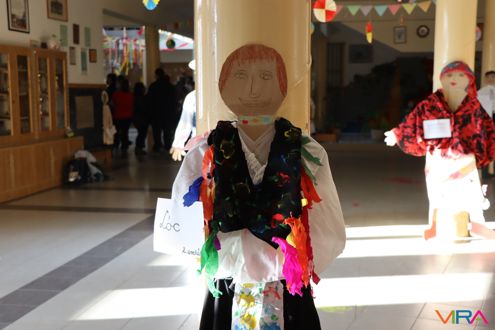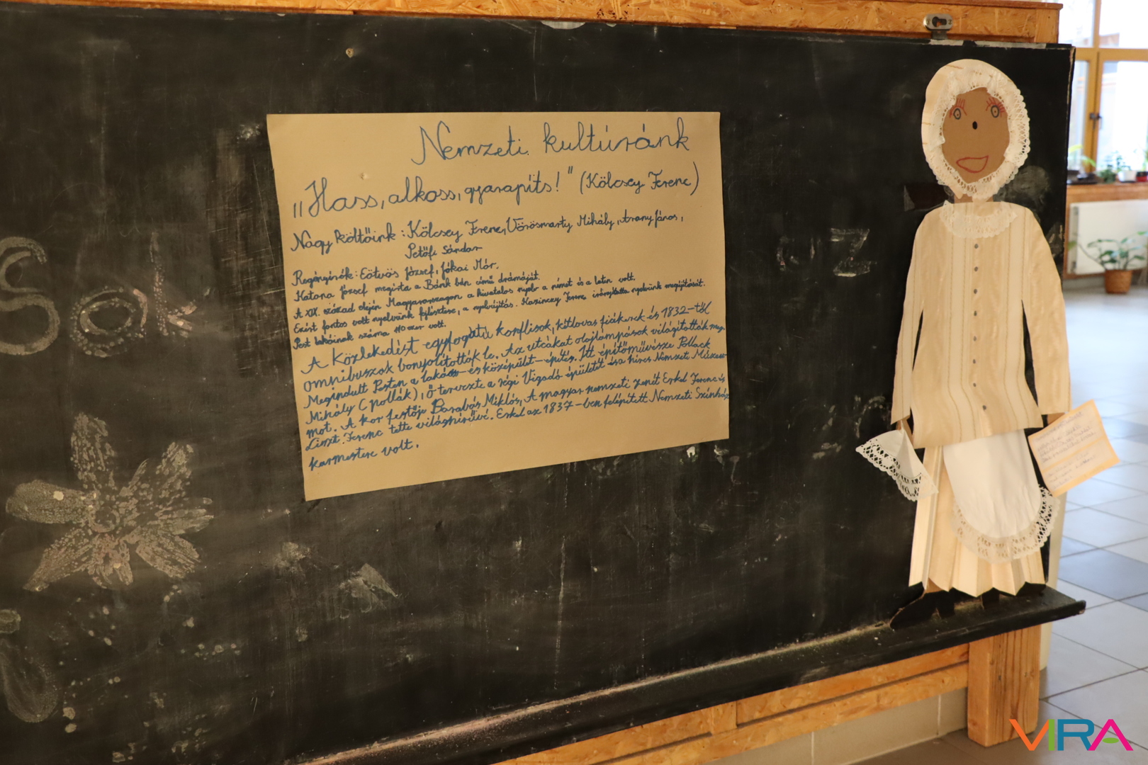 „A héten különböző programok valósultak meg a Kiskőrösi EGYMI-ben. Minden nap a második és a harmadik óra elején verseket, meséket mondtak a gyerekek az iskolarádión keresztül, amely nagyon nagy sikert aratott. Hétfőn örömzenélés valósult meg magyar népdalok éneklésével, egyszerű ritmushangszerekkel kísérve. Szünetekben autentikus magyar népzenét hallgathattak tanulóink. Feladatul kapták az osztályok/csoportok, hogy magyar tájegységekhez kapcsolódó, arra jellemző népviseletbe öltöztetett babát konstruáljanak újrahasznosítható anyagokból. Tehát olyan kiegészítőket, ruhákat kellett készíteniük, vagy gyűjteniük, melyeket nem újonnan vásárolnak. Az osztályoknak komoly kutatómunkát kellett végezniük, hiszen az adott népviselet mellé pontos leírást is kellett mellékelni. Az elkészült alkotásokat az aulában állítottuk ki először, majd úgy döntöttünk, hogy a folyosón található oszlopokhoz rögzítjük azokat, hogy mindenki jól láthassa. Roma, lóc (fiú-lány), kalotaszegi, kalocsai, szlovák, sváb, hortobágyi (fiú-lány), galgamenti, sárközi, marosszéki, hollókői viseletben pompáznak a bábuk. Nagyon szeretnénk, ha ebből a programból hagyomány lenne, hiszen azt látjuk, hogy a gyerekek tetszését is elnyerte.