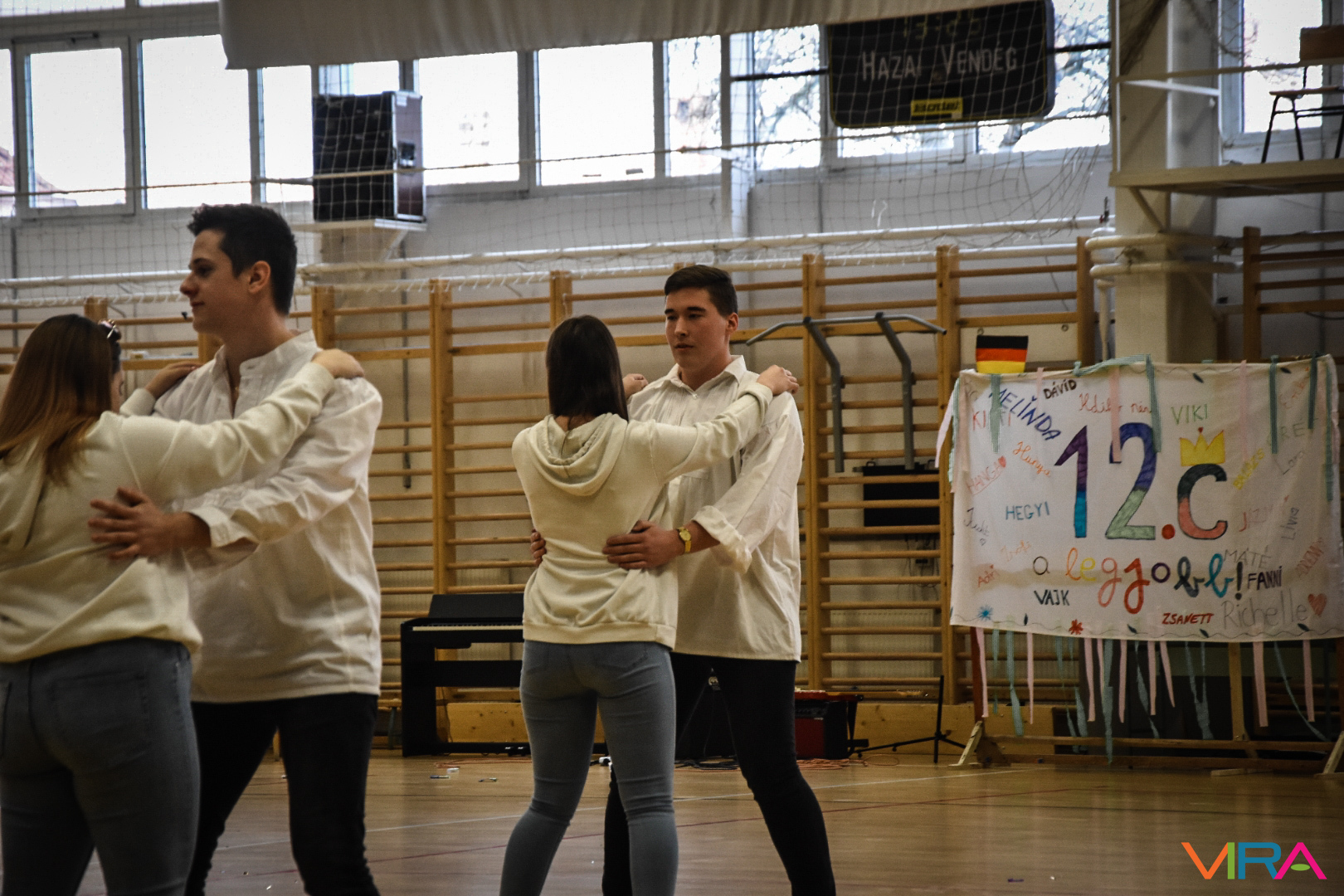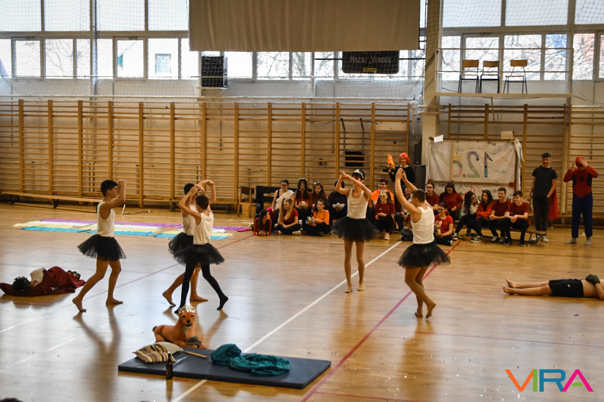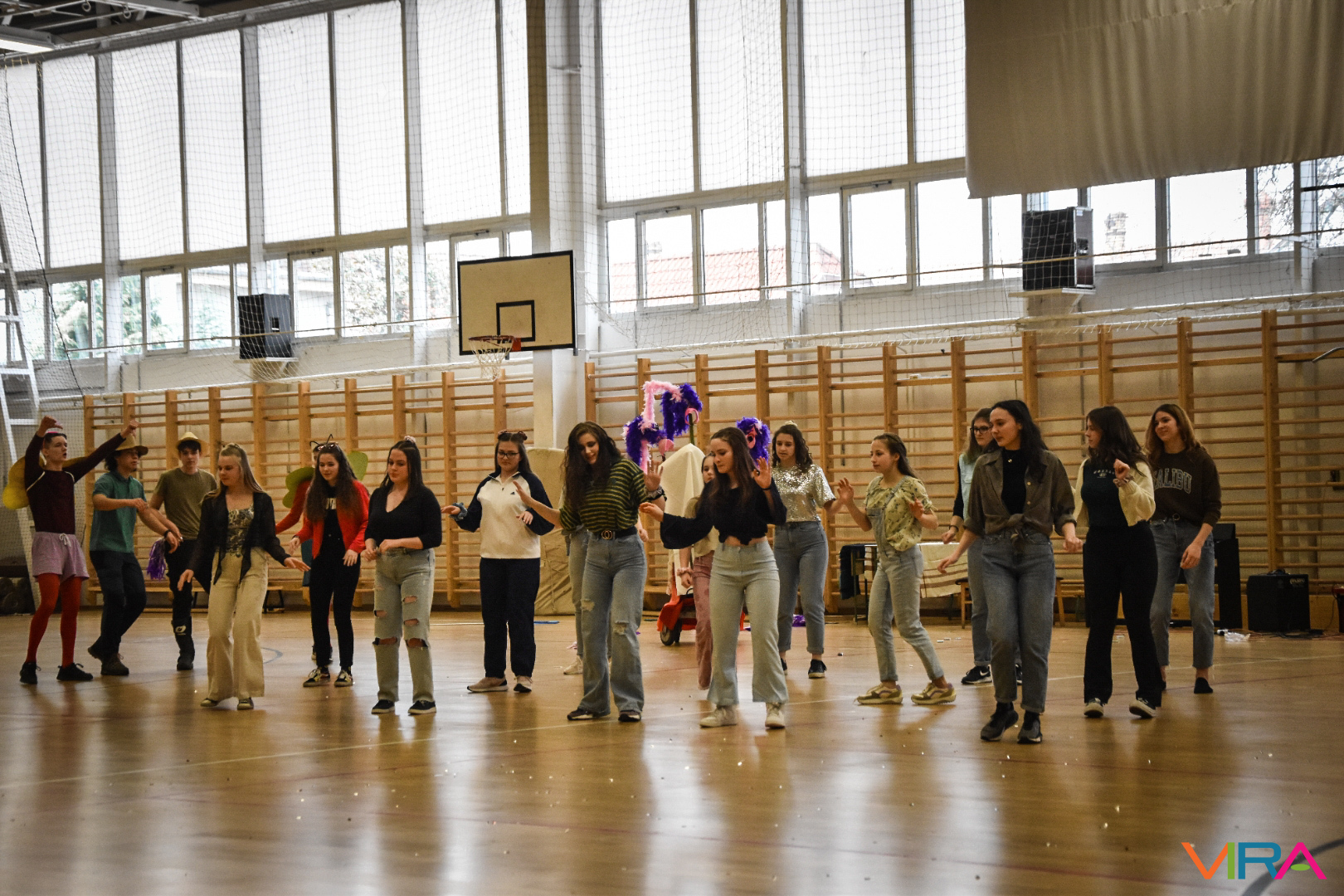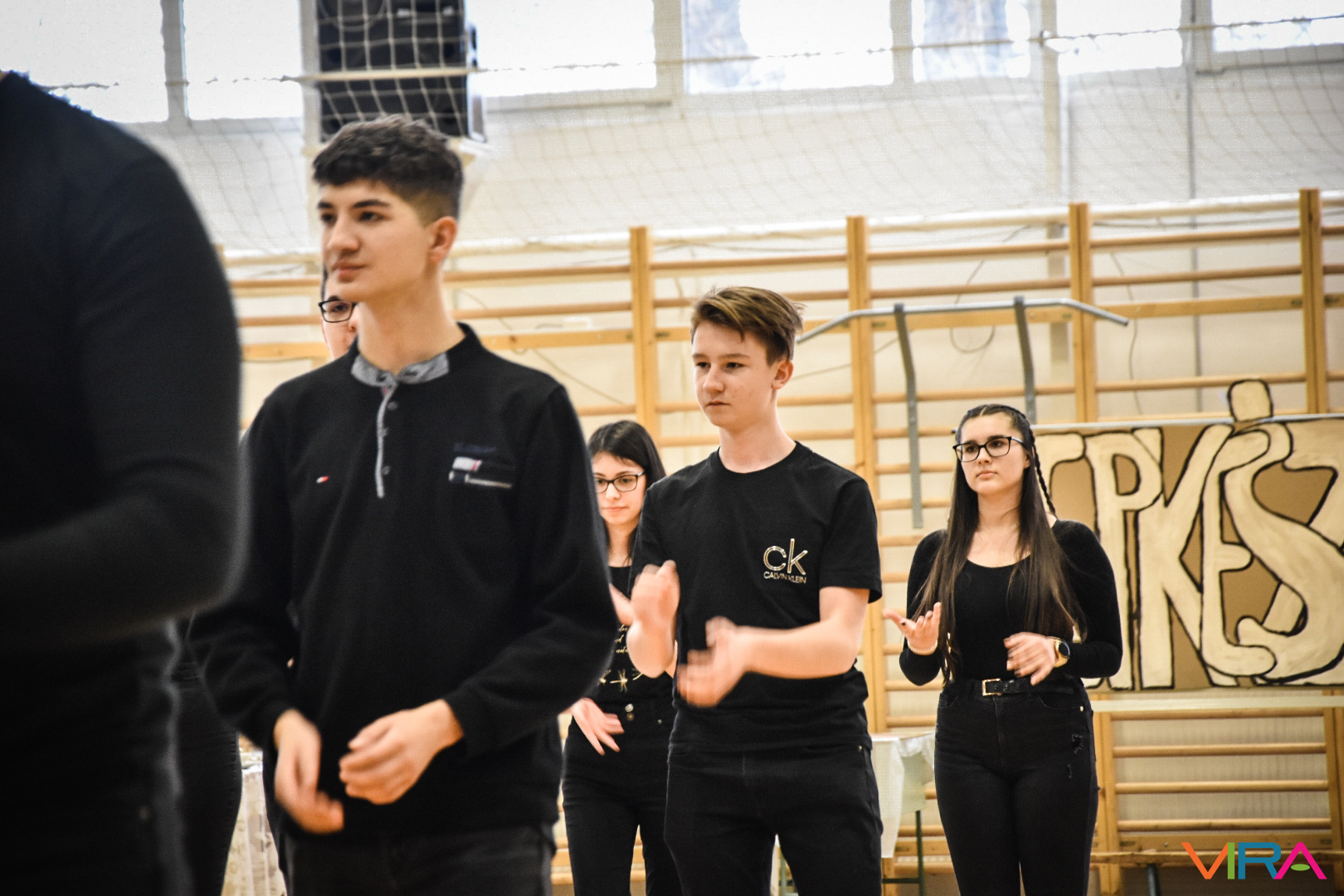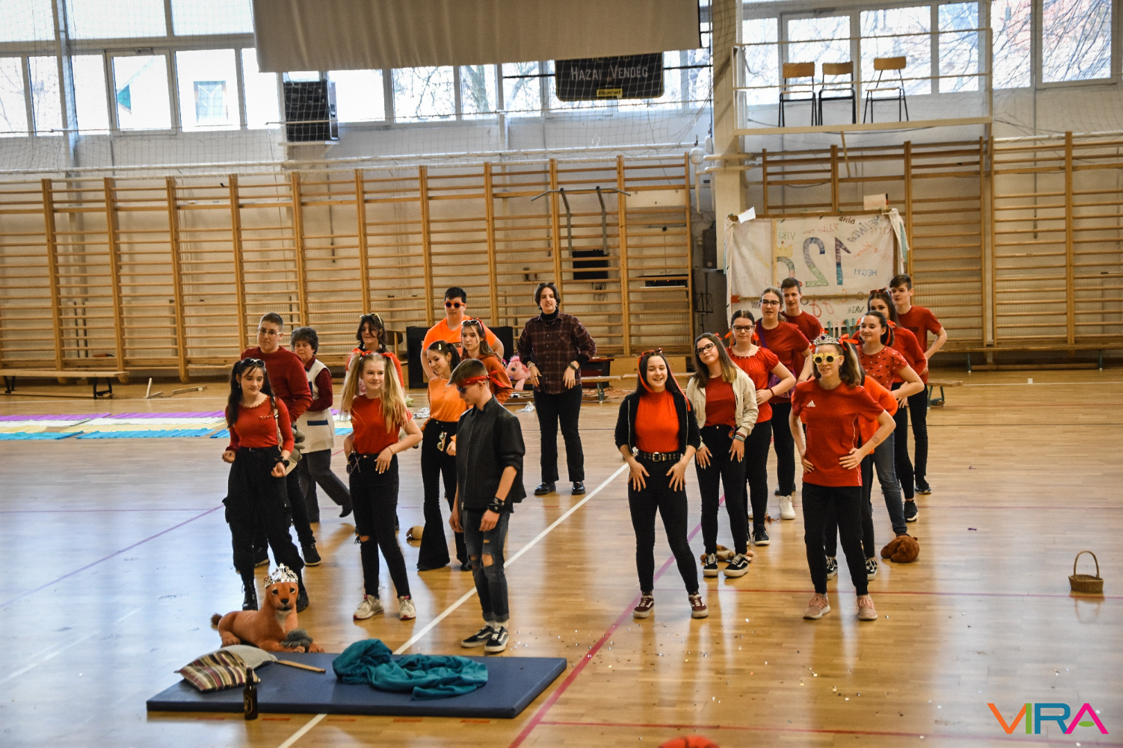 Amíg a zsűri meghozta döntését, a 10. évfolyamosok tánccal szórakoztatták a többieket.