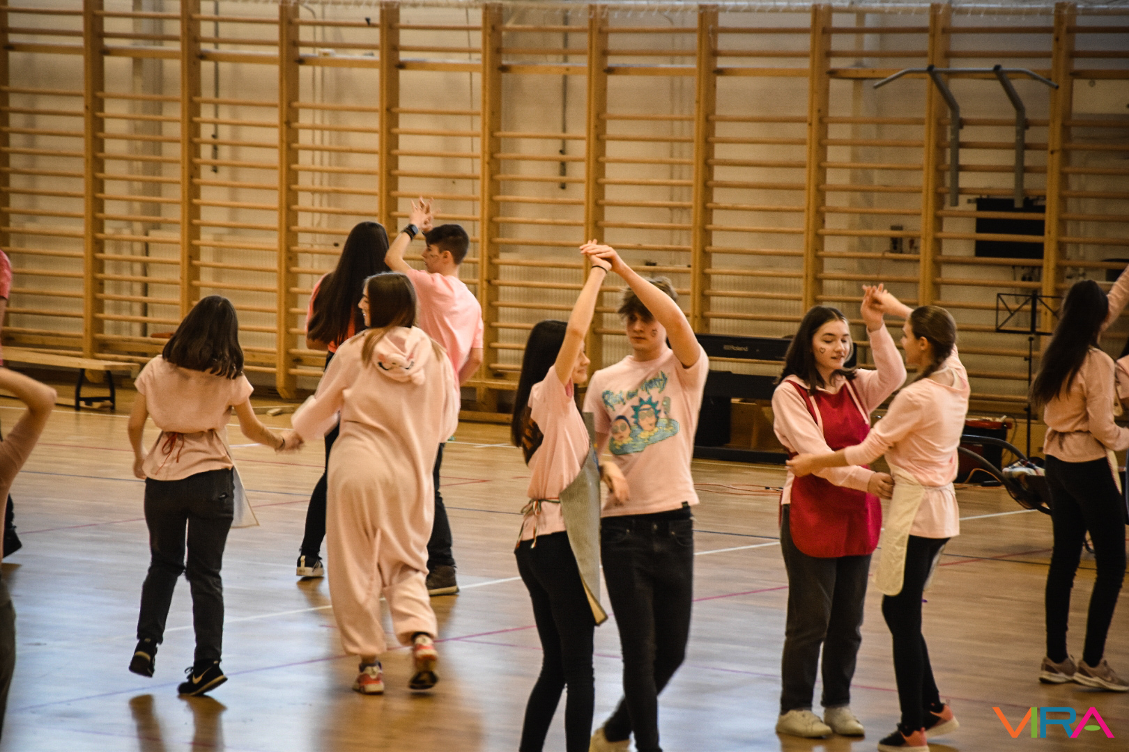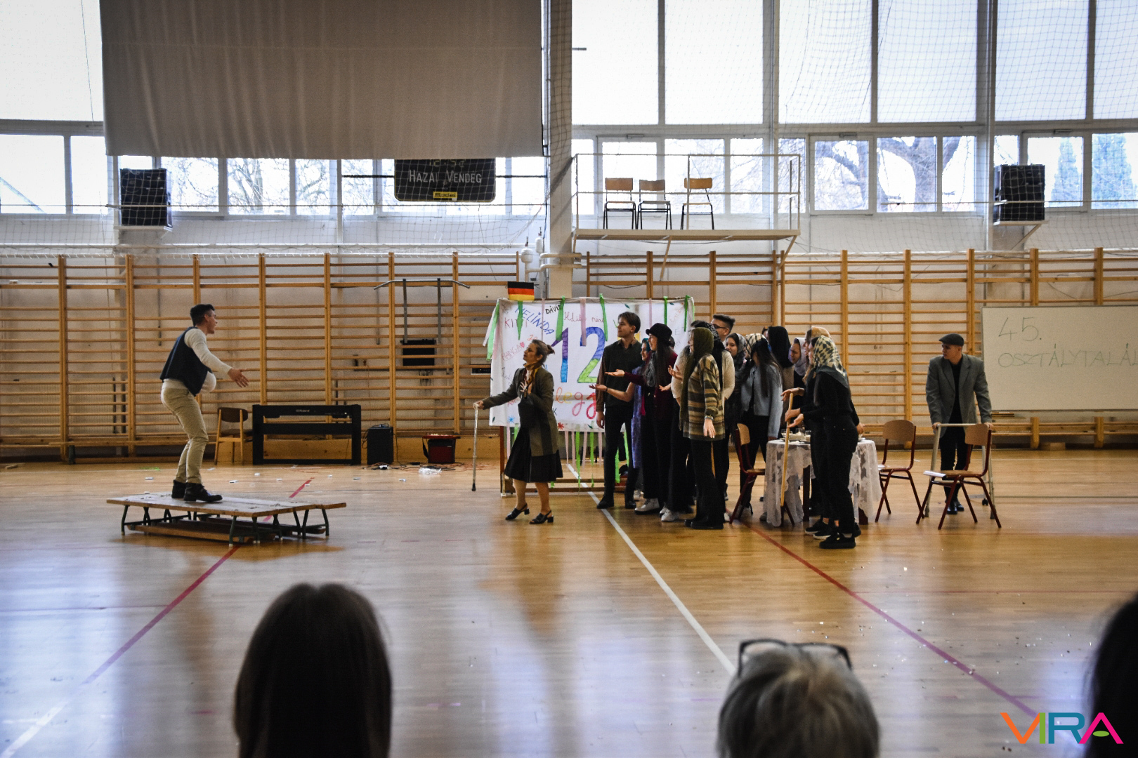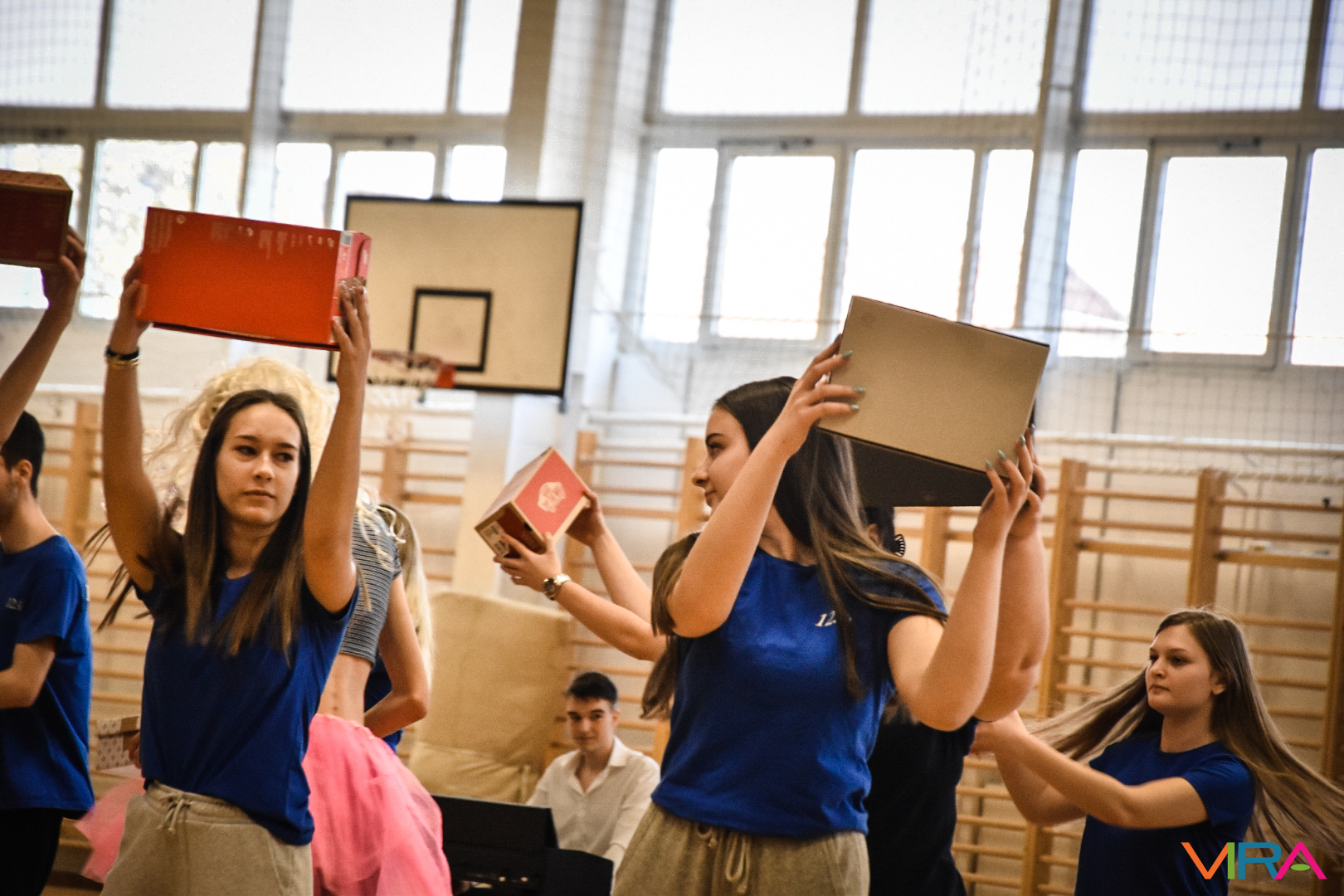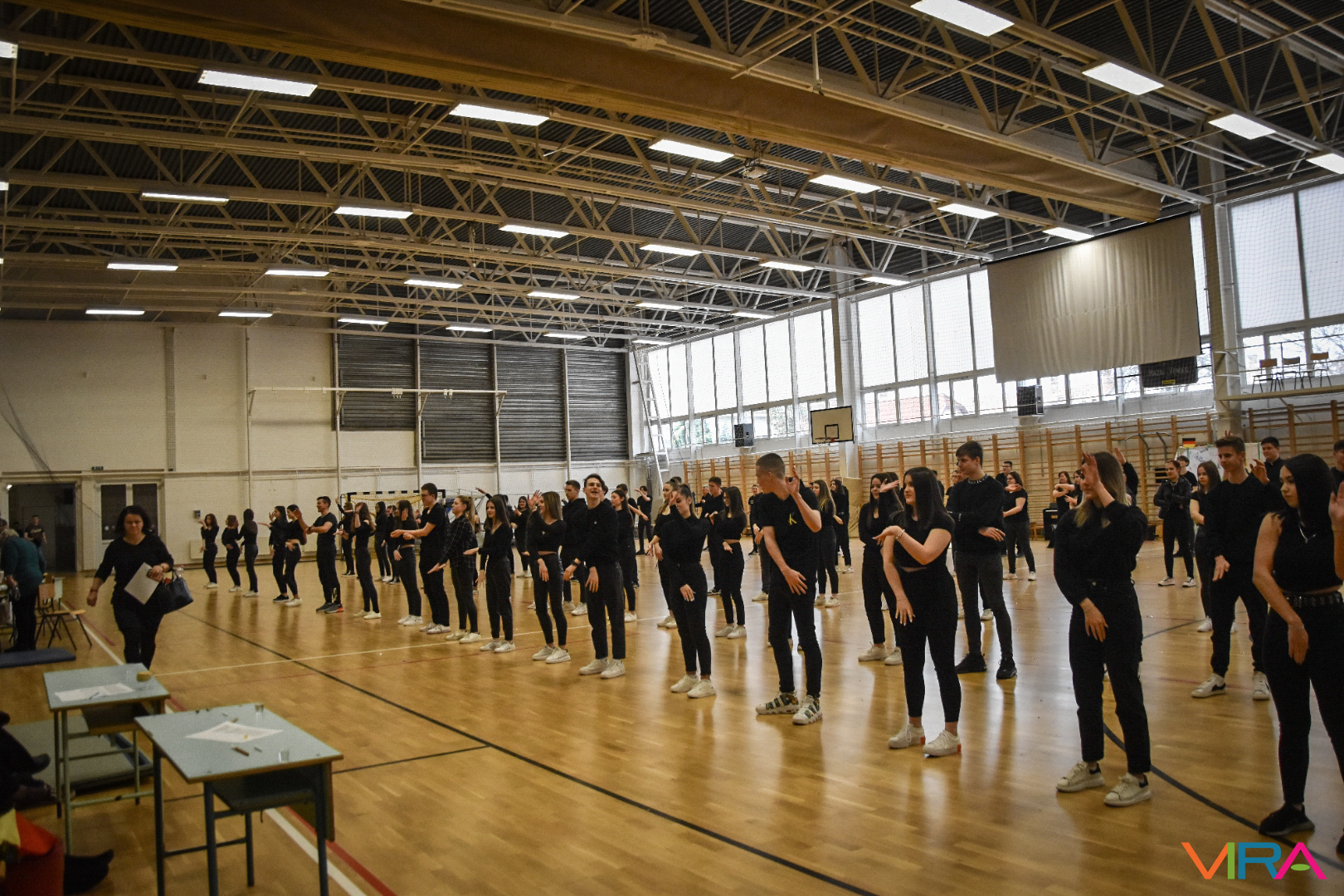 Amíg a zsűri meghozta döntését, a 10. évfolyamosok tánccal szórakoztatták a többieket.