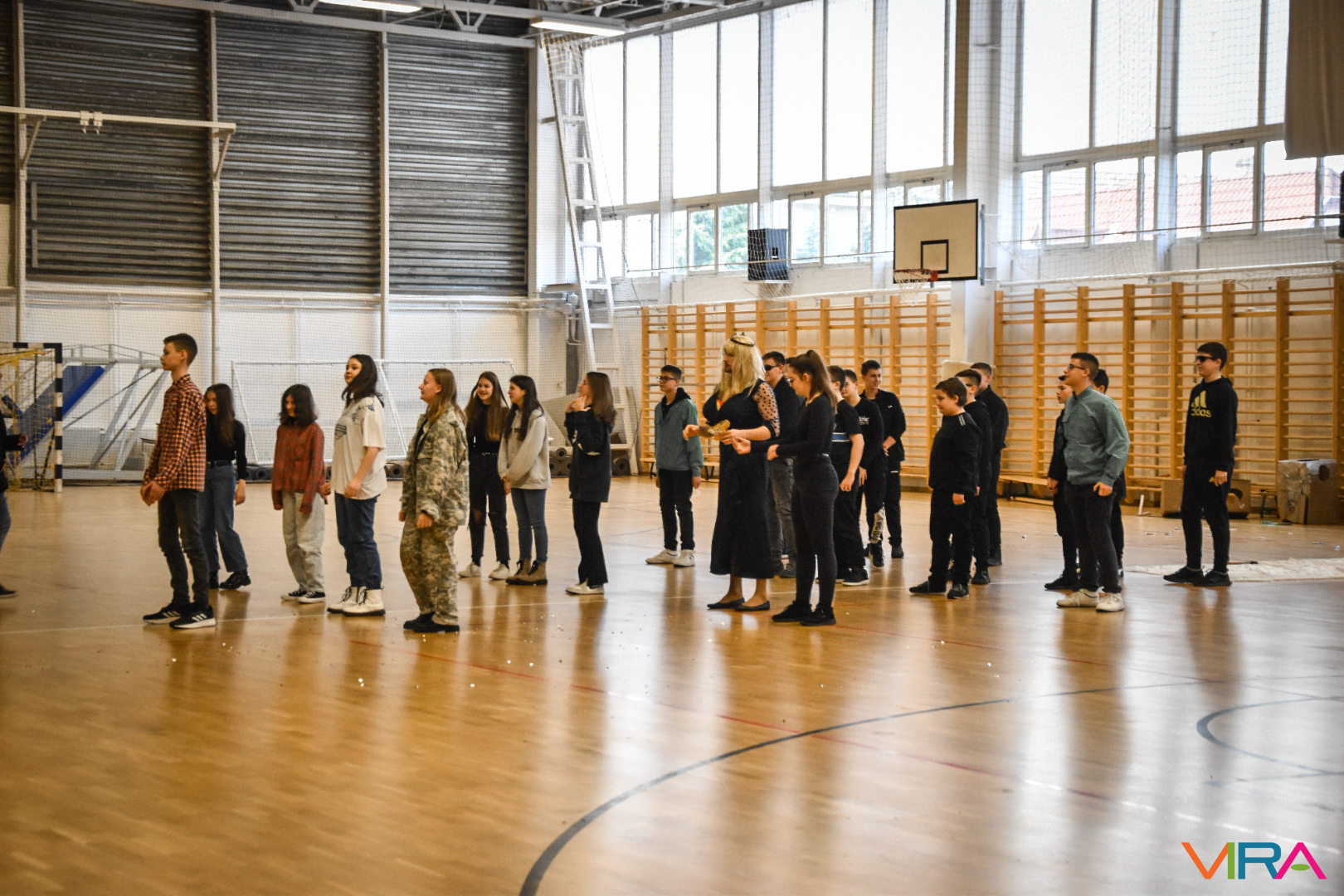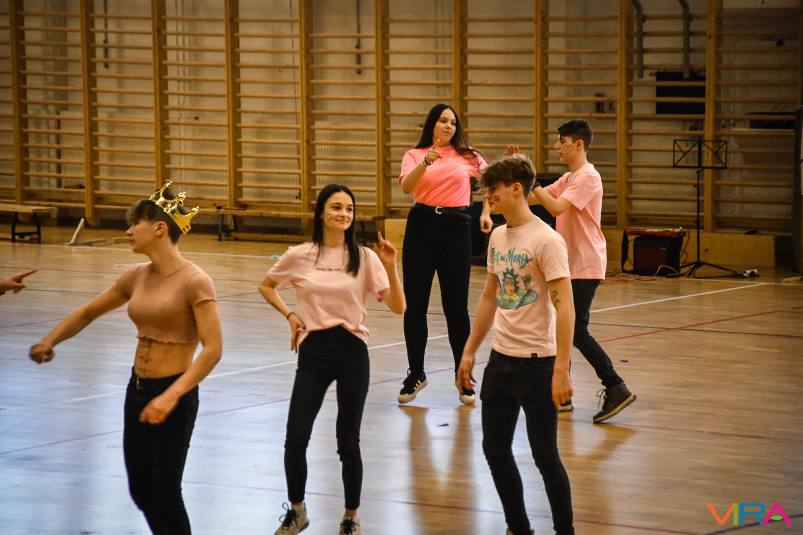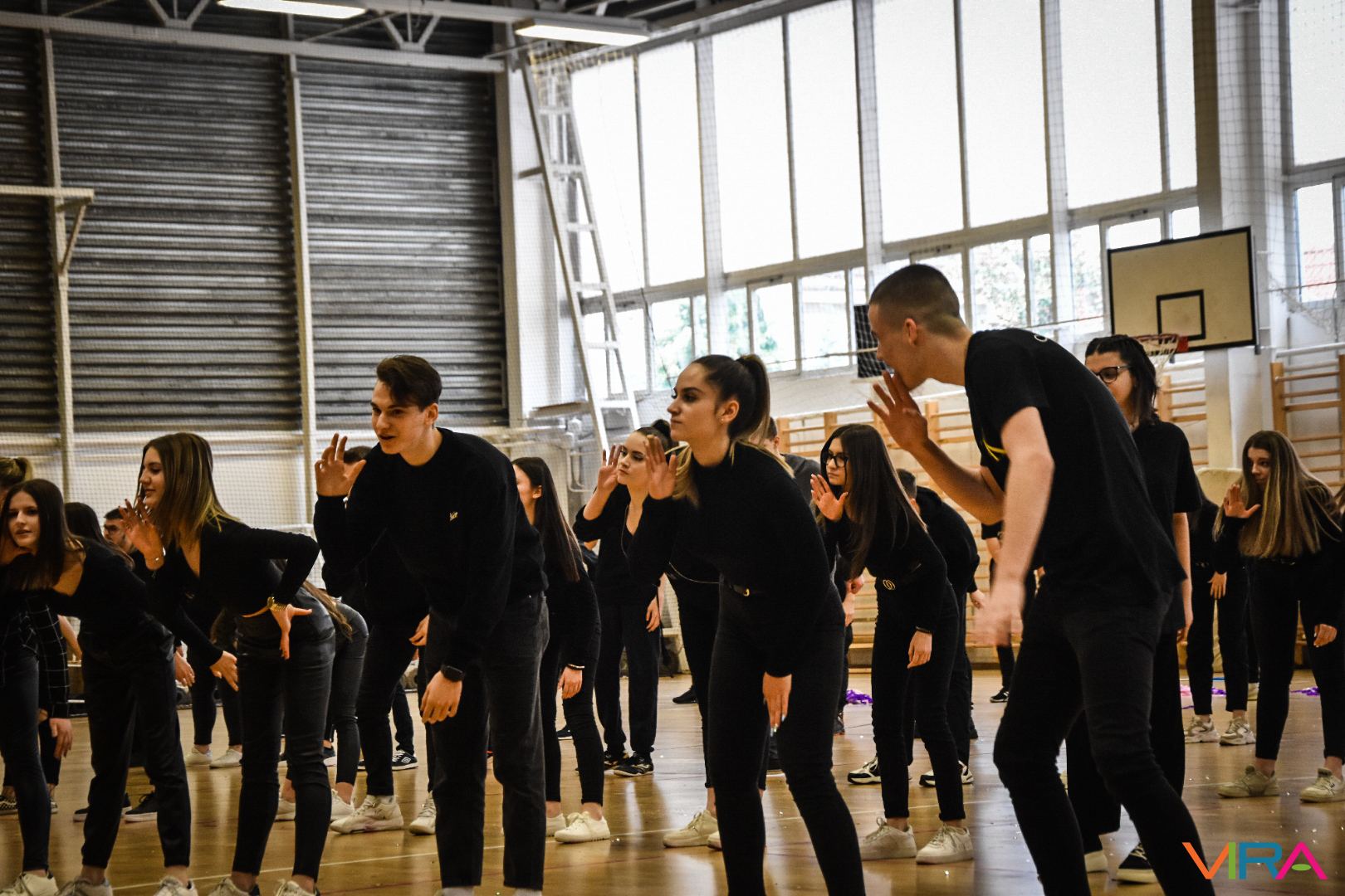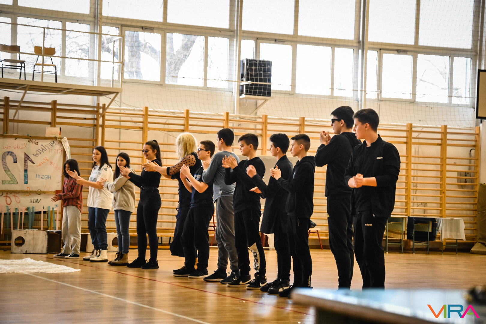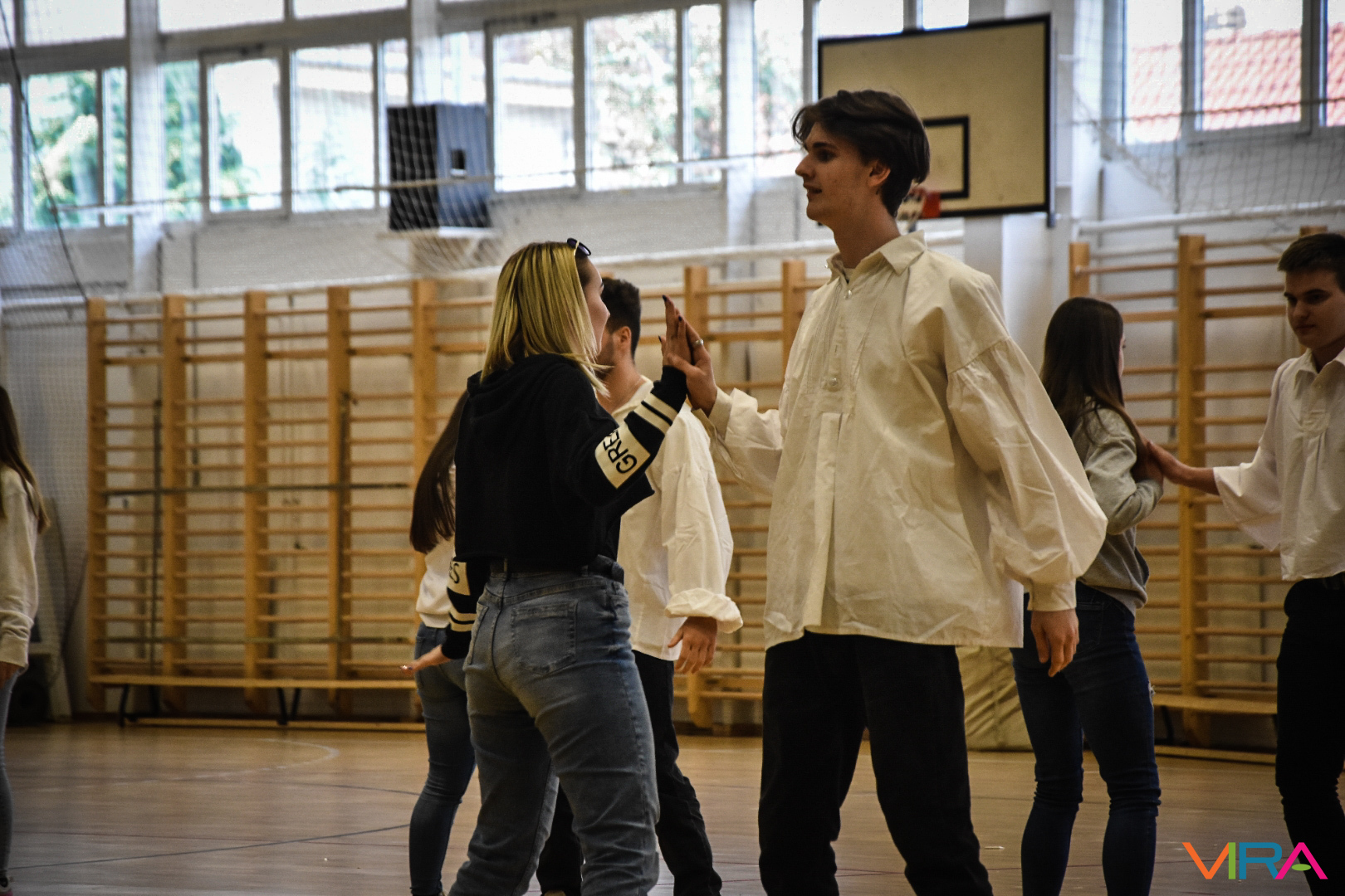 Amíg a zsűri meghozta döntését, a 10. évfolyamosok tánccal szórakoztatták a többieket.