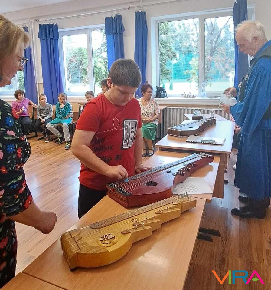 A hétfő délután a hagyományőrzés jegyében telt. Ebből az alkalomból a kaskantyúi Levendula Citerazenekar néhány tagja: Szentesiné Belák Mária, Kósa Gyula, Kiss Gáborné Farkas Mária, Kurucz Pálné látogatott el a gyerekekhez, akik egy kis történetet adtak elő jól ismert gyerekdalokból összeállítva. Természetesen a közös éneklés és a táncház sem maradhatott el, továbbá az érdeklődő gyerekek meg is pengethették a húros népi hangszereket.