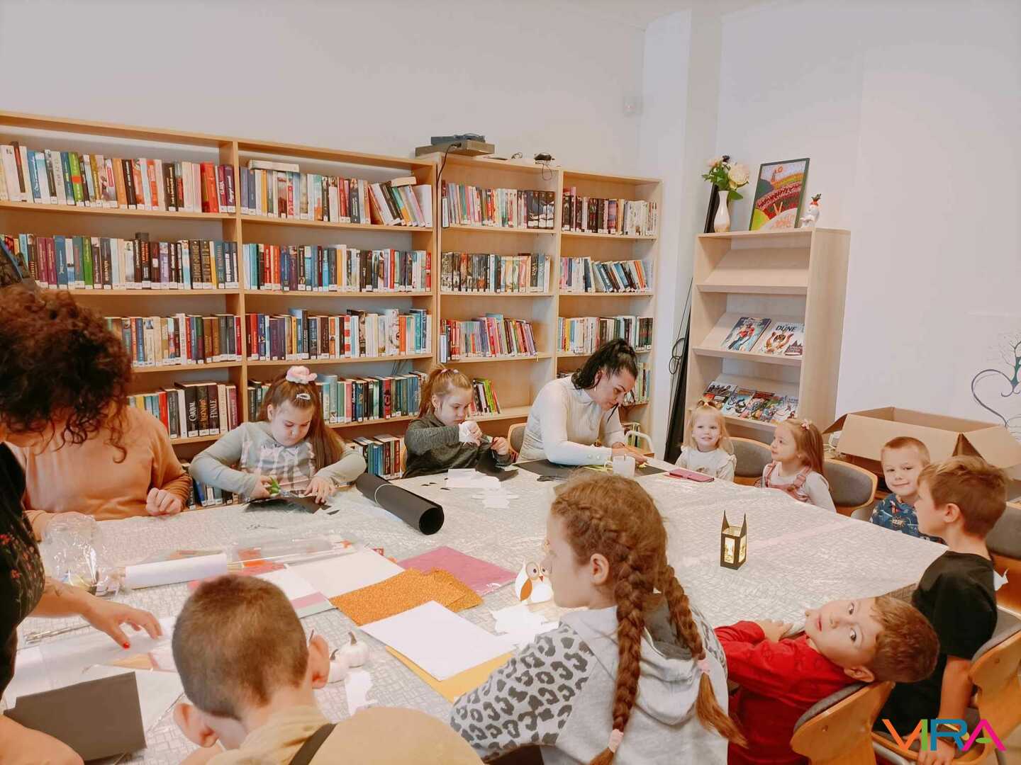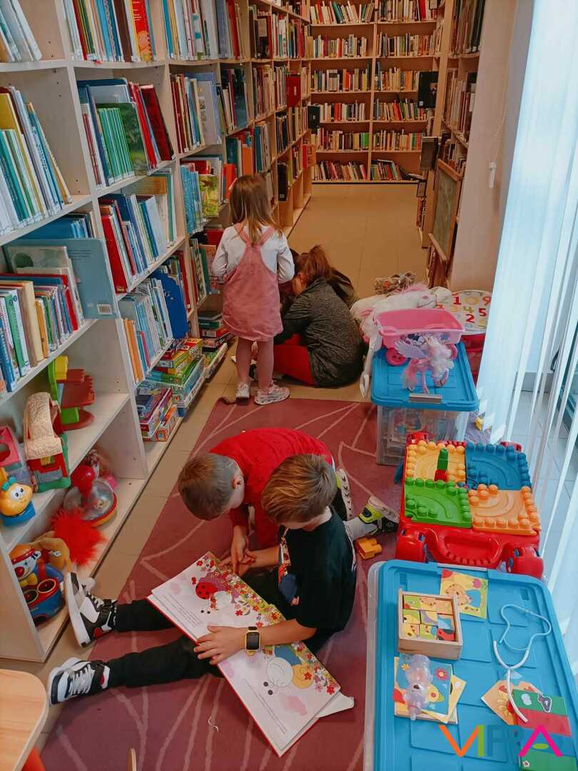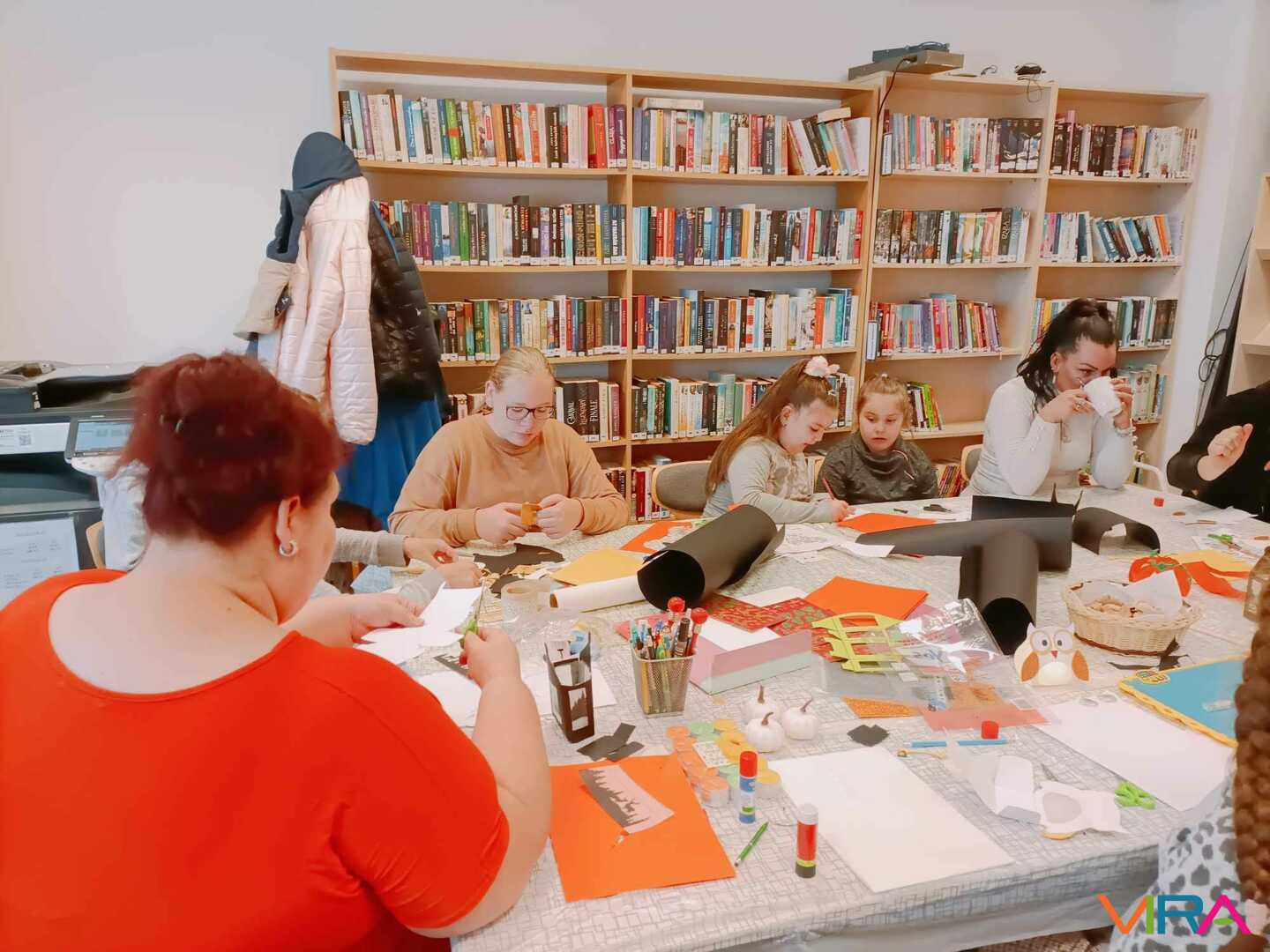 A foglalkozáson már az egész picikék is részt vehettek, mivel őket a kézműveskedés csak rövid ideig kötött le, így az apróságoknak egy meseolvasós, játékos délelőttel is készültek. Először Klári néni, az egyik kedvenc könyvtárosuk olvasott fel, majd a nagyobb gyerekek is kedvet kaptak és egy rögtönzött meseolvasással lepték meg a kicsiket.