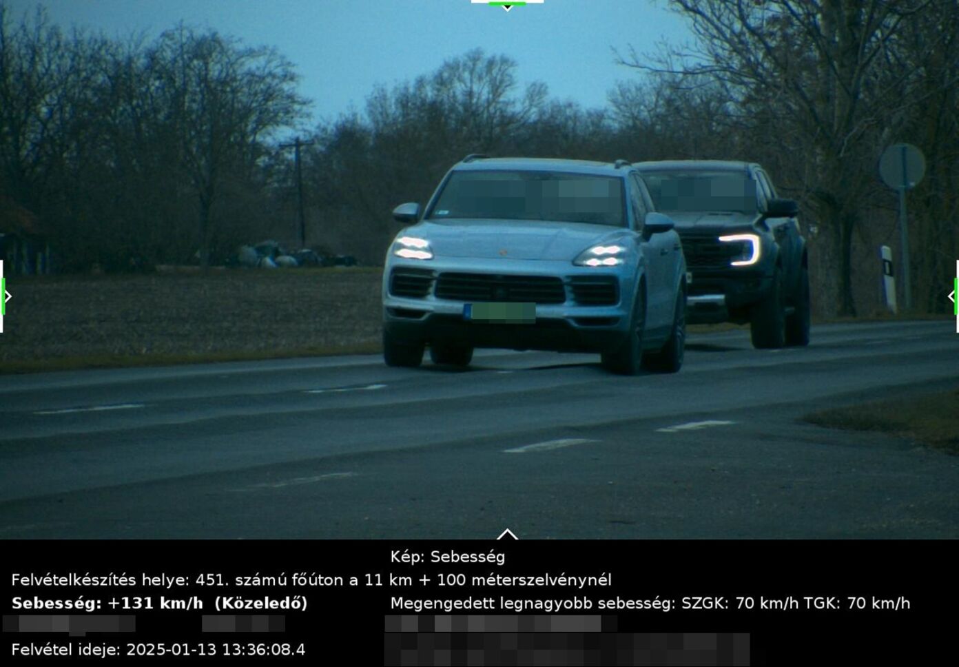 Az elmúlt héten a megengedett sebességhatárokat regisztráltan 1251-en lépték át. A szabálytalankodóknak legalább 50.000 forint közigazgatási bírságot kell fizetniük, a kiszabható bírság összegének maximuma pedig 468.000 forint. A képeken szereplő sofőrök azonban 140.000 forintos bírságra számíthatnak, hiszen a megengedett sebességhatárt mindegyikük jelentősen túllépte.