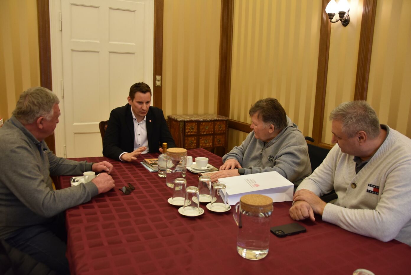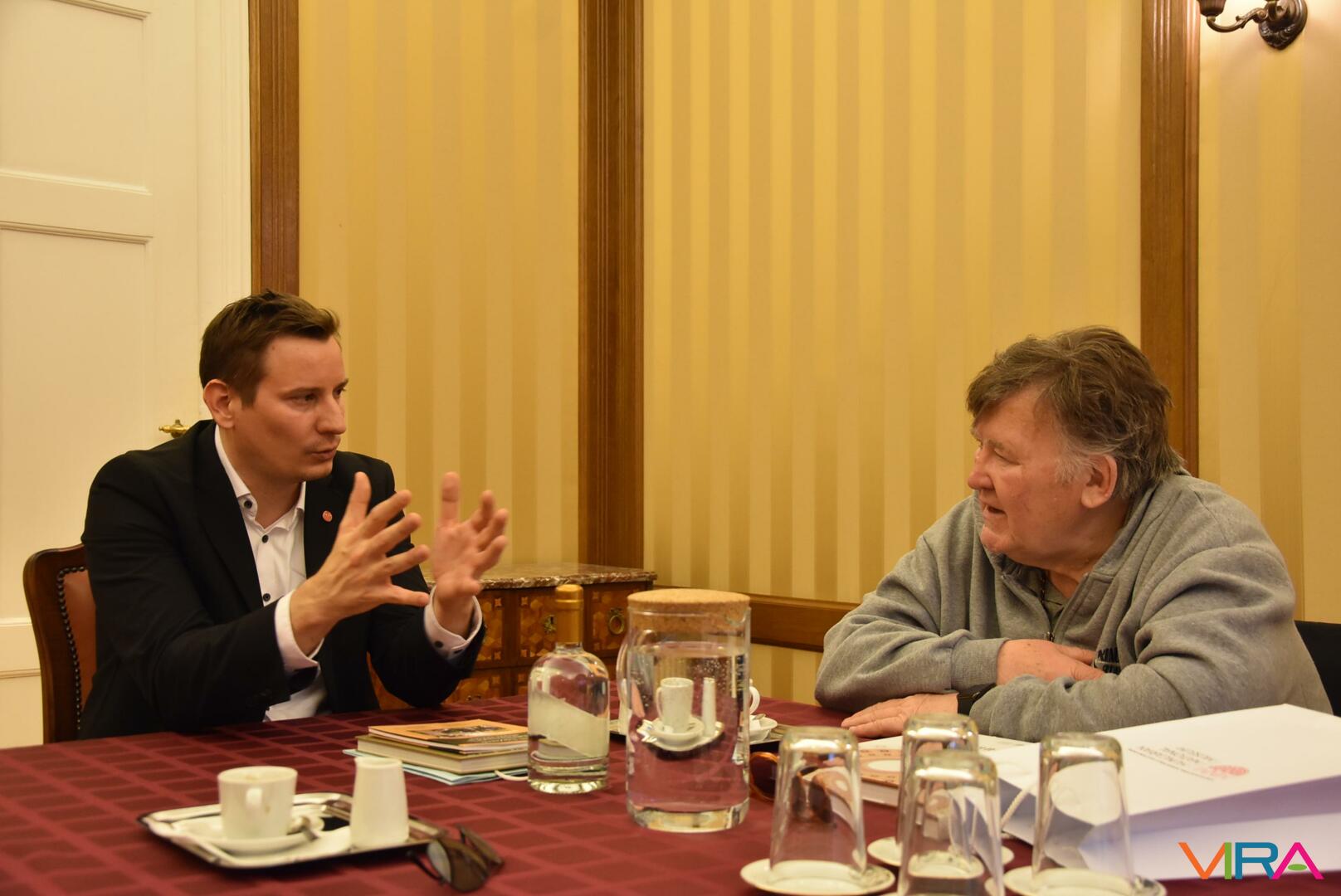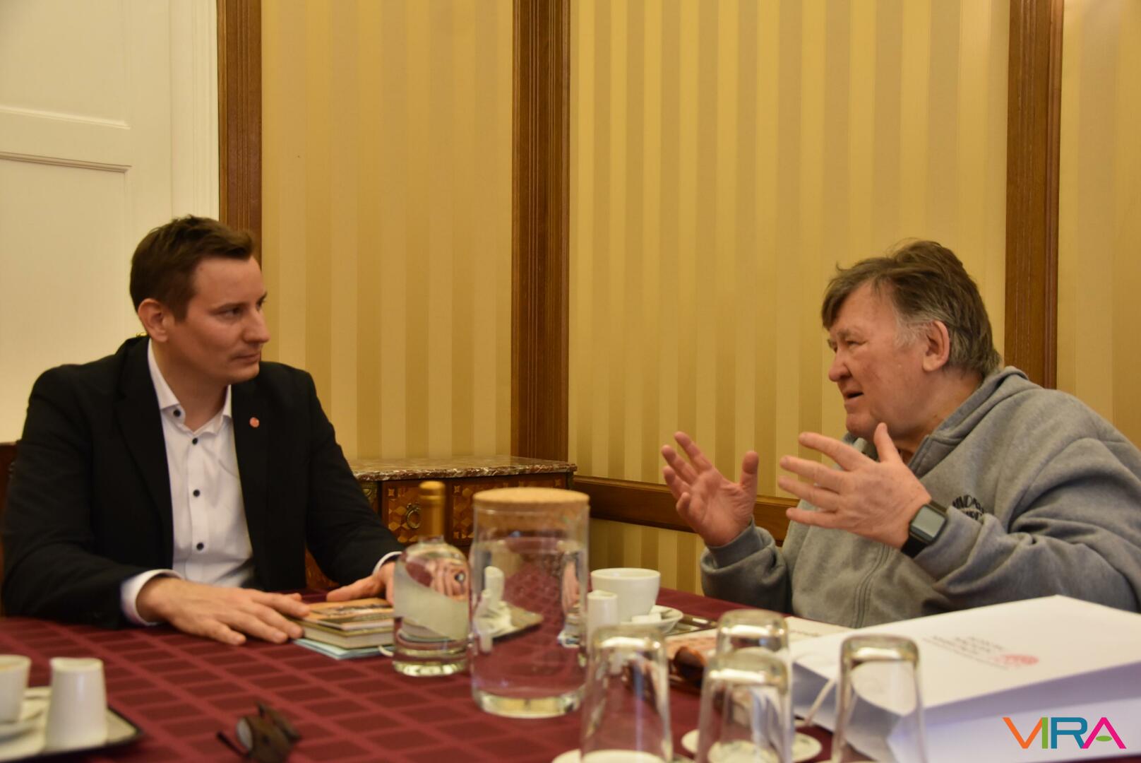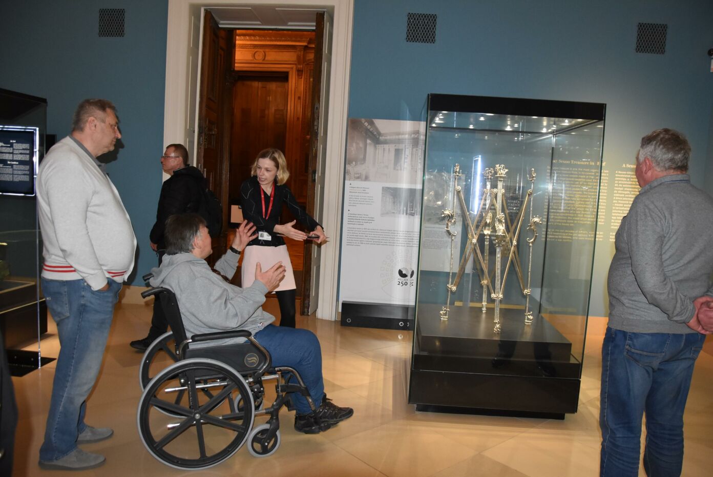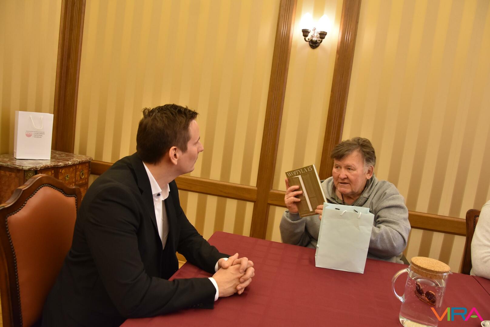 A bensőséges hangulatú megbeszélést tárlatlátogatás követte, melynek során legféltettebb nemzeti ereklyéink néhány darabja, nevezetesen az évezredes magyar koronázási palást és a világhírű Seuso-kincs tárult a Wojtyla Barátság Központ küldöttsége elé.