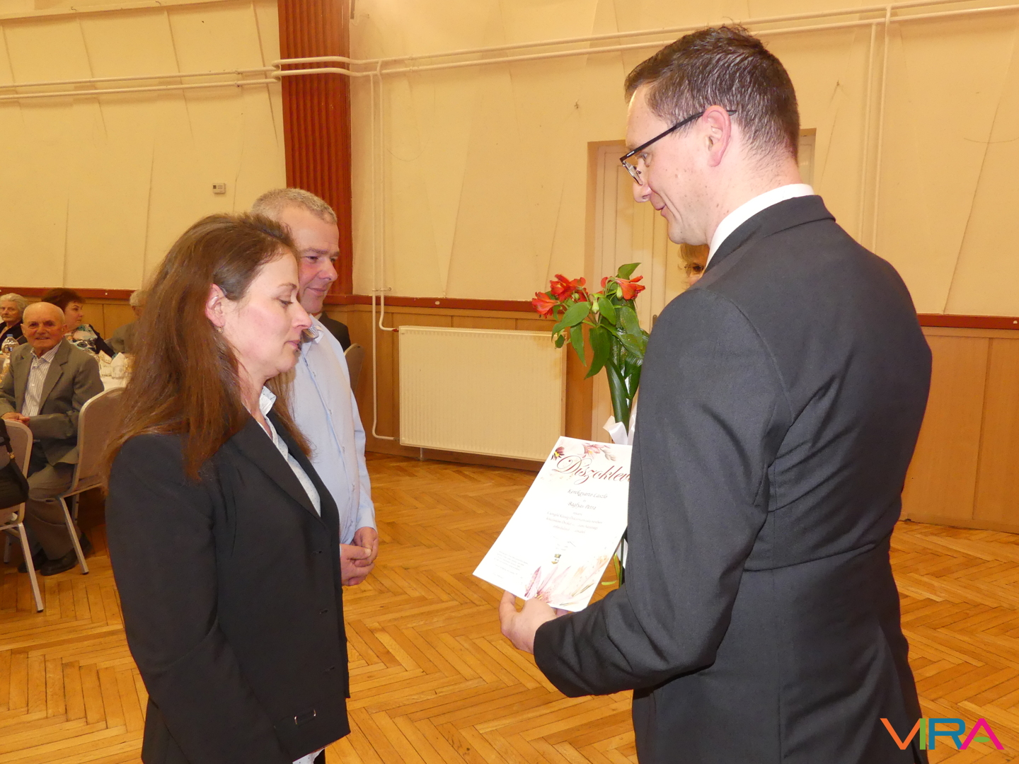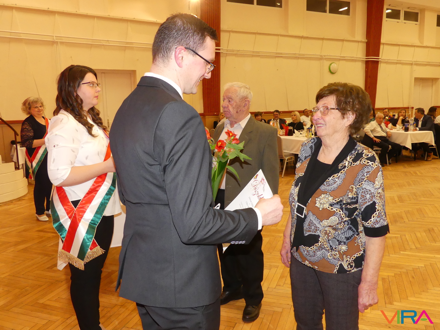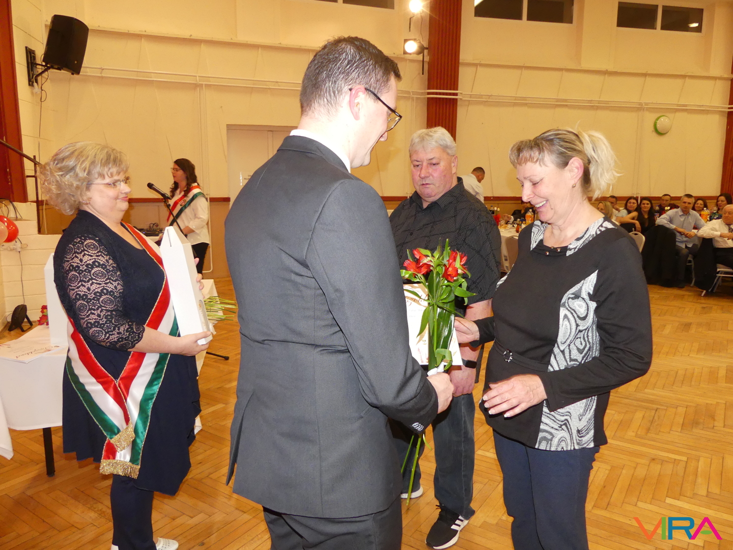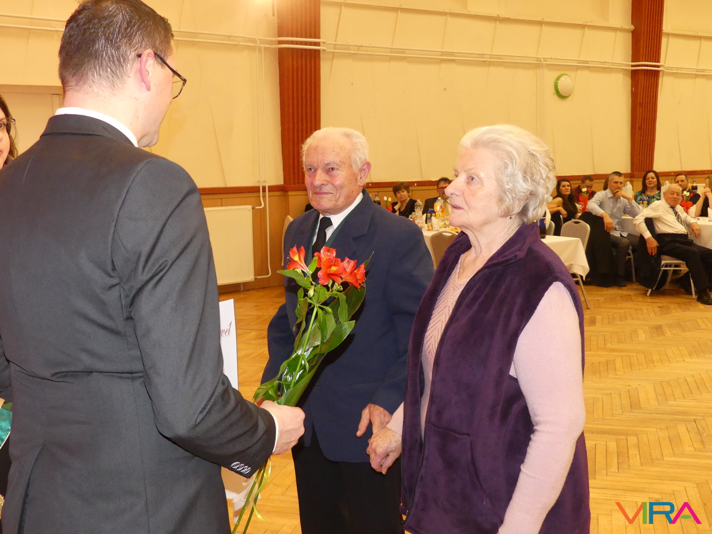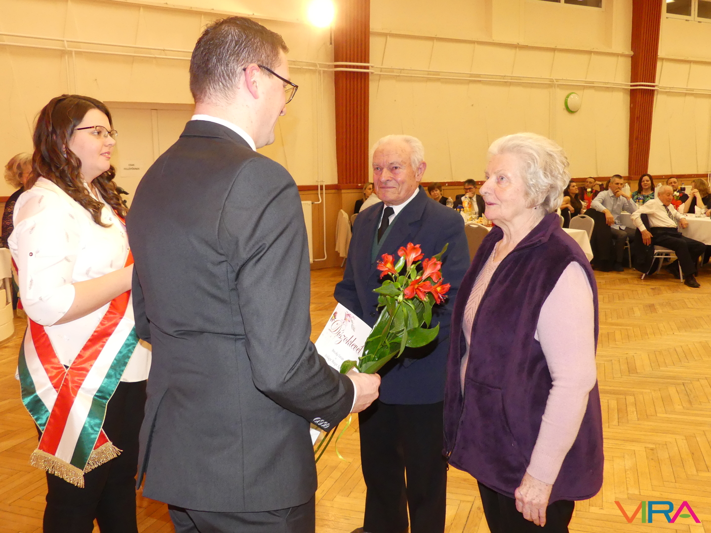 A húszévnyi házasság a porcelánhoz hasonlóan különleges, de törékeny, a huszonöt fényes és időtálló, mint az ezüst, a harmincadik a gyöngysorhoz hasonló füzér, mely szeretetből, türelemből és megértésből formált, a harmincöt a korallhoz hasonló, a negyvenedik a rubin hű ragyogását tükrözi, a negyvenötödik a zafír bölcs kékjét, az ötvenedik az arany fényességét idézi. Az ötvenöt éve házasok az állandóság és a remény smaragdszínében pompáznak, a gyémánt mint a legcsillogóbb és legerősebb drágakő a hatvanadik házassági évfordulóját ünneplő párok jelképe. Az ünnepeltek meghatottan fogadták a jelképes ajándékokat: a feleségek egy-egy szál virágot, a férjek egy-egy üveg csengődi bort. A jubiláló párok díszoklevelén Johann Wolfgang von Goethe gondolatai olvashatók:
