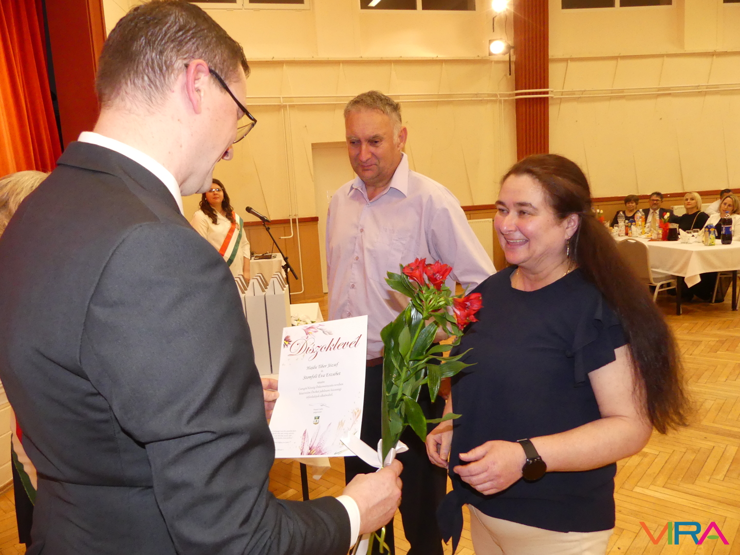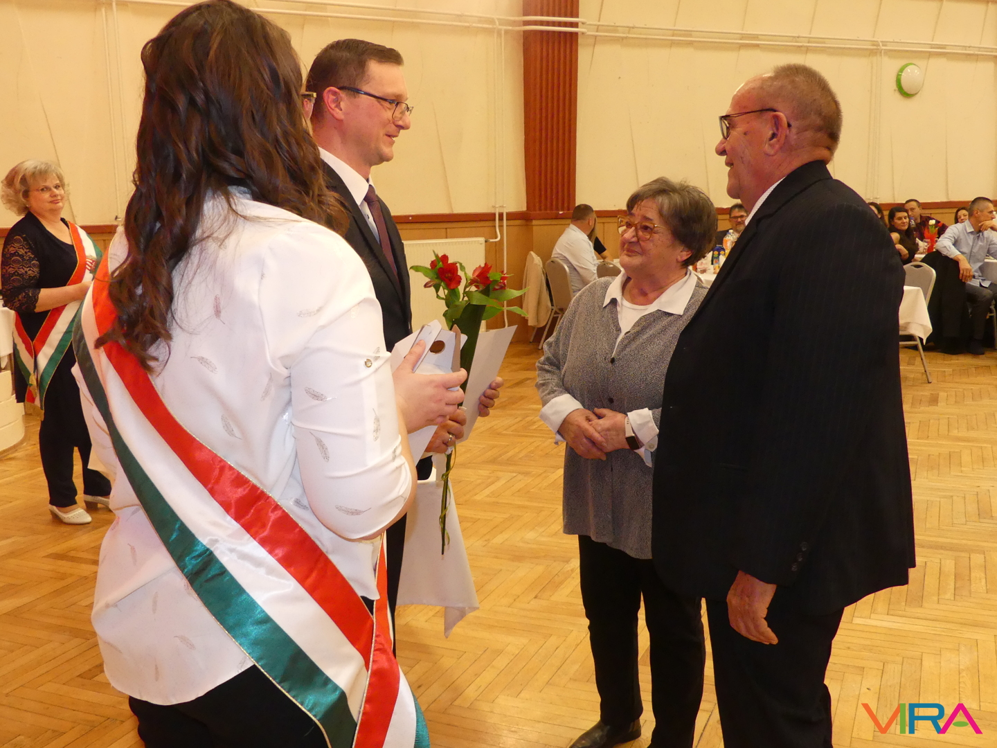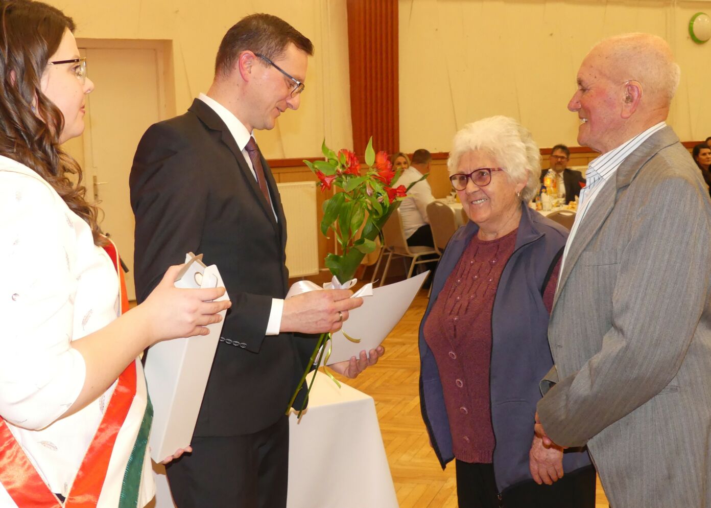 Kastély-Kozma Kata anyakönyvvezető szavaiban kiemelte, hogy a házasságban, miként az életben általában is a legfontosabb dolgok: hallgatni, megérteni és mosolyogni. Egy ilyen ünnep emlékeztet arra, hogy „mennyi mindenen segítette át Önöket a türelem, a megértés, a szeretet, a féltő aggodalom” – fogalmazott. A fogadalom megerősítését követően Poreleczki Istvánné anyakönyvvezetővel együtt ismertették a mérföldkövek jelentőségét.