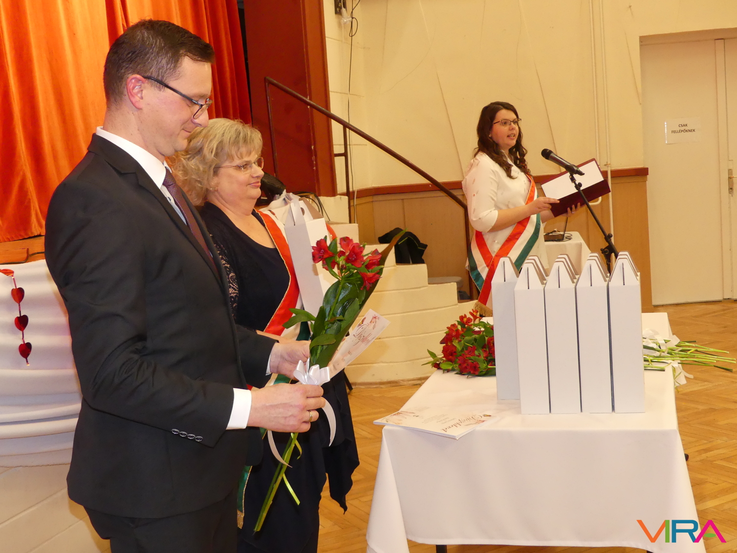 Szeretet, tisztelet, hűség, bizalom, megértés, szenvedély, öröm, megbocsátás, türelem. Ez a néhány, a boldog házasság kulcsait megjelenítő kifejezés is része volt a romantikát és a közelgő tavaszt idéző díszletnek a művelődési házban, mely otthont adott a kerek házassági évfordulójukat ünneplő pároknak.