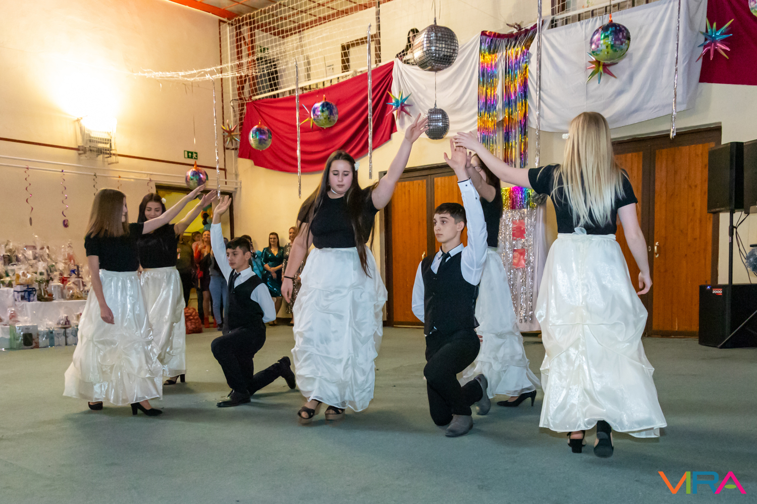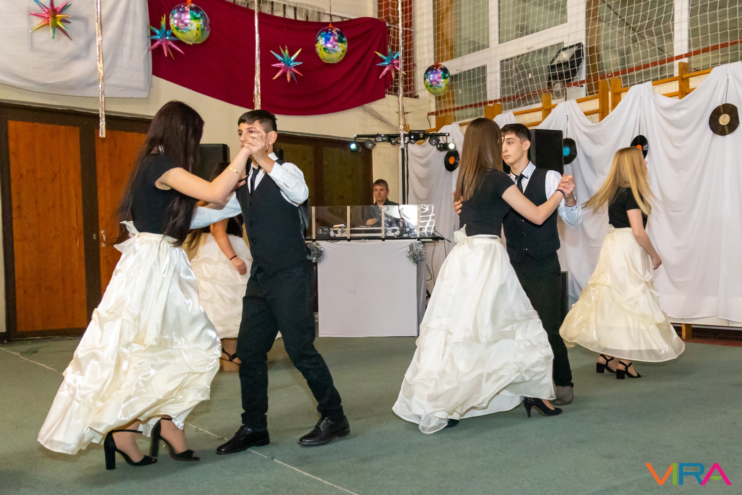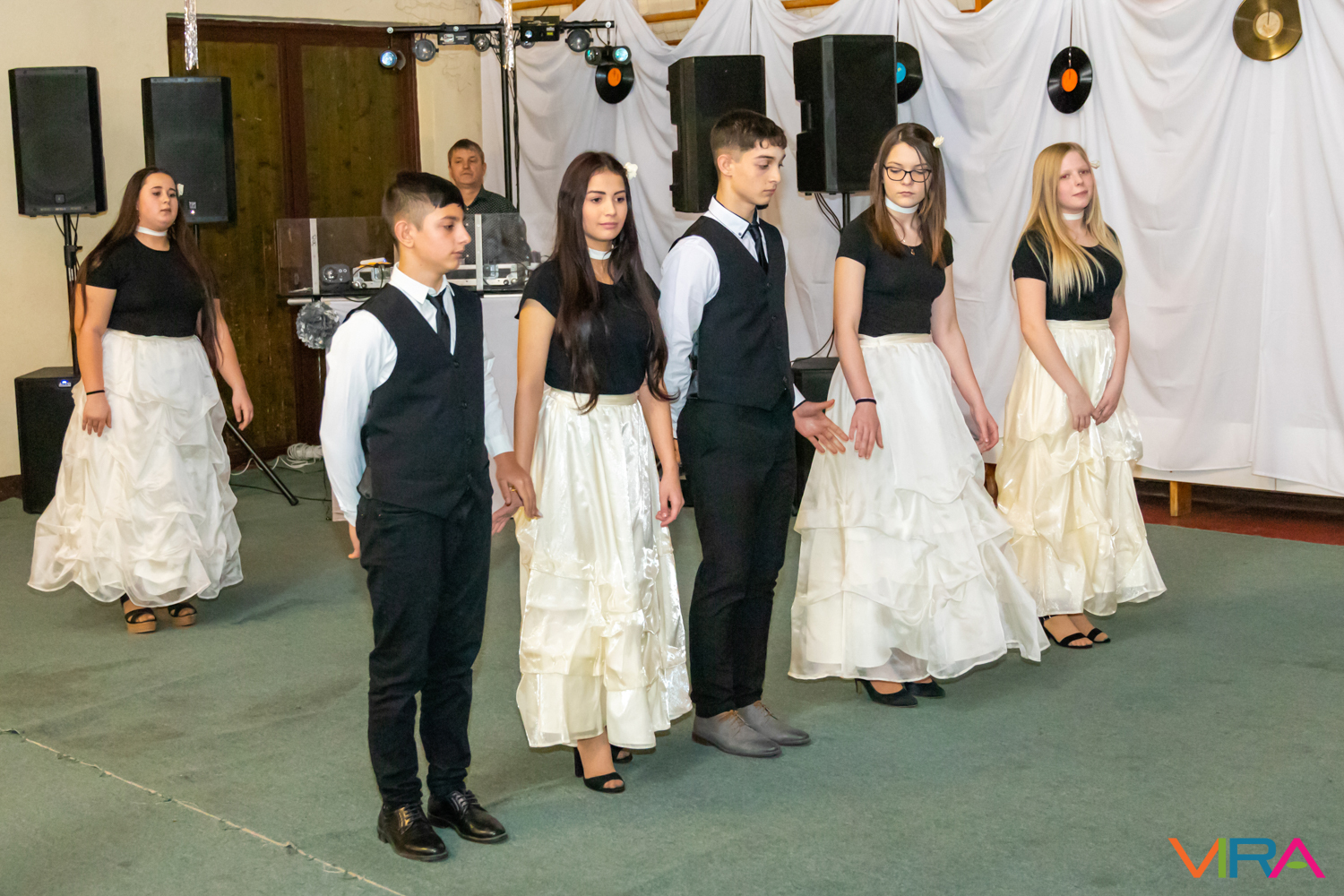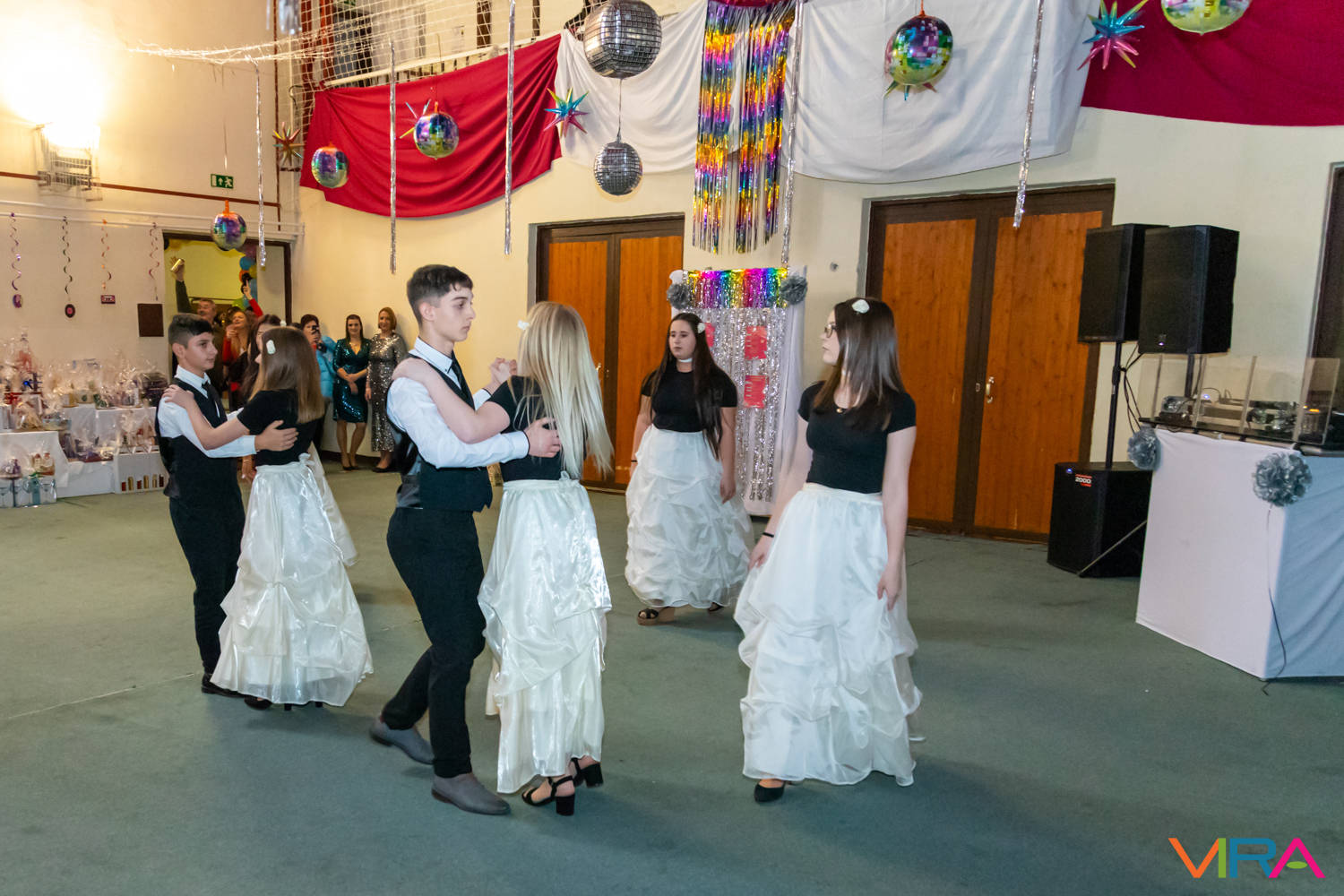 Az est a 8. osztályos tanulók táncával kezdődött, akiket Hirsch Éva tanítónő készített fel, majd vacsora után a szülőkből és pedagógusokból erre az alkalomra összeállt csapat vidám táncos műsorával szórakoztatta a közönséget: Dévényi Tibi bácsi „Három kívánsága” elevenedett meg, aki sorban hívta be a diszkó sztárfellépőit.