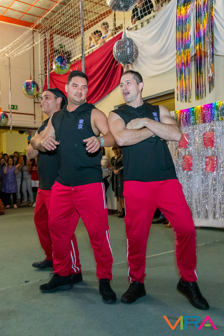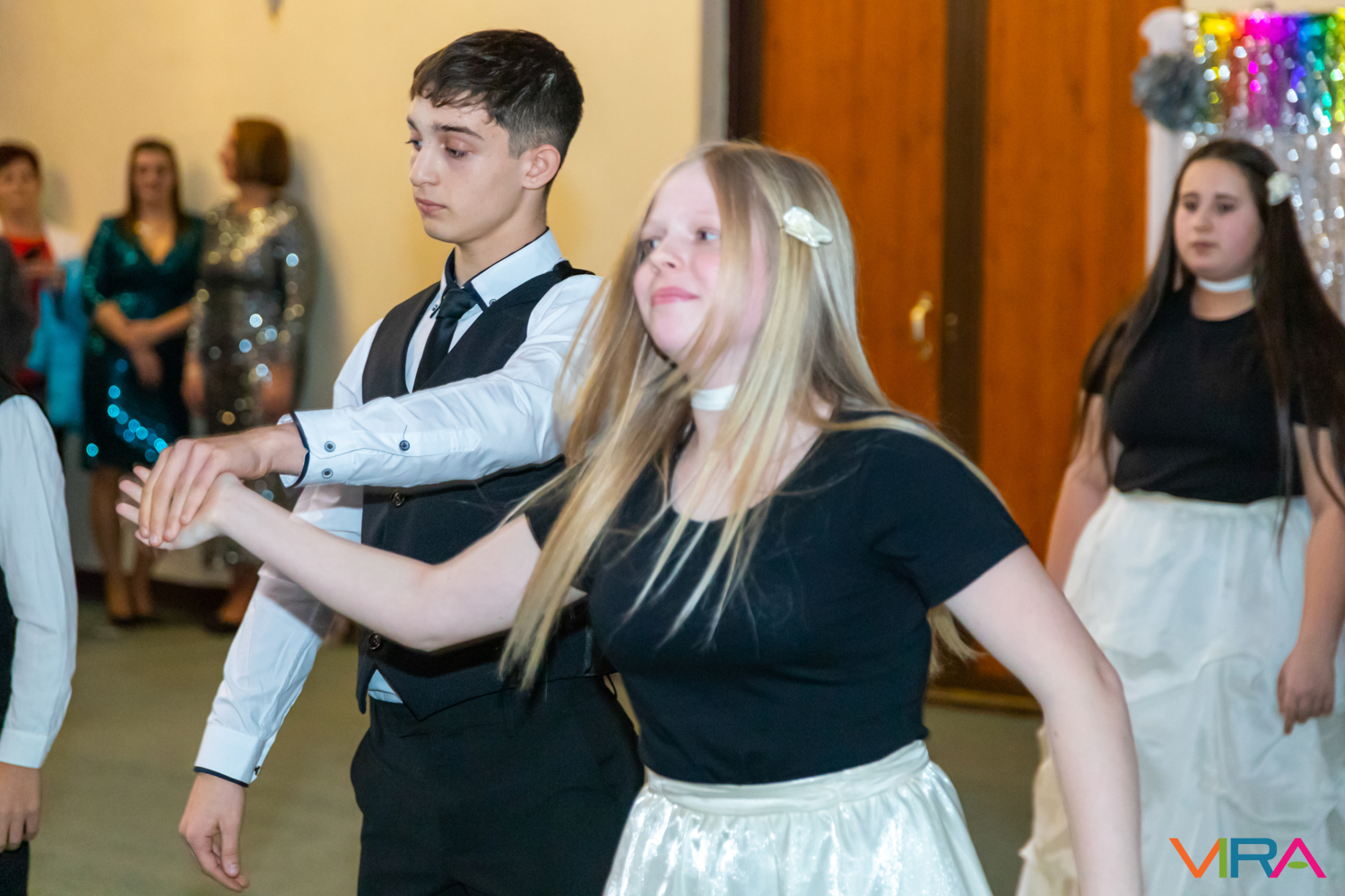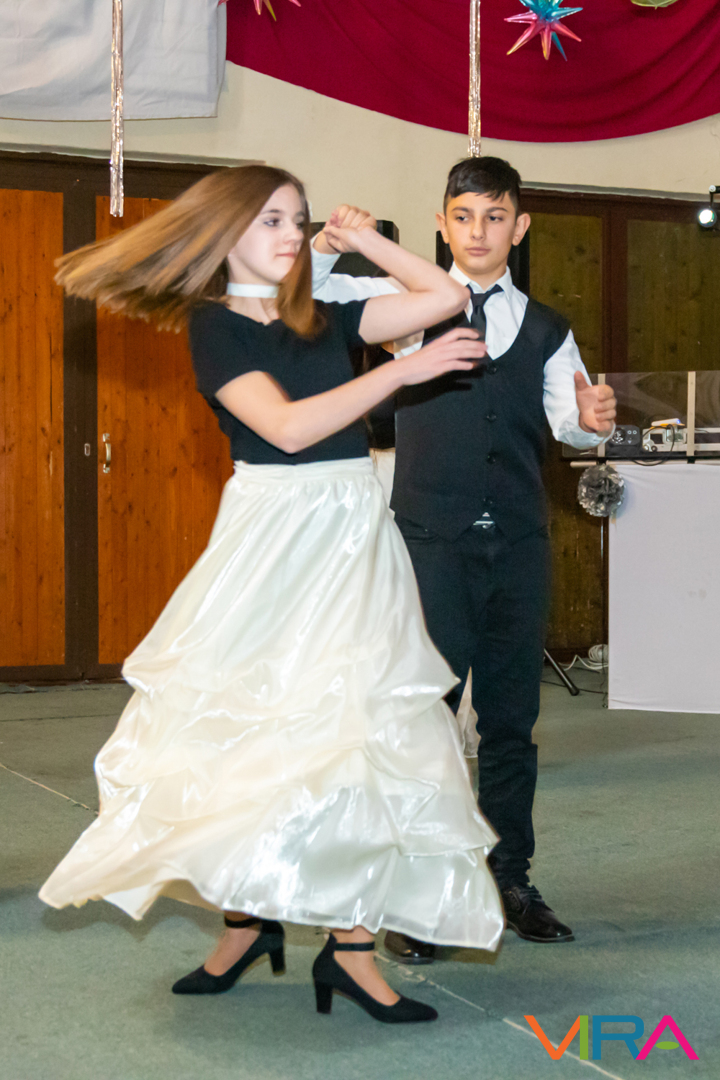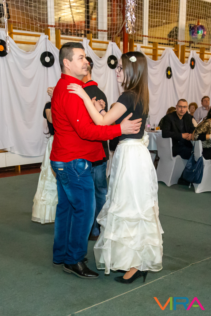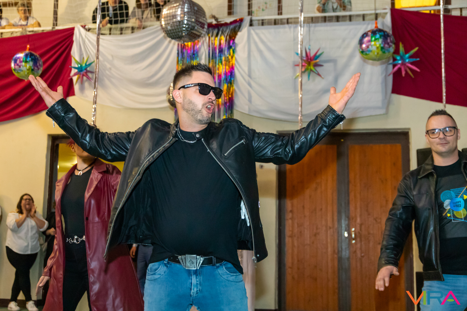 Az est a 8. osztályos tanulók táncával kezdődött, akiket Hirsch Éva tanítónő készített fel, majd vacsora után a szülőkből és pedagógusokból erre az alkalomra összeállt csapat vidám táncos műsorával szórakoztatta a közönséget: Dévényi Tibi bácsi „Három kívánsága” elevenedett meg, aki sorban hívta be a diszkó sztárfellépőit.