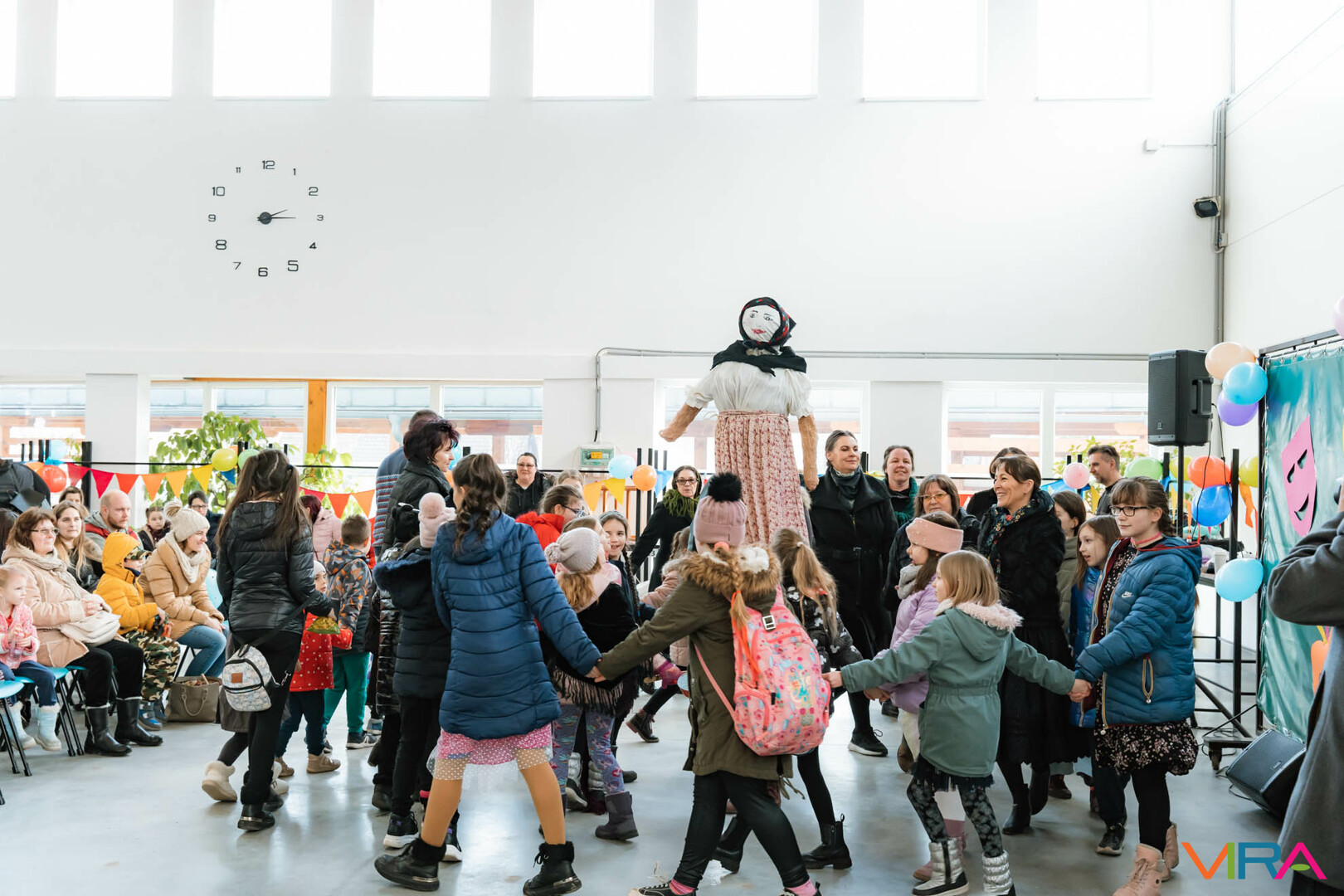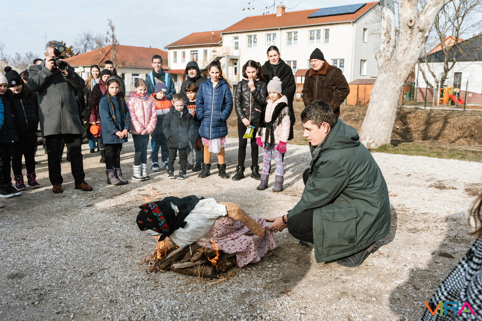 A téltemetés hagyományos, régi ünnepét a Sárfehér Néptáncosok elhozták nekünk is. A gyerekek elkészítették a kiszebábot, és különféle zajkeltő szerszámokkal vonultak a Piac Csarnokhoz, majd kivonultak a csarnok melletti parkolóba miközben télűző rigmusokat kiabáltak. Végül elégetésre került a kiszebáb, ezzel is elűzve a telet.
