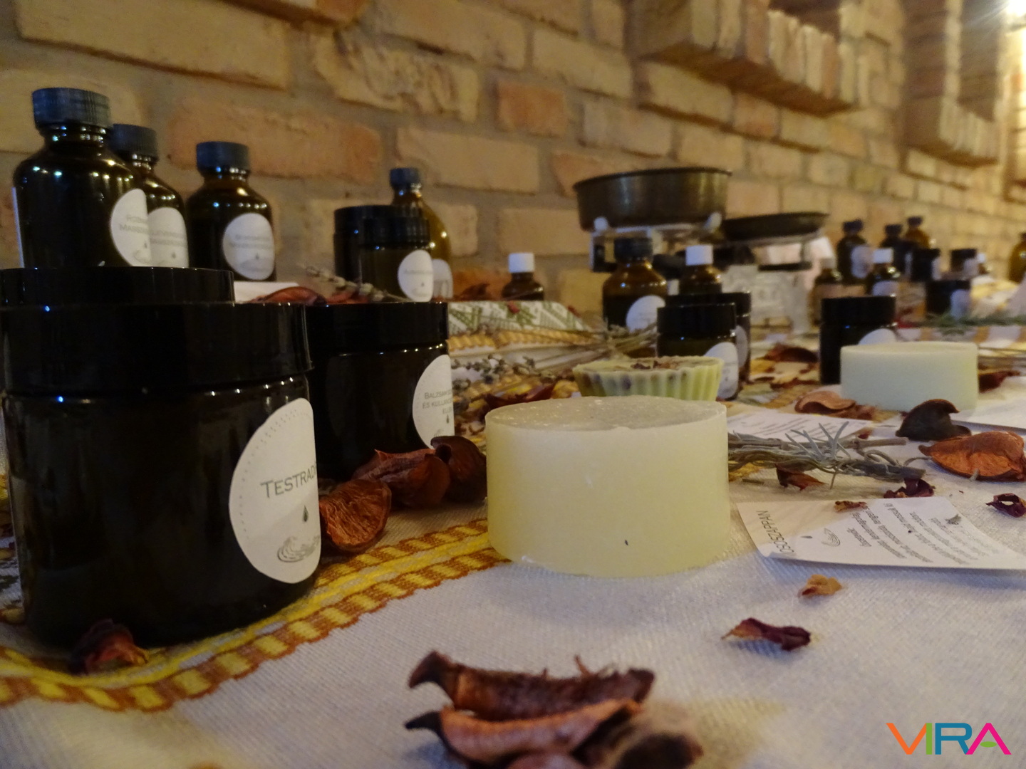A kiállítás megtekintése mellett a látogatók kendermagolajos kétfázisú arctisztítót készíthettek a tagokkal.