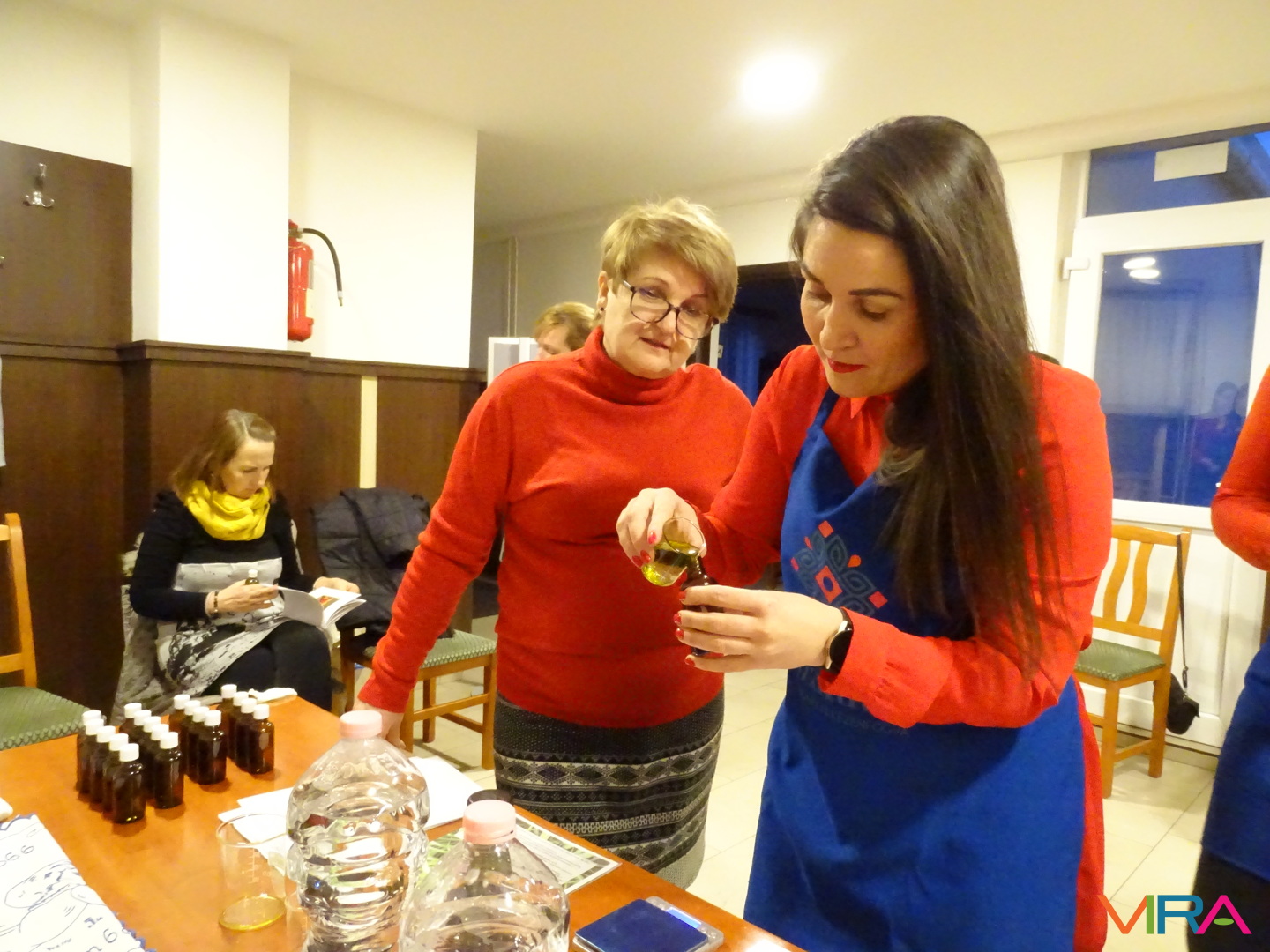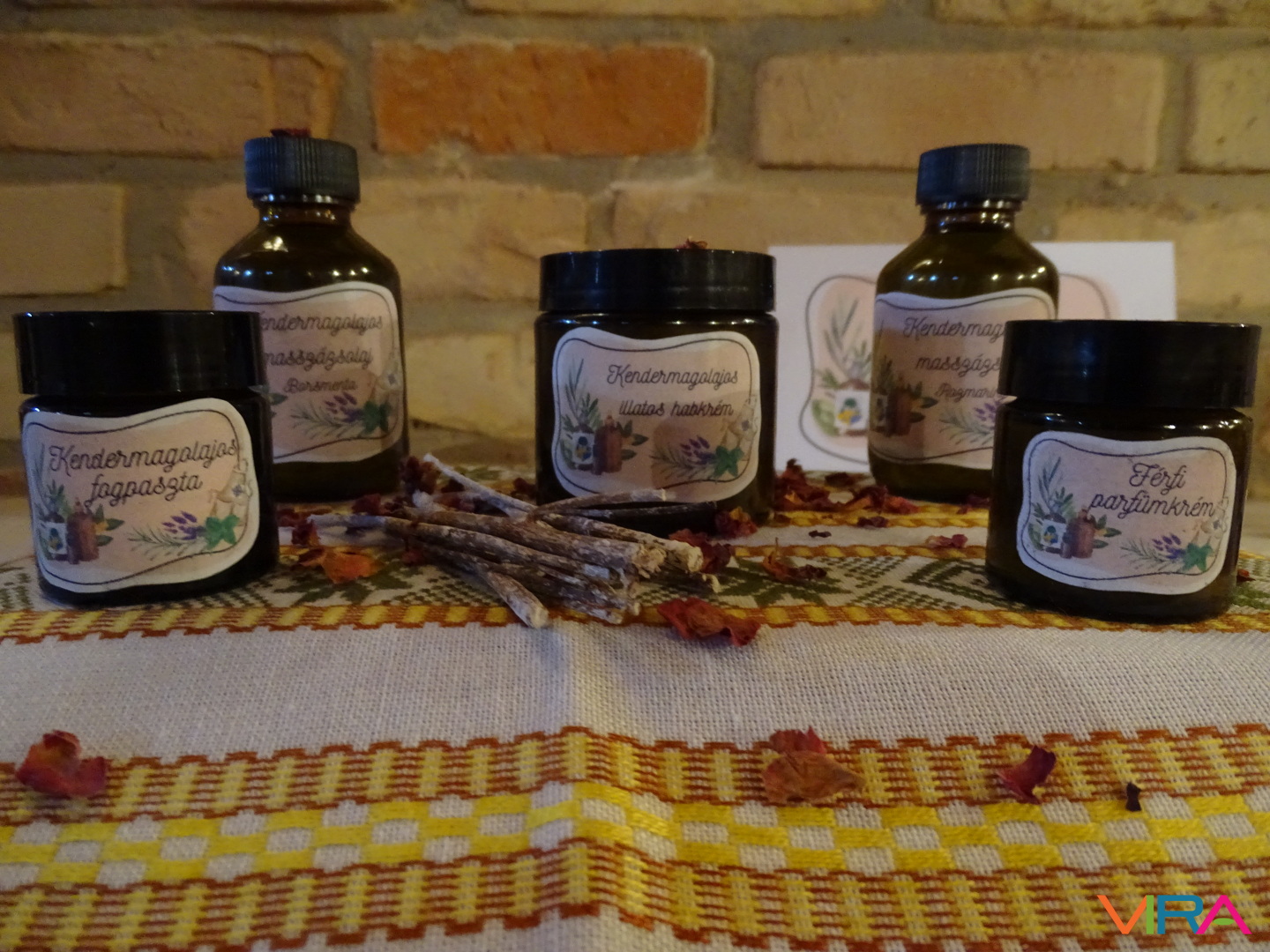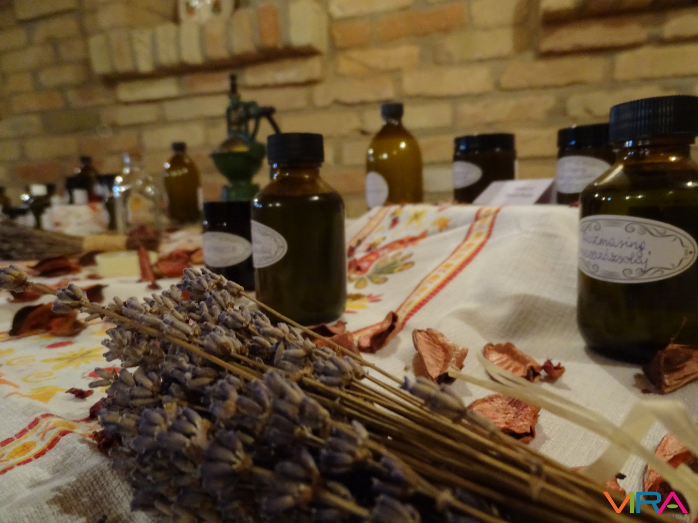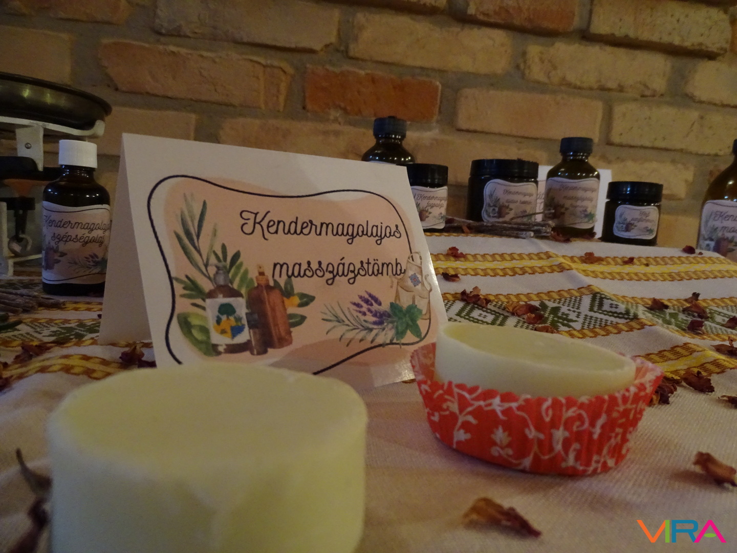 A kiállítás megtekintése mellett a látogatók kendermagolajos kétfázisú arctisztítót készíthettek a tagokkal.