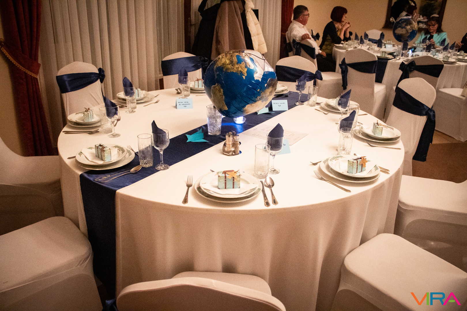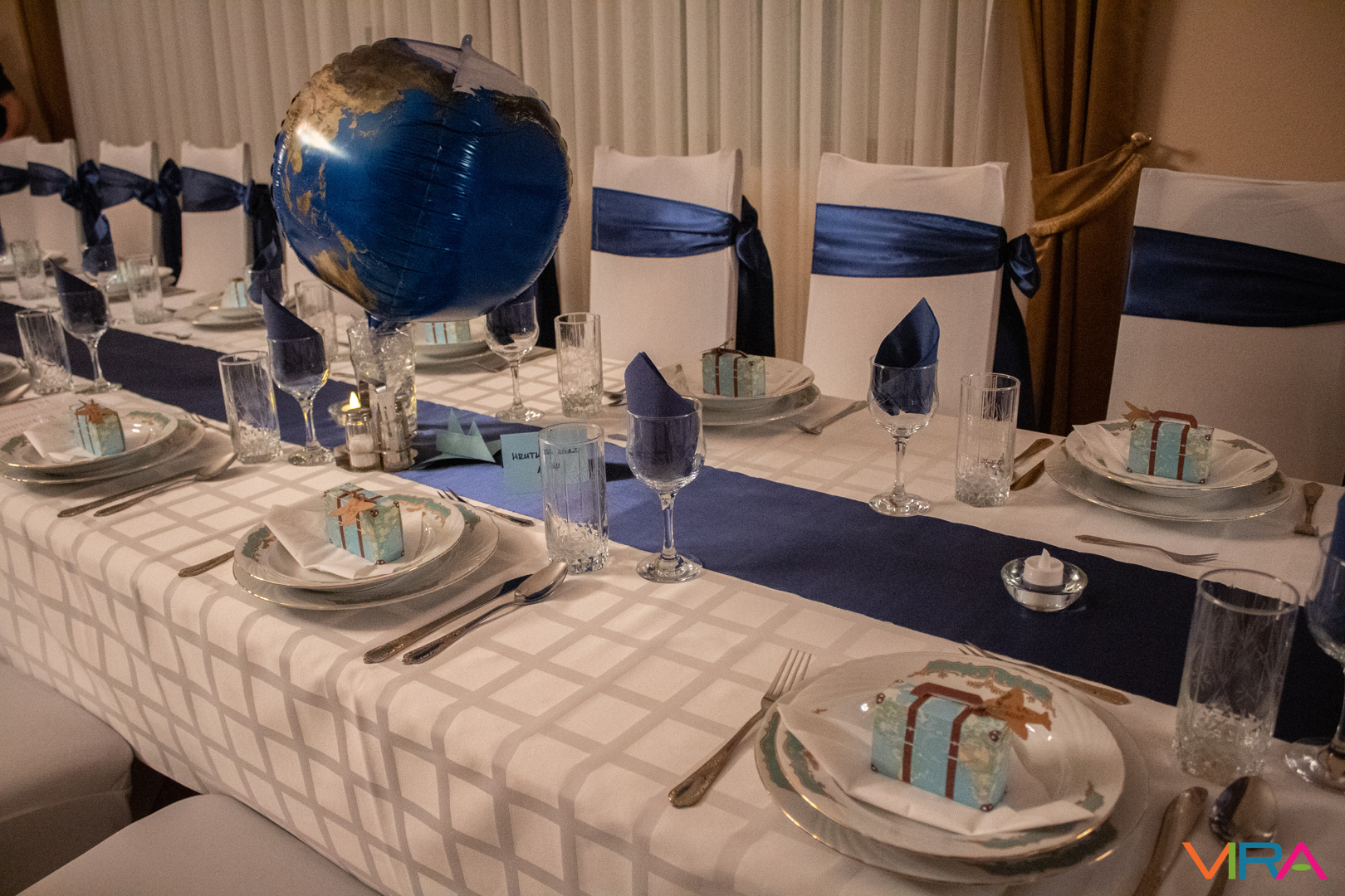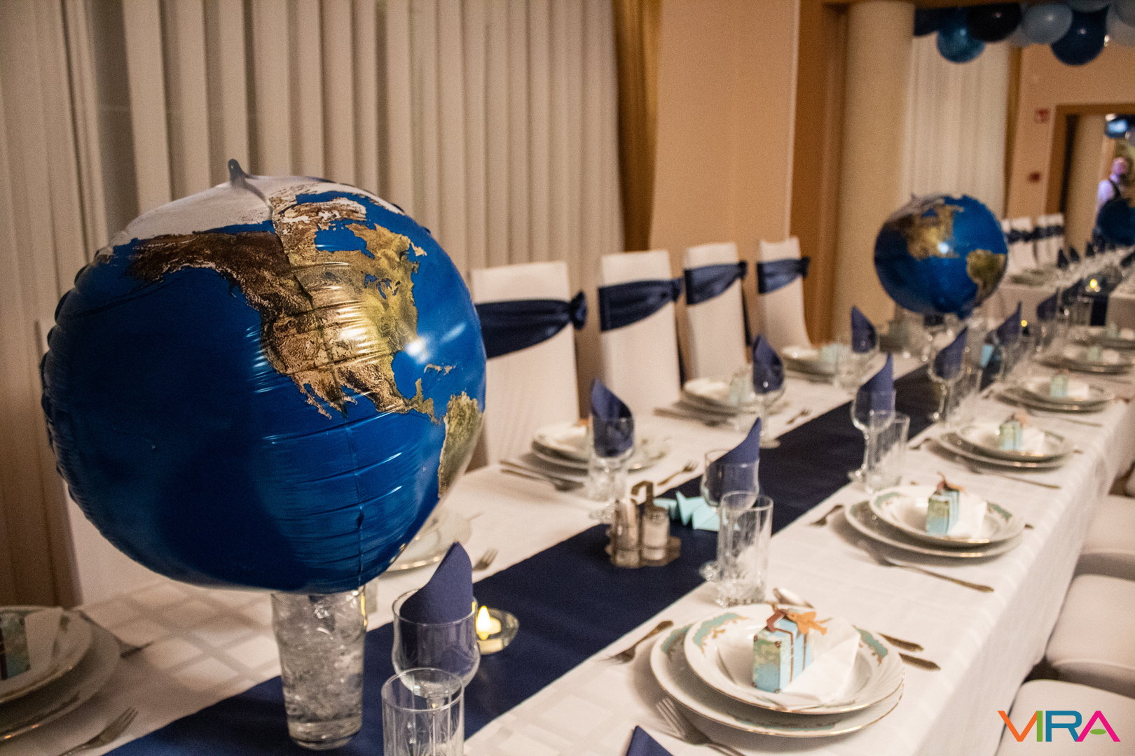 földgömbökben, kis bőröndökben, valamint felhőkben pompázott. A vendégek 18