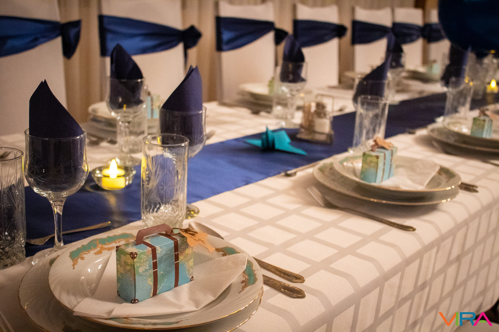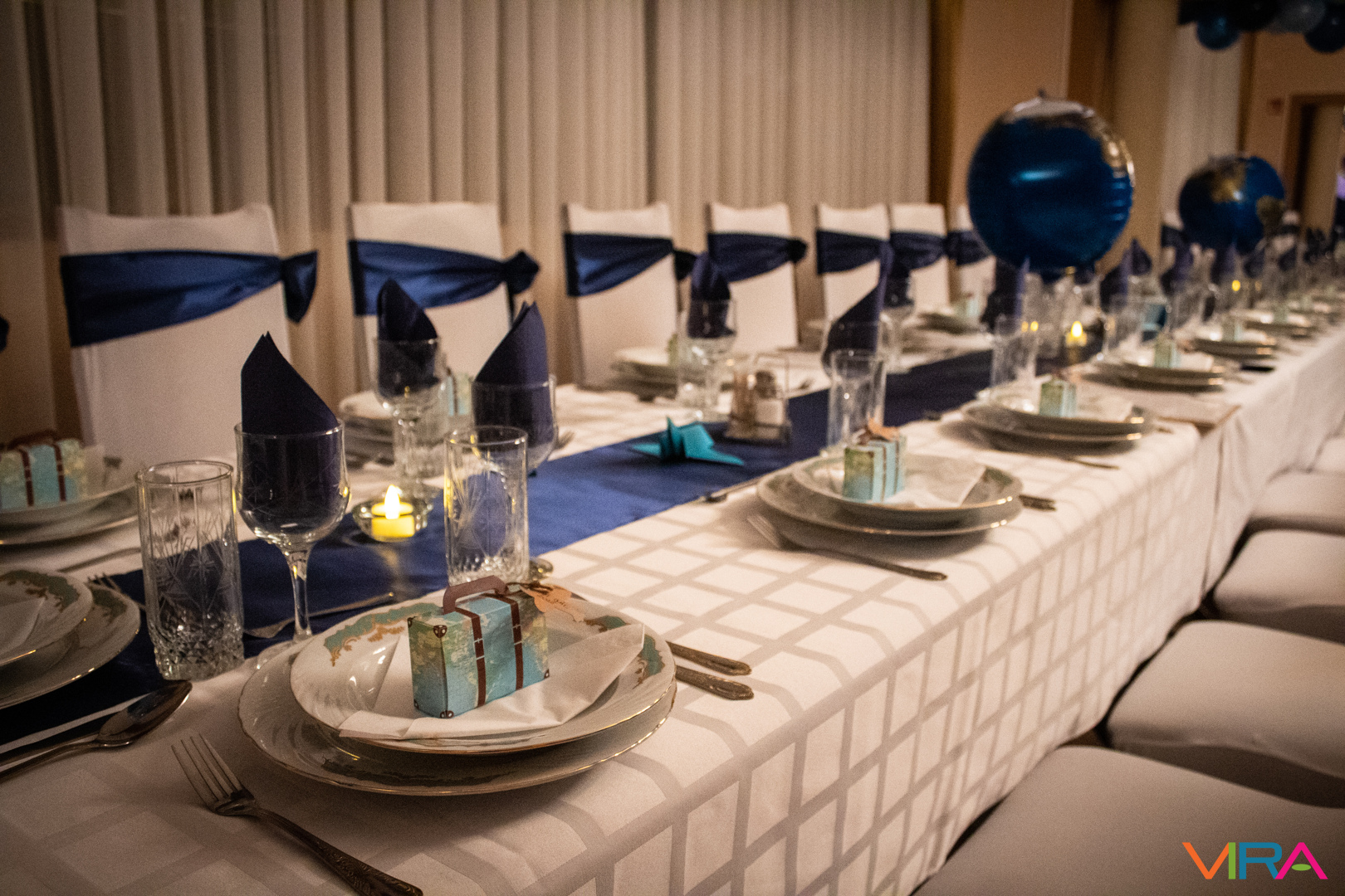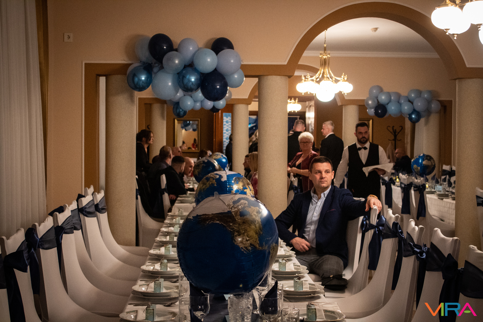 földgömbökben, kis bőröndökben, valamint felhőkben pompázott. A vendégek 18