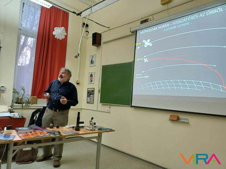 2025. február 21-én 17 órától Dr. Hegedűs Tibor, a Bajai Obszervatórium igazgatója, emellett az SZTE csillagász hallgatóinak oktatója tartott előadást „Ami az égből a fejünkre hullhat (műholdak ezrei fölöttünk)” címmel a KEVI Petőfi Sándor Gimnáziumában.