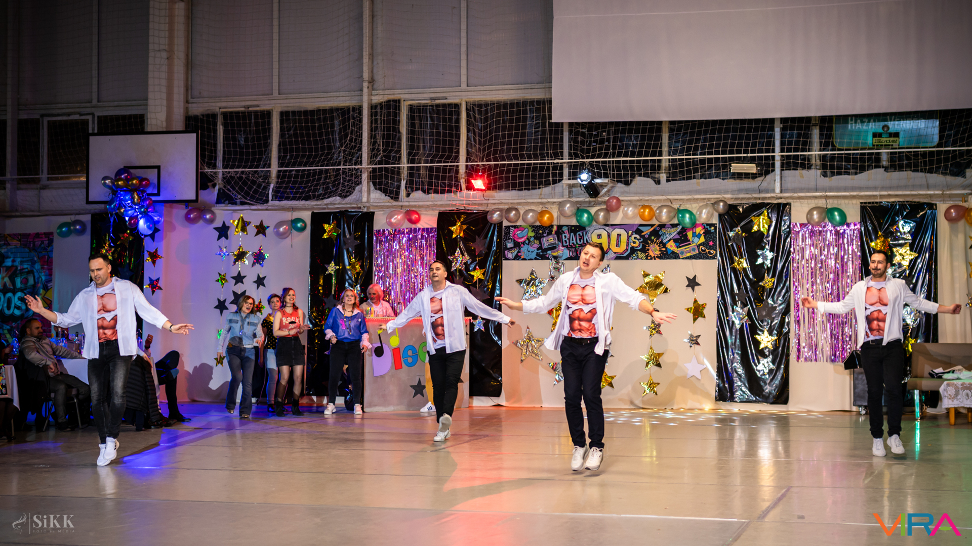Az este fénypontja minden évben a szülők és a pedagógusok műsora, mely a témához kapcsolódóan ezúttal a legendás keceli diszkóba repítette vissza a résztvevőket. Neves DJ pörgette a bulit, megjelent a kockahasú fiúkból álló Shygys, de felcsendült Lou Bega hatalmas slágere a Mambo No.5 és persze a Spice Girls sem hiányozhatott. A lelkes csapat által bemutatott táncokat ezúttal is az iskola egykori diákja, Dulai György koreografálta.