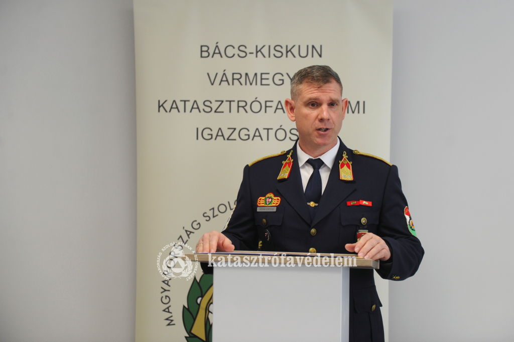 Az ünnepséget Huszár Tibor tűzoltó dandártábornok, a Bács-Kiskun Vármegyei Katasztrófavédelmi Igazgatóság igazgatója nyitotta meg és köszöntötte a résztvevőket.
