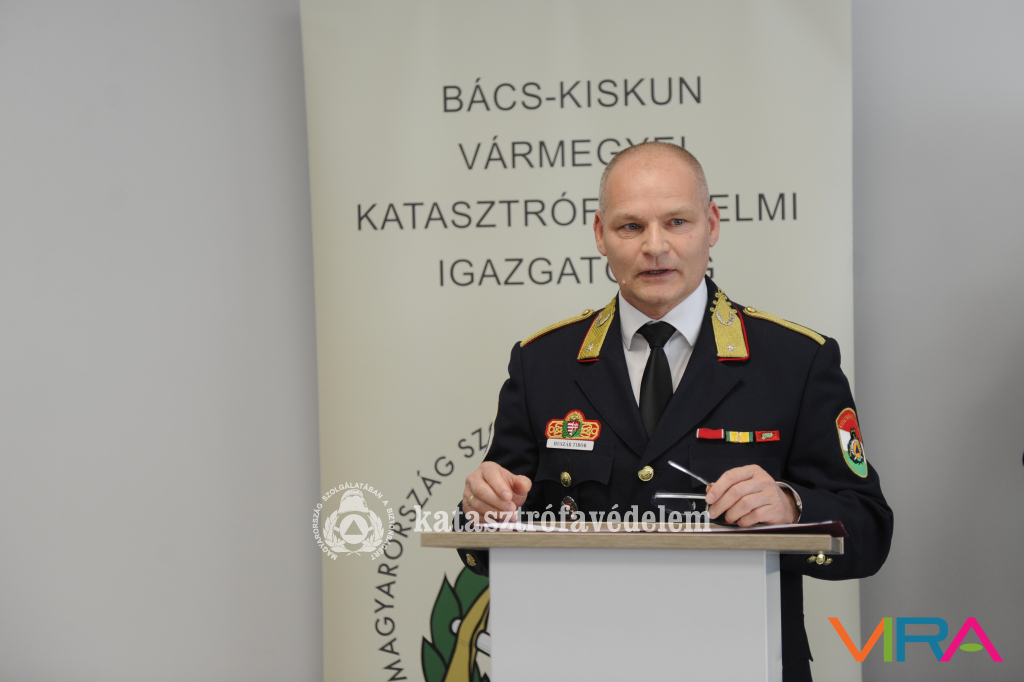 Az ünnepséget Huszár Tibor tűzoltó dandártábornok, a Bács-Kiskun Vármegyei Katasztrófavédelmi Igazgatóság igazgatója nyitotta meg és köszöntötte a résztvevőket.