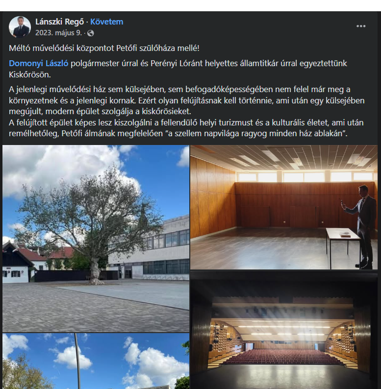 Domonyi László polgármester Facebook közleményében lakossági fórumot hirdetett meg a Petőfi Sándor Művelődési Központba, az előkészítés alatt álló új Petőfi Kulturális Központtal kapcsolatban.