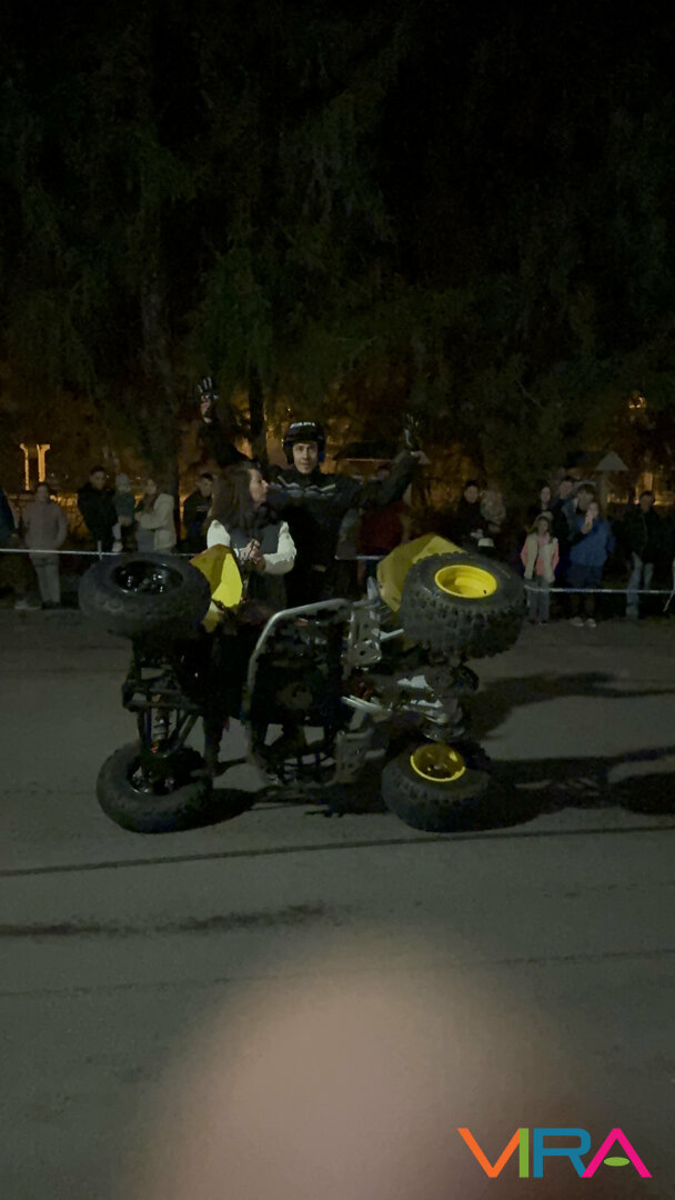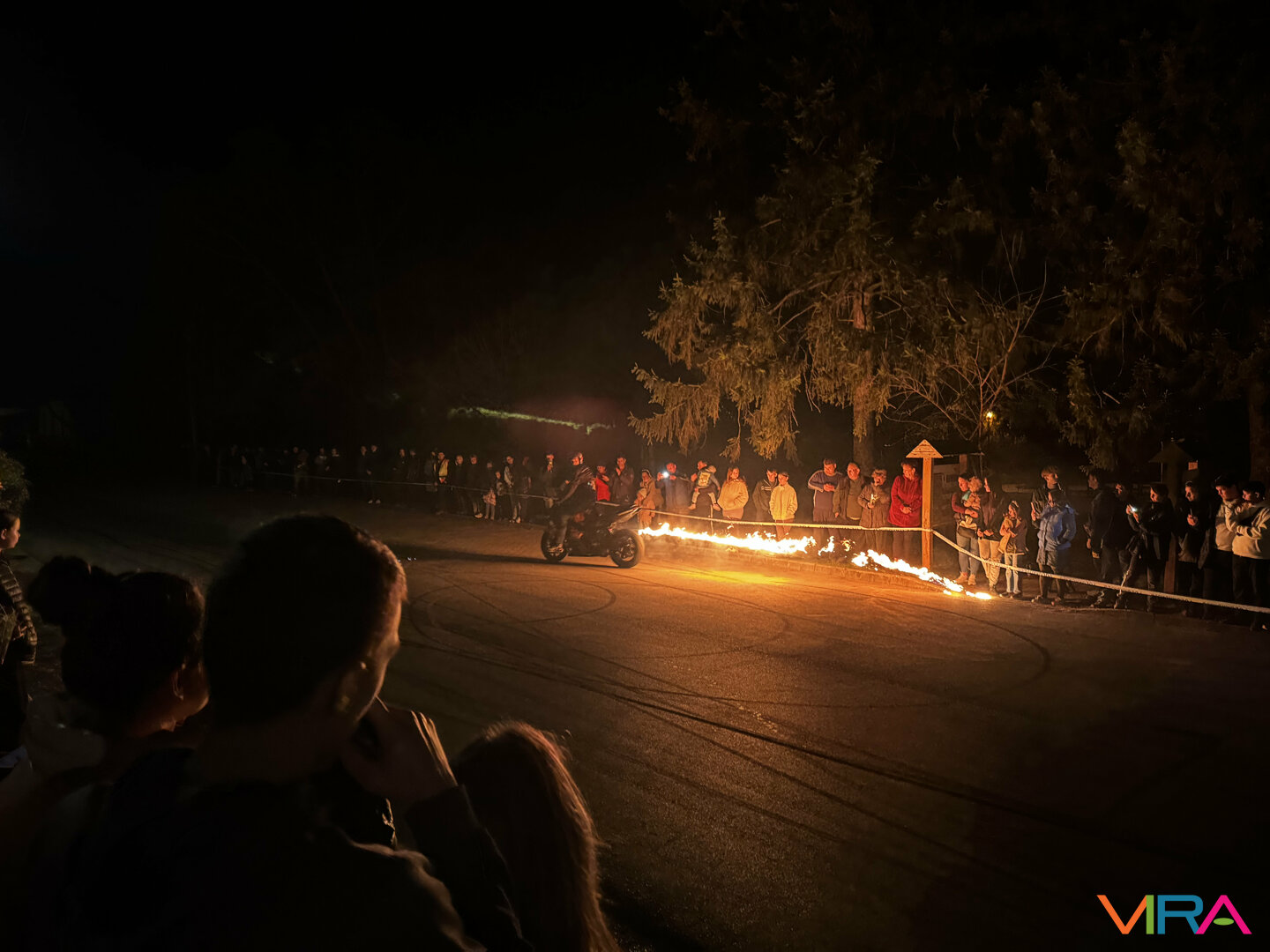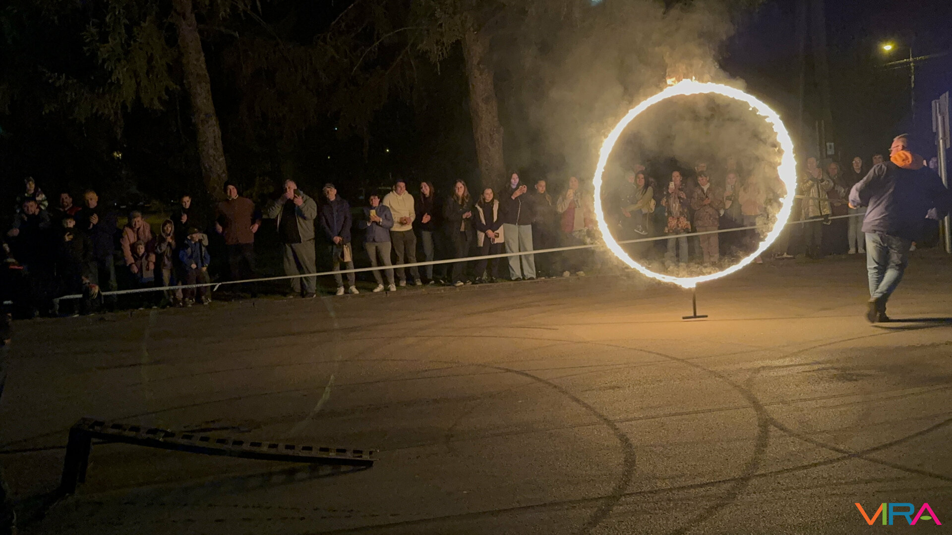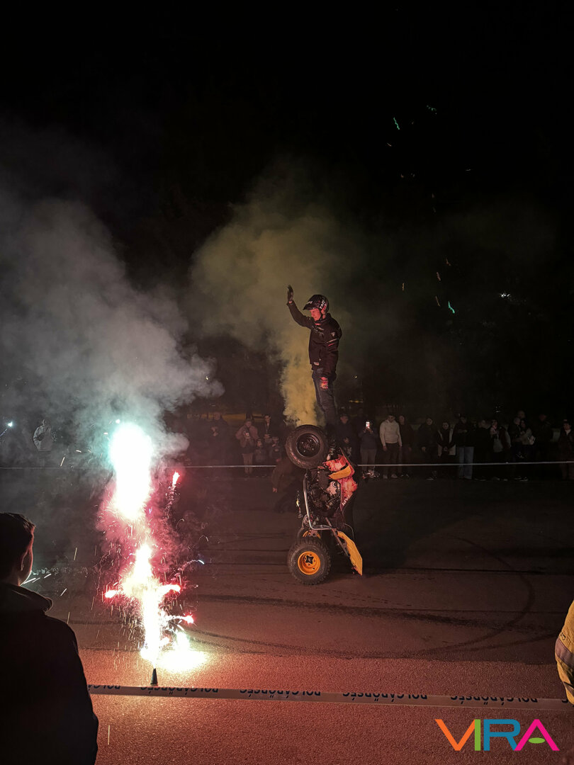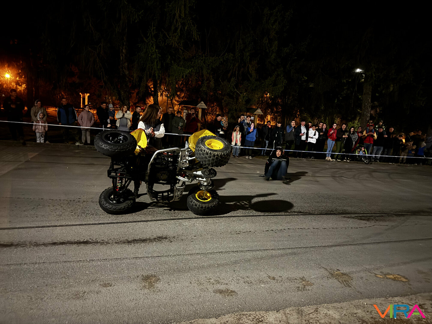 Az estét Petz János polgármester köszöntője nyitotta meg, majd felkonferálta Tápai Tamás előadását. A látványos produkciót megelőzően a szalmabáb elégetésére került sor a rendezvényterület udvarán, majd következett az est fénypontja. A Vasút utca zsivaját kipufogó durrogás törte meg, tüzes mutatványokkal színesítve azt. A kaszkadőr motoros és quados attrakciókkal ejtette ámulatba a nézőket, egy-egy lelkes érdeklődőt bevonva a trükkökhöz.