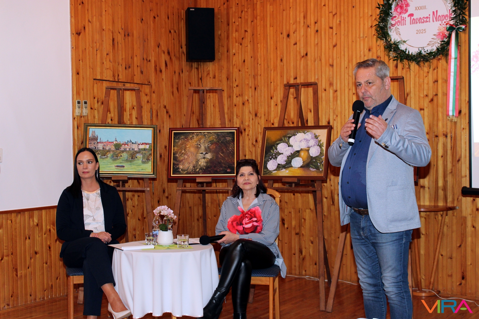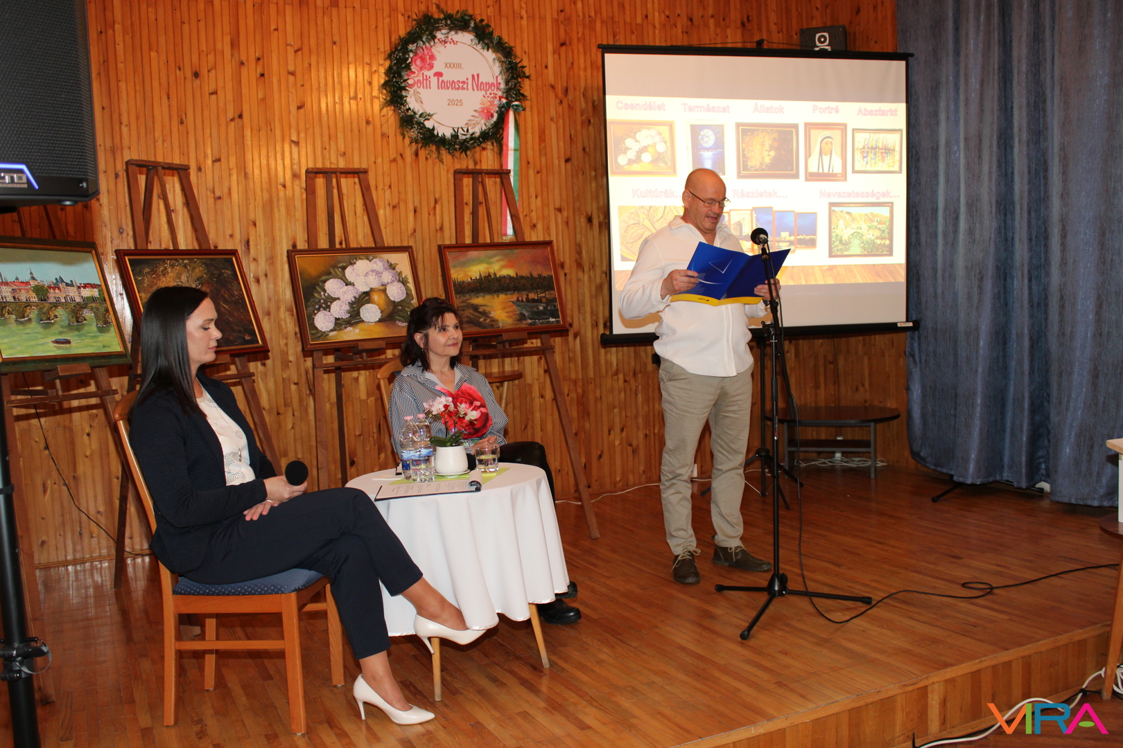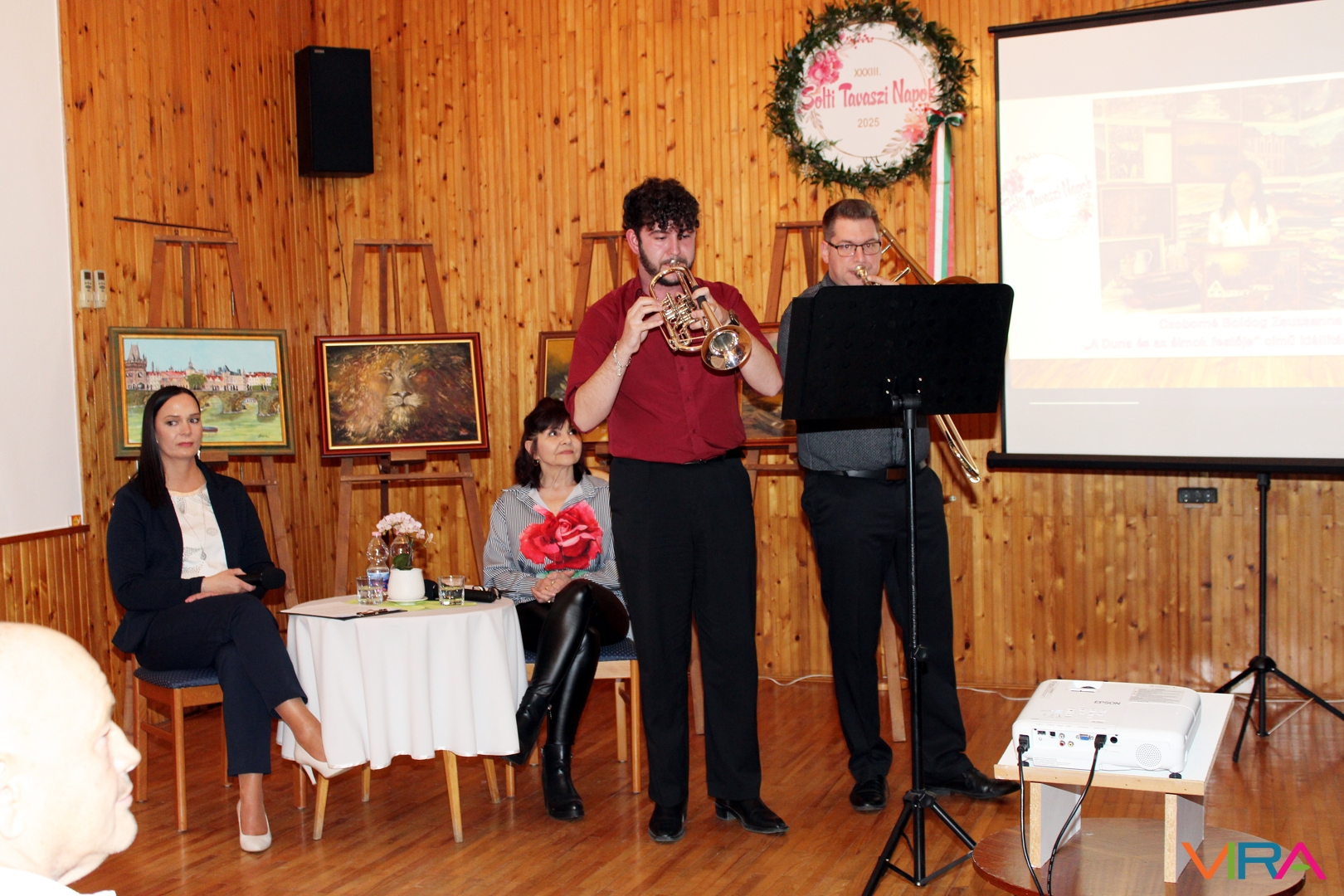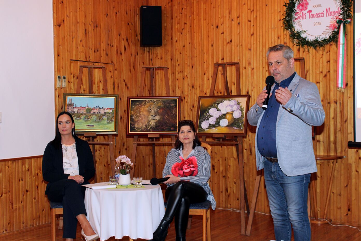 Czoborné Boldog Zsuzsanna „A Duna és az álmok festője” című kiállítását 2025. március 10-én nyitottuk meg a XXXIII. Solti Tavaszi Napok keretében Németh István polgármester úr köszöntő szavait követően. A megnyitón közreműködtek a Művészeti Iskola zenepedagógusai Nagy Máté és Patyi Gábor, továbbá Ballai László vizuális kultúra tanár egy alkalomhoz illő Aranyosi Ervin verssel köszöntötte a művésznőt.