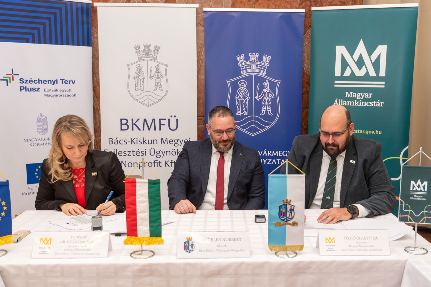 A TOP Plusz program keretében 120 milliárd forintnyi település- és területfejlesztési támogatás hasznosul Bács-Kiskun vármegyében a jelenlegi uniós költségvetési ciklusban. Mint Vedelek Norbert elmondta, a most aláírt támogatási szerződések keretében ebből 4,8 milliárd forint érkezik a településekre 31 pályázati projekt megvalósítására. A támogatói szerződéseket a Magyar Államkincstár részéről a szervezet Bács-Kiskun Vármegyei Igazgatóságának vezetője, Fehérné Dr. Holozsai Nóra, illetve irodavezetője, Dr. Ördögh Attila írták alá.