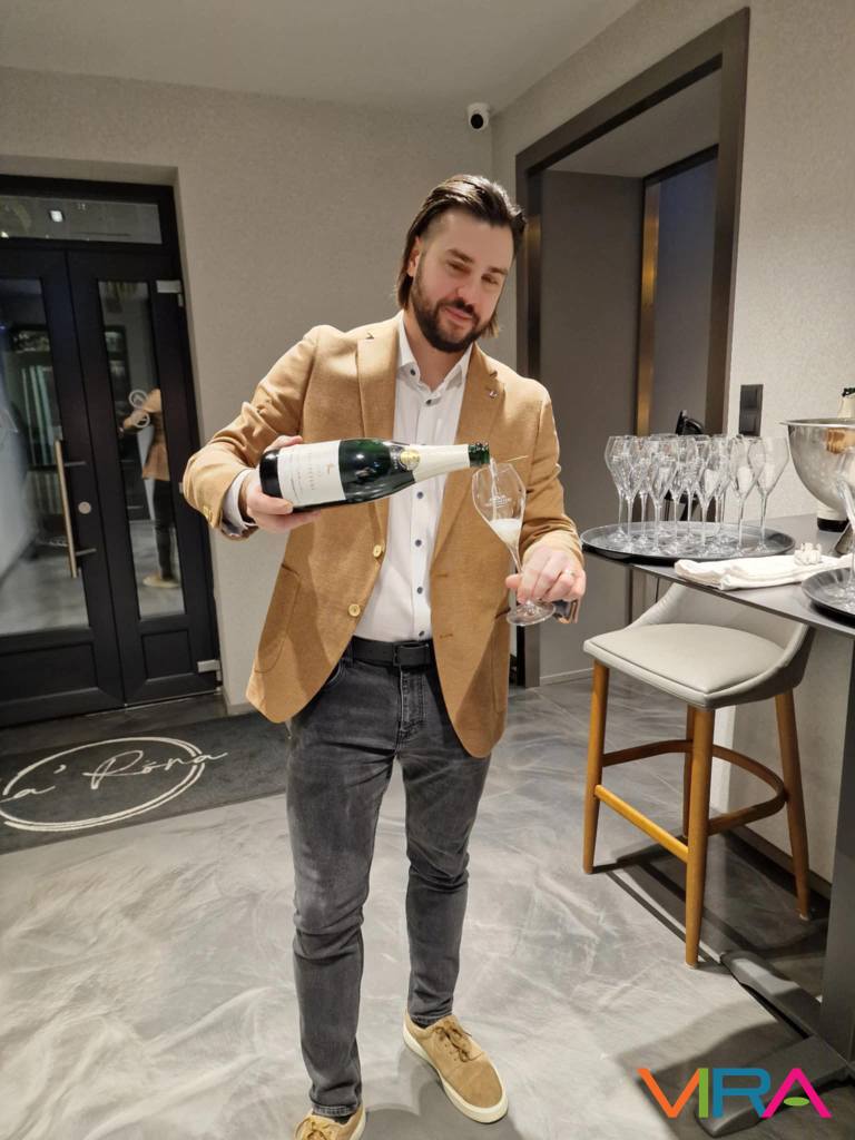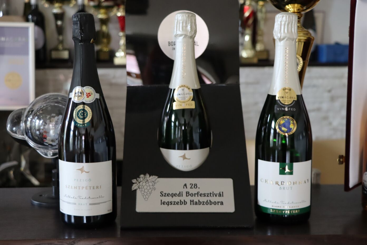 – Egyre nagyobb divat a pezsgők, buborékos italok világa. A tradicionális pezsgőknél nagyon fontos, hogy minimum kétéves érlelést kapjanak, hogy kialakuljon az az elegáns ízvilág, ami ezekre jellemző. Nekem ez egy régi nagy szerelem, a buborékok, a pezsgő. Ebből írtam 2010-ben a szakdolgozatomat. Akkor már készült pár száz palack pezsgő sárfehérből, ez volt a diplomamunkám. Utána 10 év tapasztalatgyűjtés, utazgatás kezdődött a világban. Ennyi idő alatt sikerült összerakni mind elméletben, mind gyakorlatban is, hogy a technológia összeálljon és a 2020-as évjáratú tiszta chardonnay pezsgő volt az, ami elsőként forgalomba került ebben a szegmensben. Ezzel gyorsan magasra tettük a lécet, mert a 2020-as országos borverseny legjobb pezsgője lett. 2021-ben a chardonnay mellett már másik két fajta is helyet kapott a szortimentünkben. Egy cuvée pezsgő készült egyharmad rész chardonnay, rajnai rizling, és generosa fajtából. Ez akkoriban a VinAgora Nemzetközi Borversenyen megkapta a legjobb pezsgő címet. Úgyhogy 2022-ben is készítettünk Chardonnay pezsgőt, aminek az eredményeiről már beszéltem.