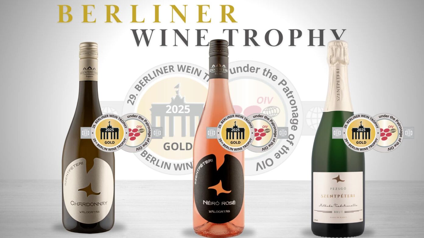 A Berliner Wine Trophy-n aranyérmet kapott a Tradicionális Chardonnay pezsgő 2022, a Chardonnay Válogatás 2024, és a Néró rosé Válogatás 2024