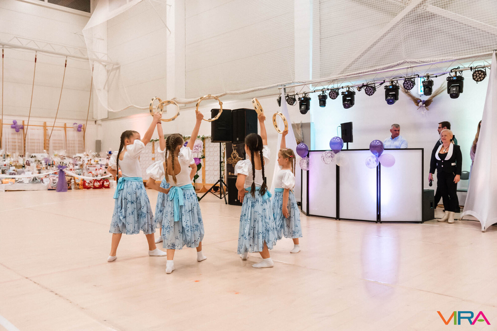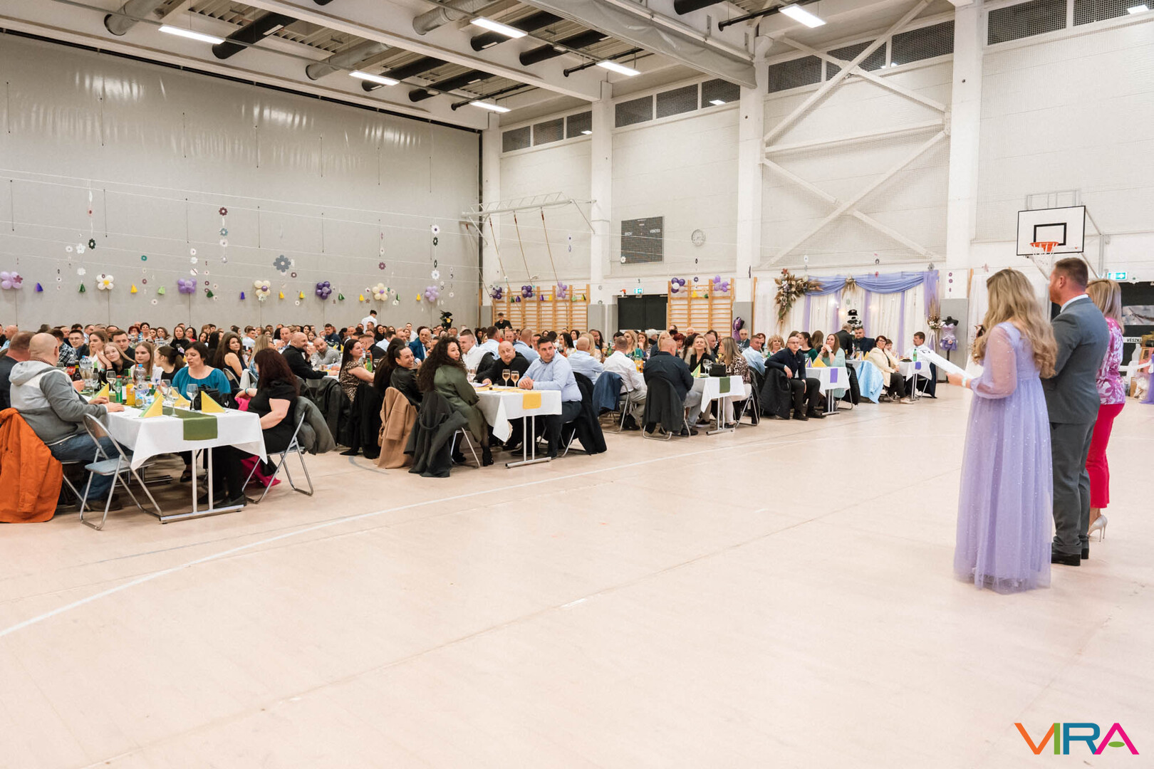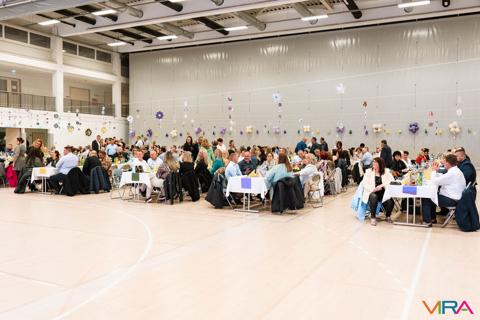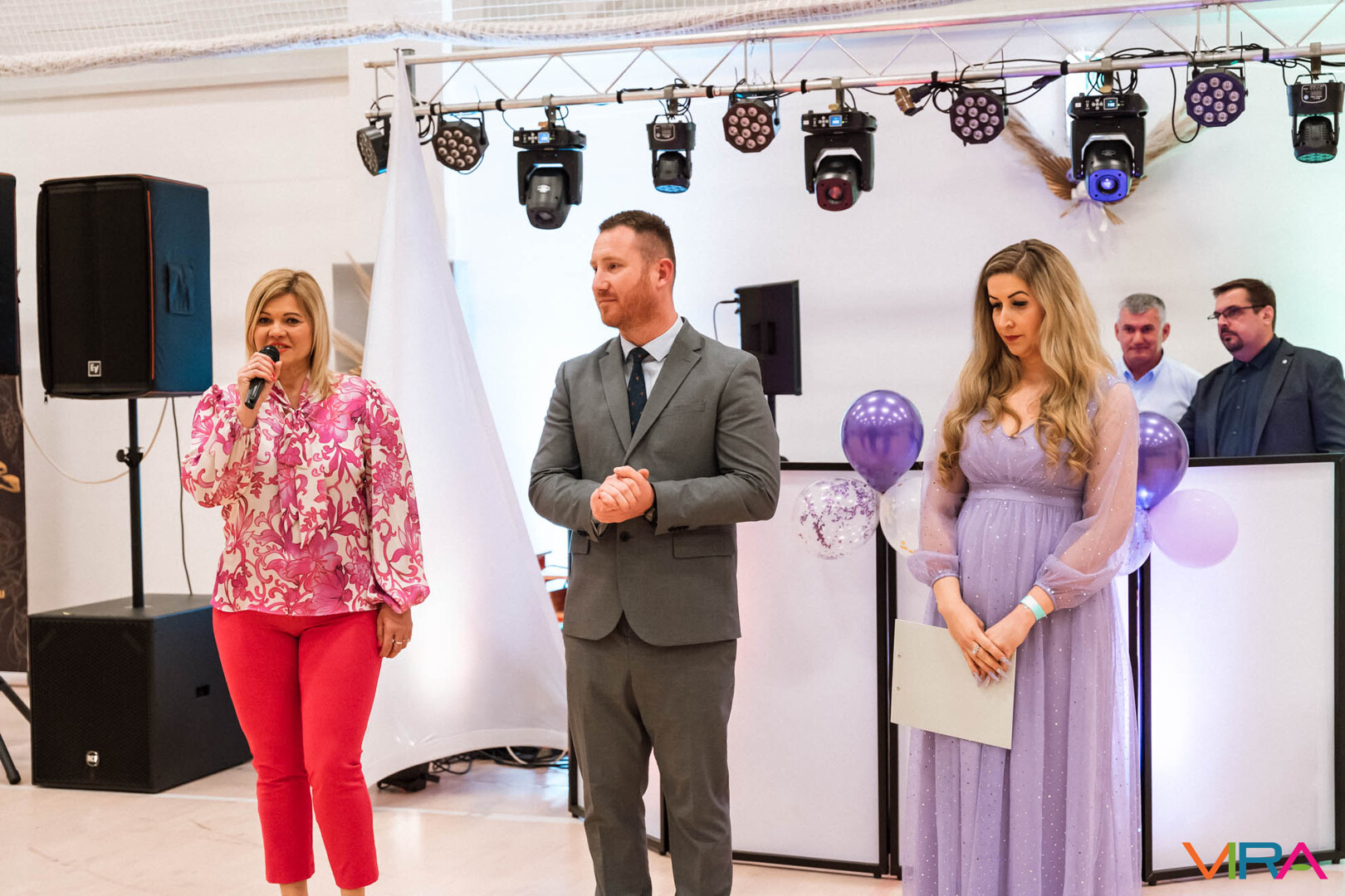 A báli hangulatot már az érkezéskor megalapozta a welcome drink, valamint az óvónők és szülők közös munkájával készült, rendkívül ízléses és látványos tavaszi díszlet, amely szinte varázslatos hangulatot teremtett a sportcsarnokban.