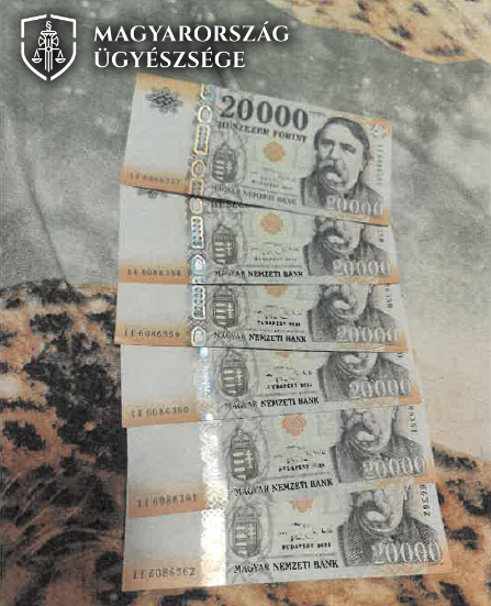 A vádlottaknál tartott kutatás során megtalált és zár alá vett készpénz