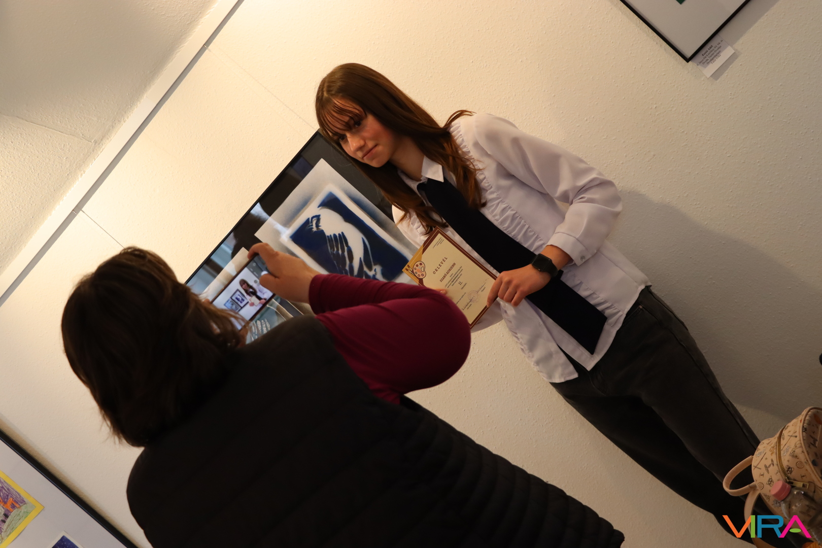 A képzőművészeti kategória pályamunkáit Cserményi Boglárka művésztanár és Babucsikné Zeikfalvy Anna grafikusművész, művésztanár zsűrizték, aki pár szóval értékelte a kiállított munkákat és a díjak átadásában is segédkezett.