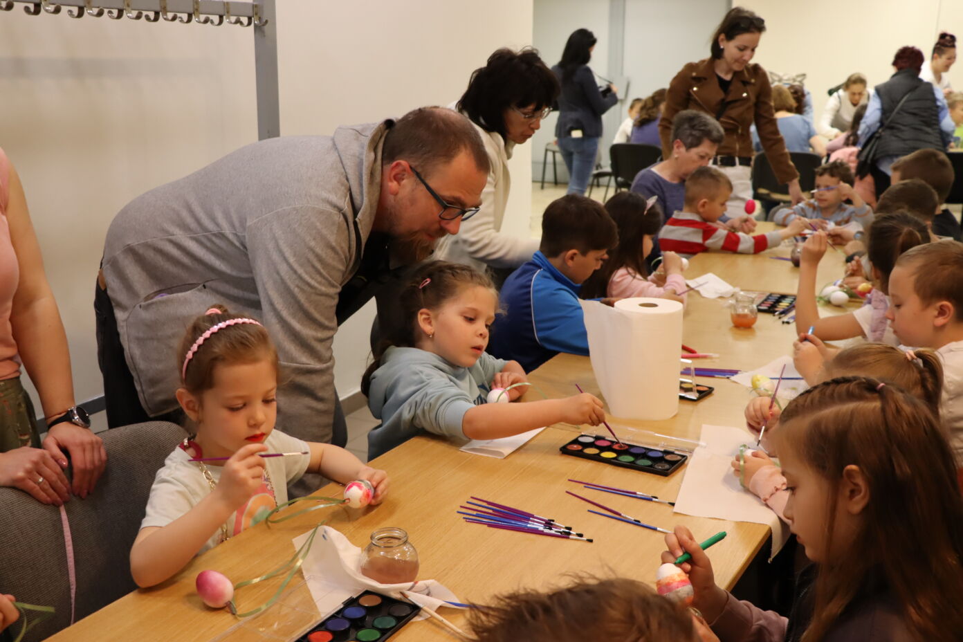 A 9:30 órakor kezdődő kézműves foglalkozáson tojásfestésre és varázslatos kaparós díszek készítésére is volt lehetőség a TOP_PLUSZ-3.1.3-23-BK1-2024-00031 azonosító számú „Együtt könnyebb” című projekt keretében. Ezt követően az elkészült színes tojásokkal díszítették fel a művelődési közpint melletti facsemetét, ami igazi húsvéti hangulatot varázsolt a főtérre.