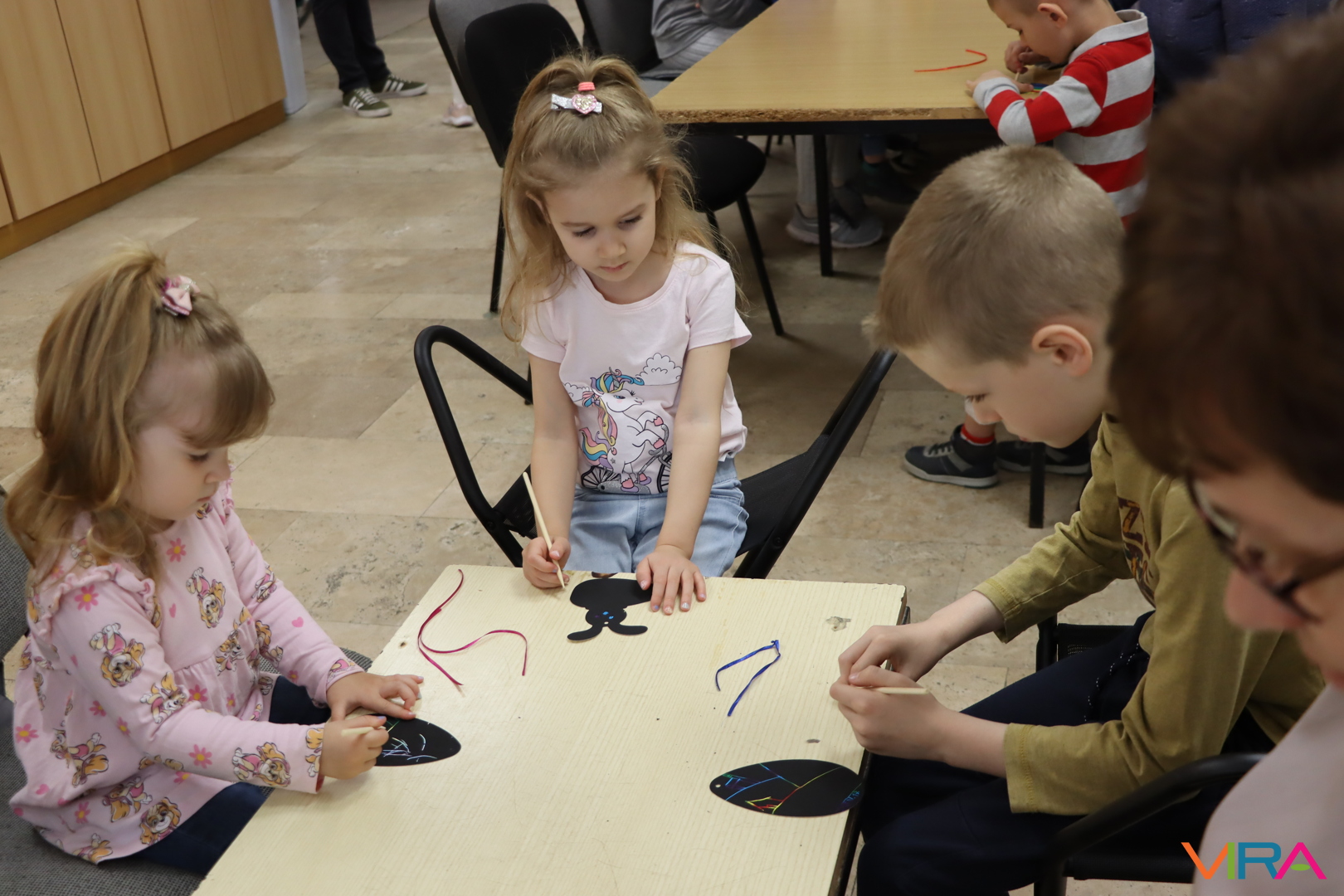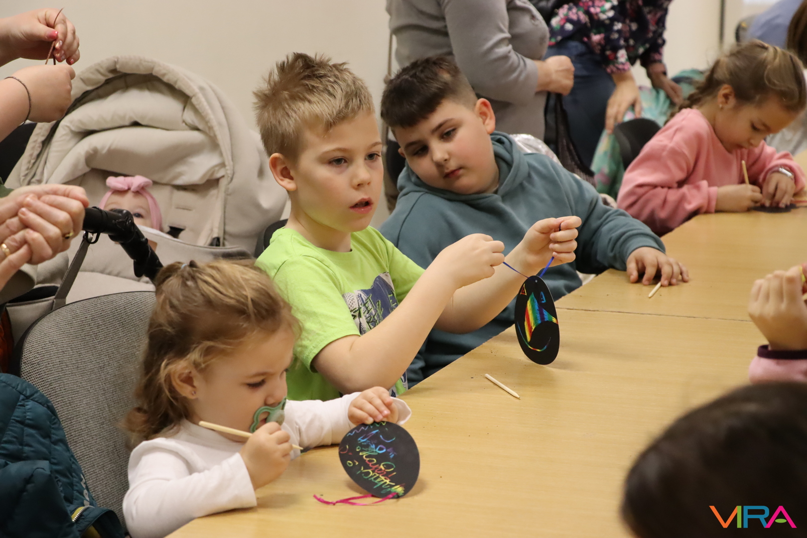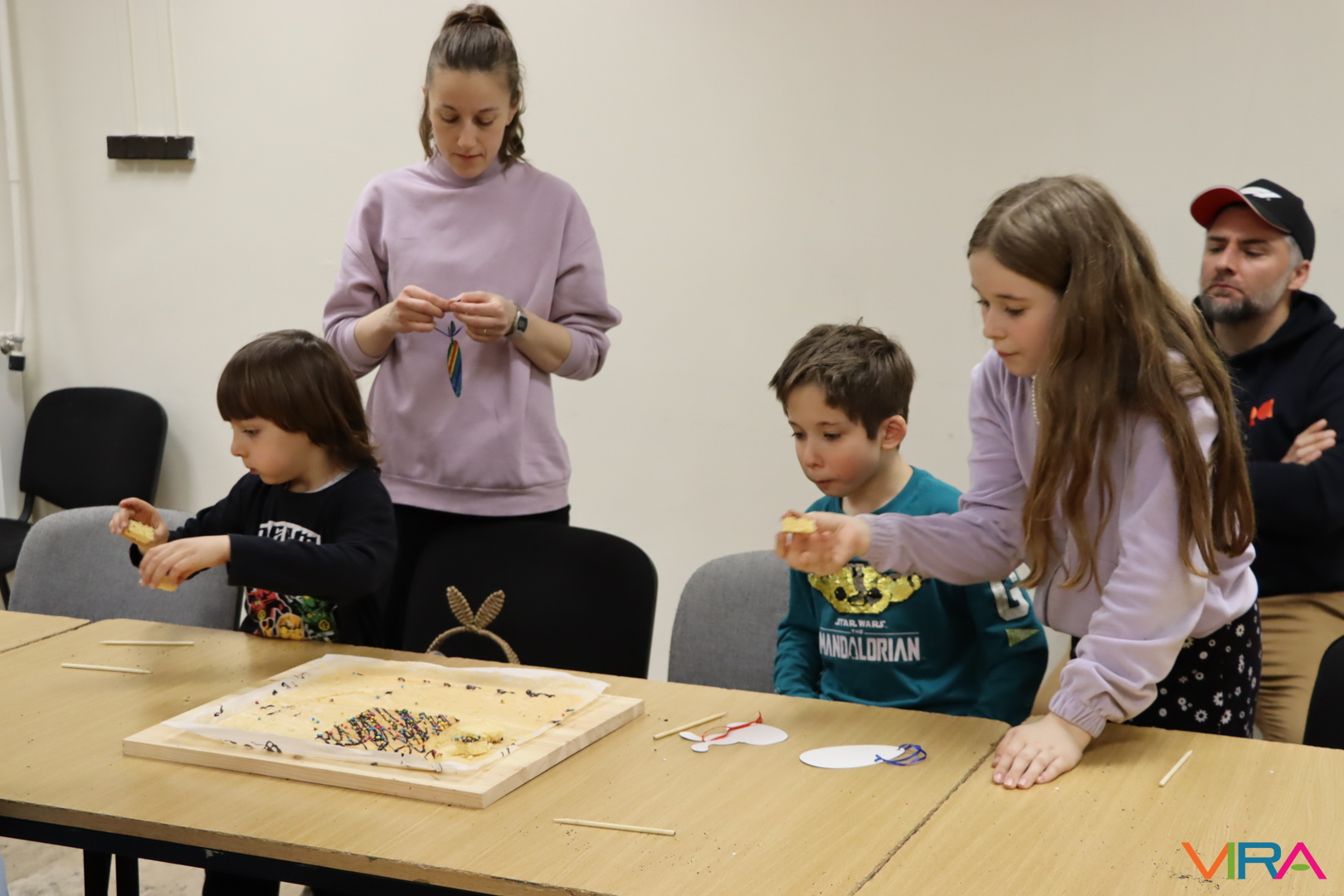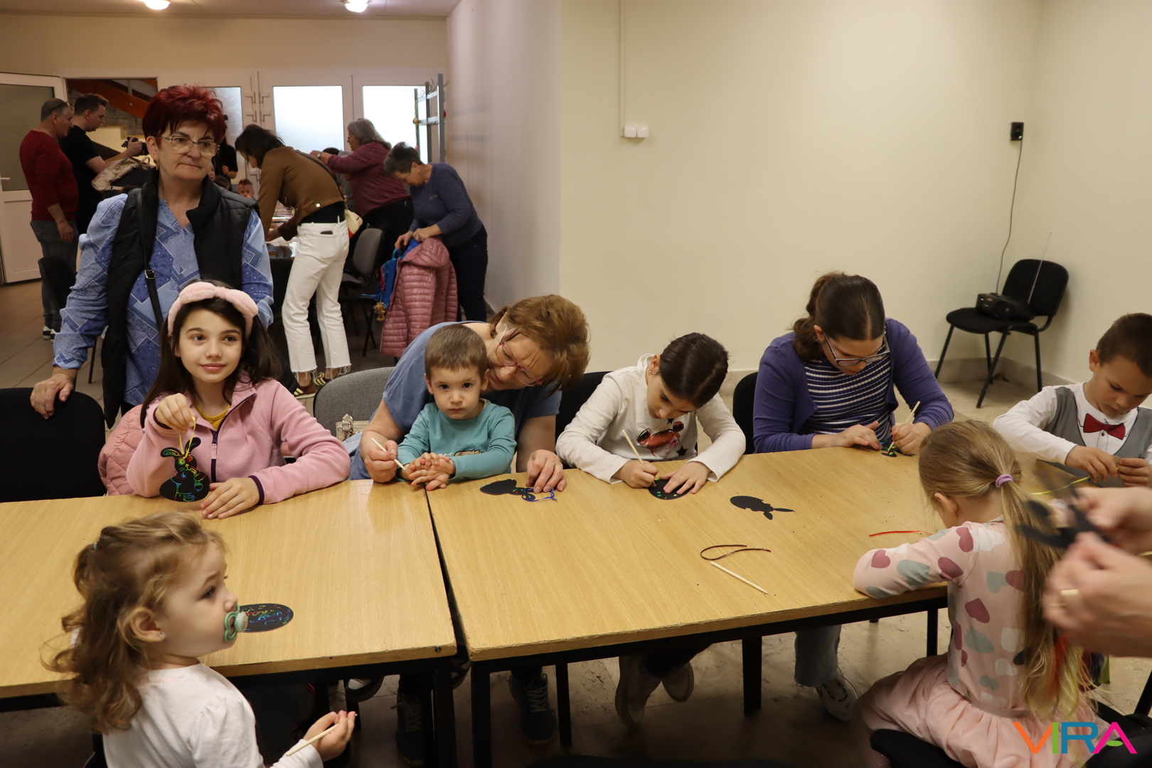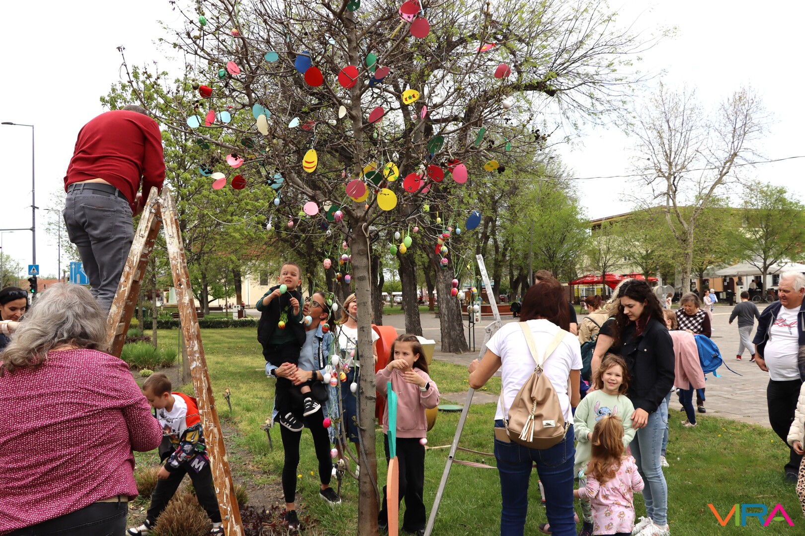 A 9:30 órakor kezdődő kézműves foglalkozáson tojásfestésre és varázslatos kaparós díszek készítésére is volt lehetőség a TOP_PLUSZ-3.1.3-23-BK1-2024-00031 azonosító számú „Együtt könnyebb” című projekt keretében. Ezt követően az elkészült színes tojásokkal díszítették fel a művelődési közpint melletti facsemetét, ami igazi húsvéti hangulatot varázsolt a főtérre.