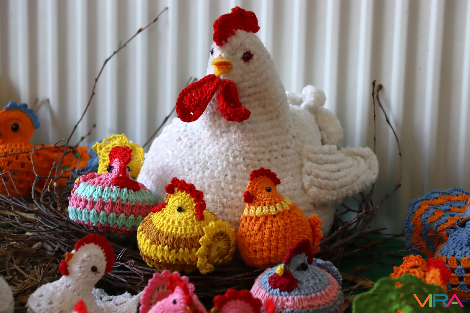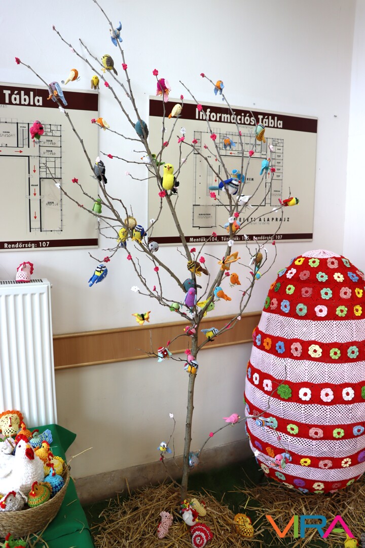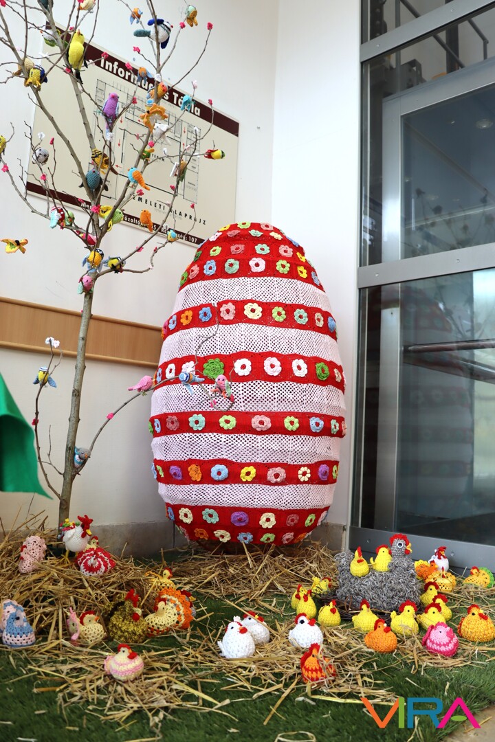 A Petőfi Sándor Művelődési Központ bejáratánál egyedi, kézzel készült húsvéti díszeket tekinthettek meg a jelenlévők, amiket a Kiskőrös Rózsája Horgolókör tagjai készítettek.