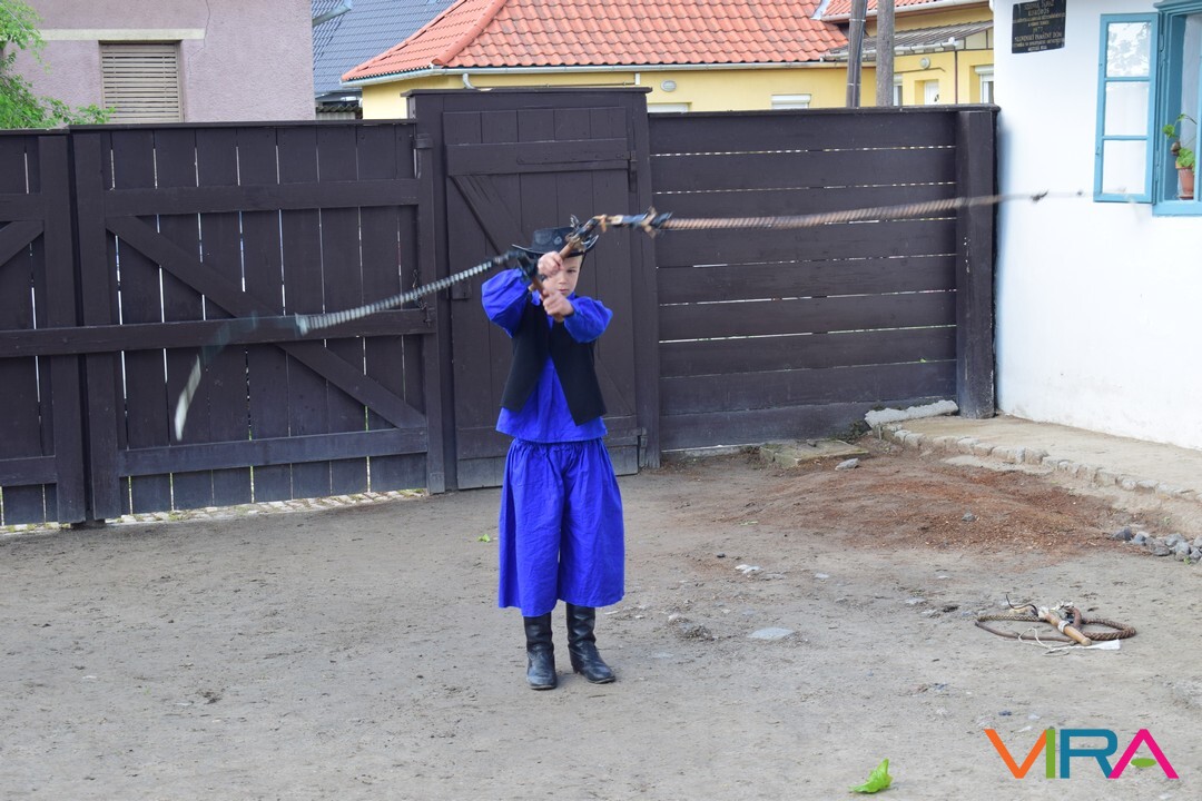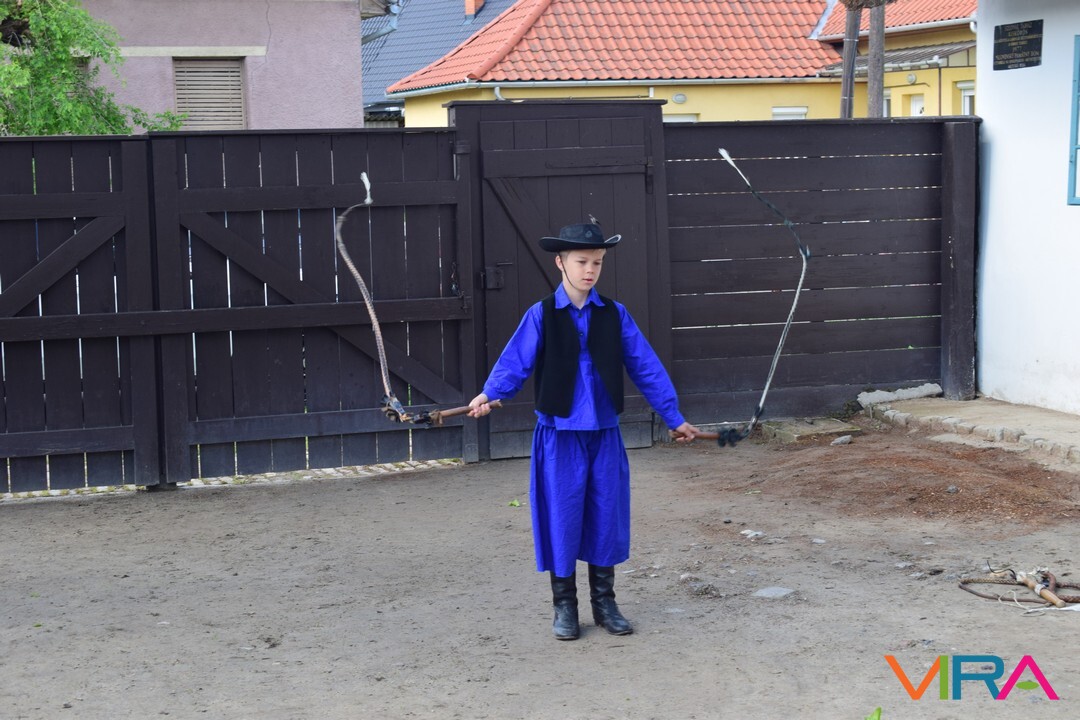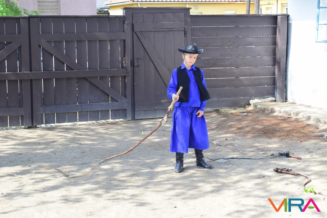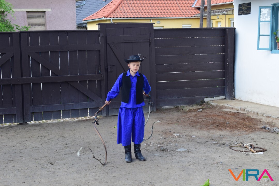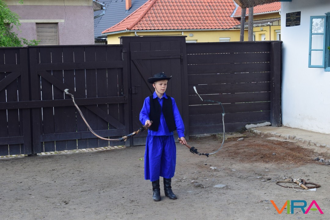 Őket követte a fiatal Daka Andor kancsika bemutatója. Többfajta és méretű ostorral tartott bemutatót csikós népviseletben a fiatal fiú, aki a karikás ostorcsattogtatás rejtelmeibe is bevezette a nézőket. A bemutató után a bátrabbak meg is próbálkozhattak megszólaltatni az ostorokat.