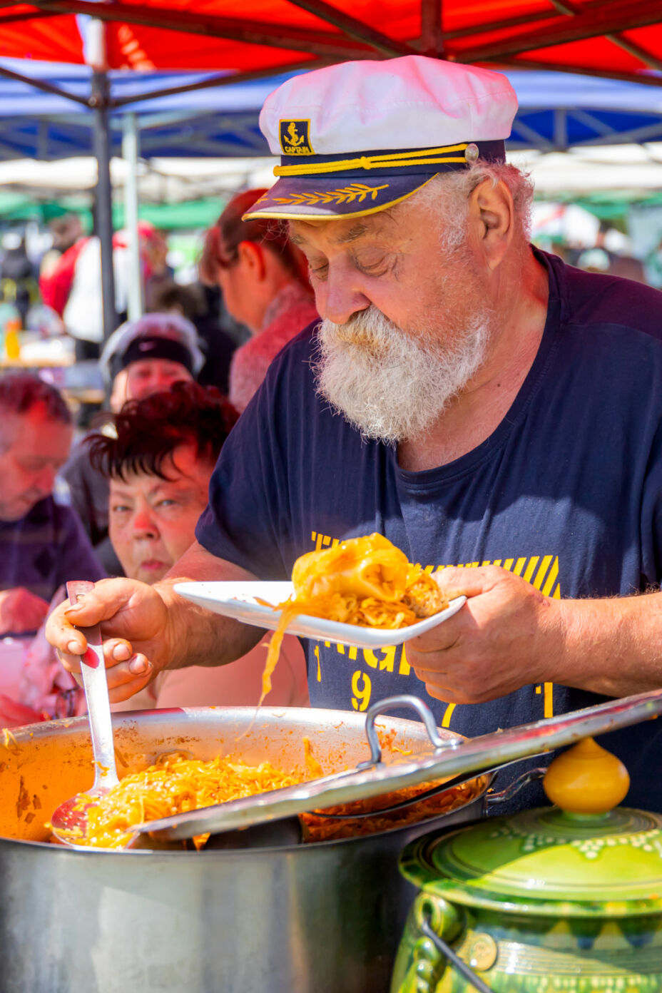 Bár az időjárás reggel esőt ígért, a nap végül kegyeibe fogadta a fesztiválozókat, így a töltött káposzták mellett a jókedv is garantált volt.